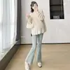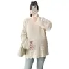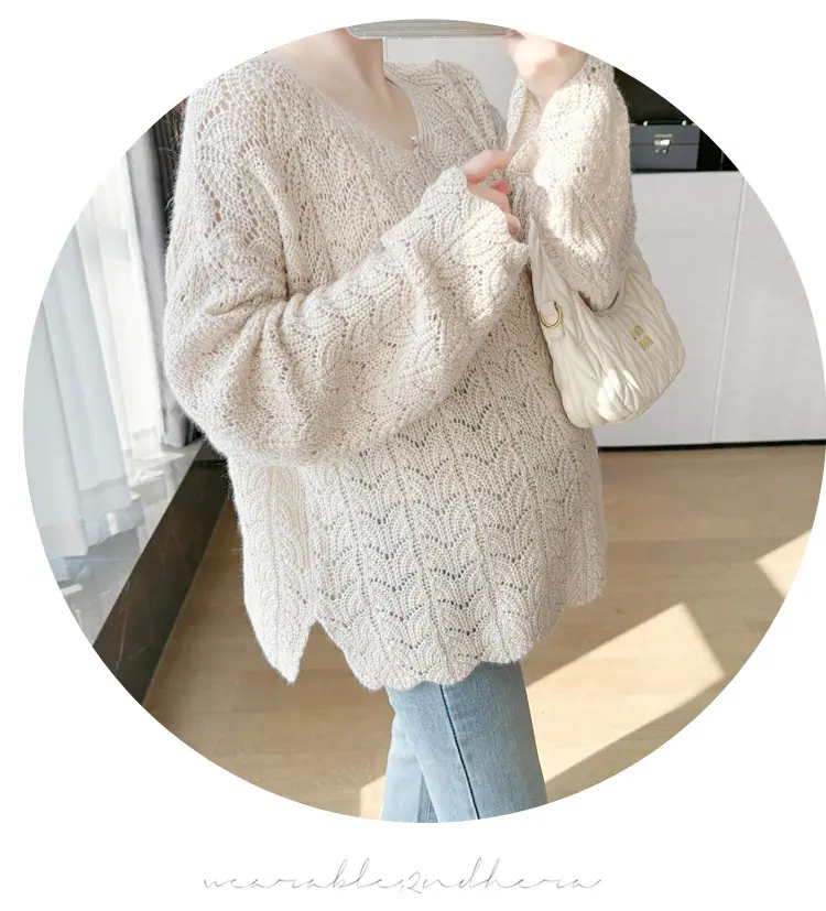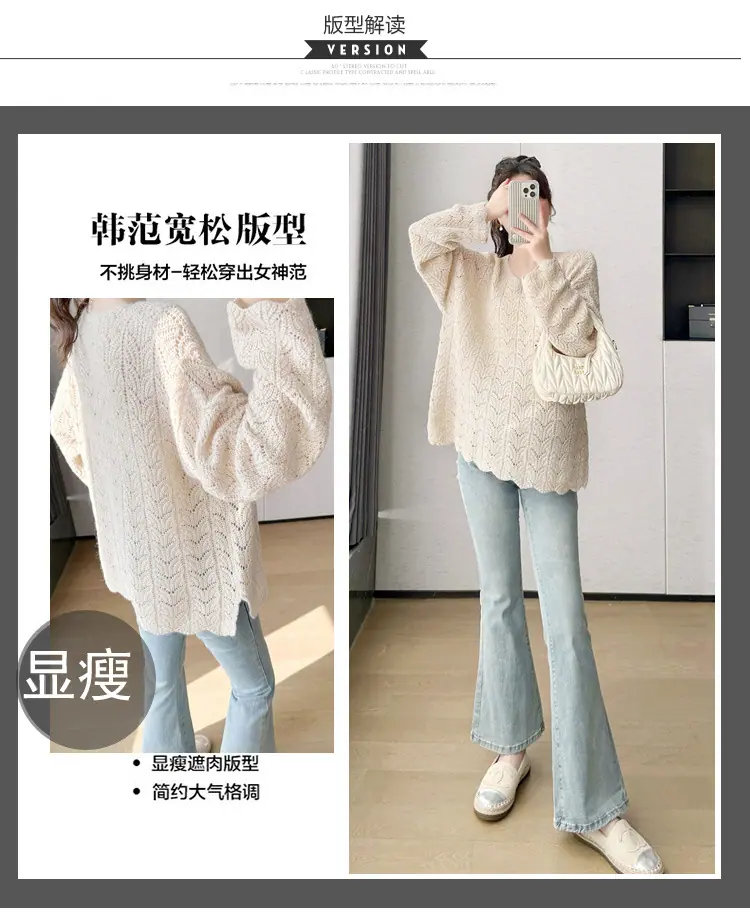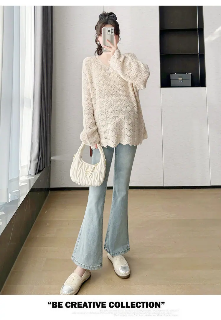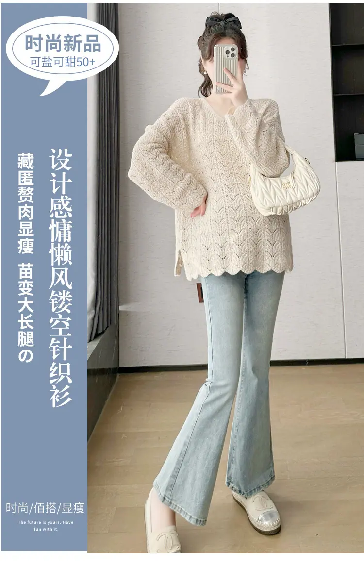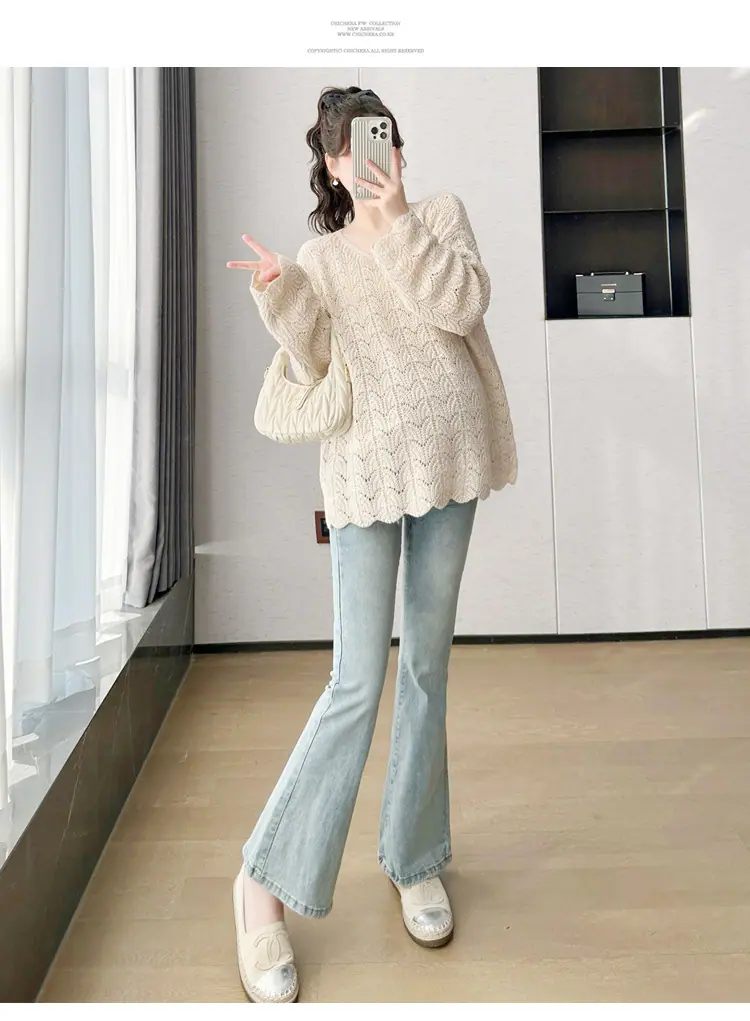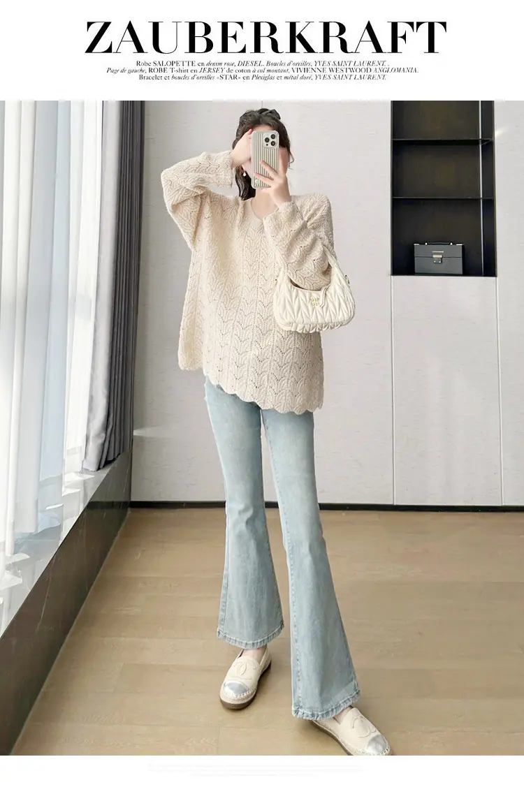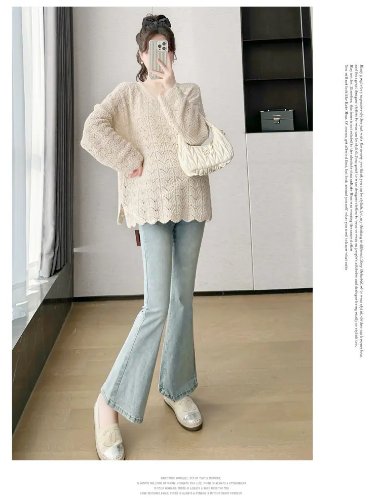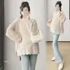 Ropa de Maternidad Tops de Primavera 2025 Nueva Moda y Trendy Mamá Suelto Largo Medio Cuello en V Cut Out Tejido