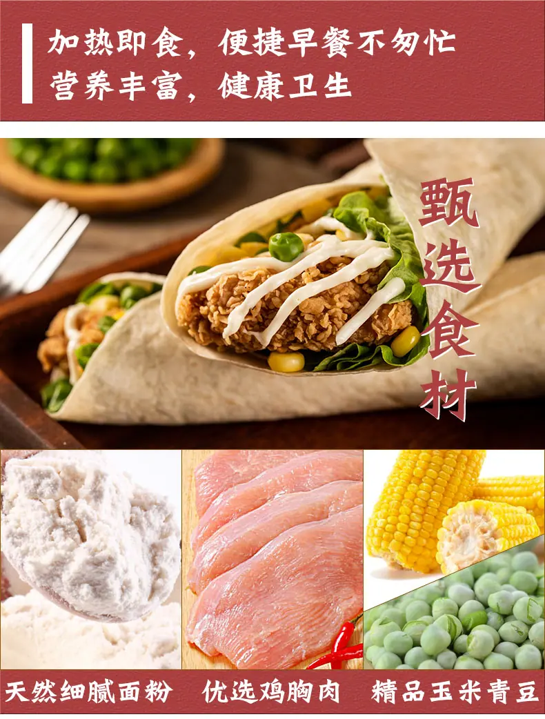 Rollo de Pollo Mexicano Rollo de Pollo Viejo Pekín Desayuno Instantáneo Calentado en Microondas Listo para Comer Alimento para el Desayuno