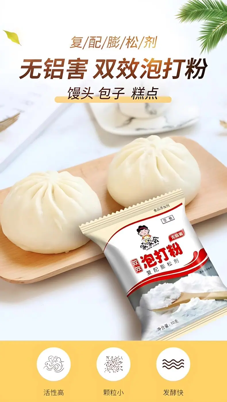Polvo para hornear de doble acción sin aluminio 10g Paquete pequeño para el hogar Panes al vapor Palitos de masa frita Pastel Agente leudante Ingrediente para hornear comercial