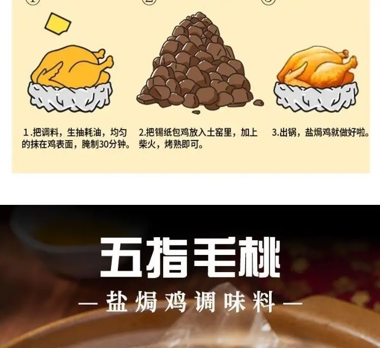Polvo para Pollo Horneado a la Sal con Melocotón de Cinco Dedos Alitas y Patas Horno de Barro Condimento para Mariscos Auténtico Hakka Guangdong Catering Comerciante Exclusivo de Alimentos Frescos