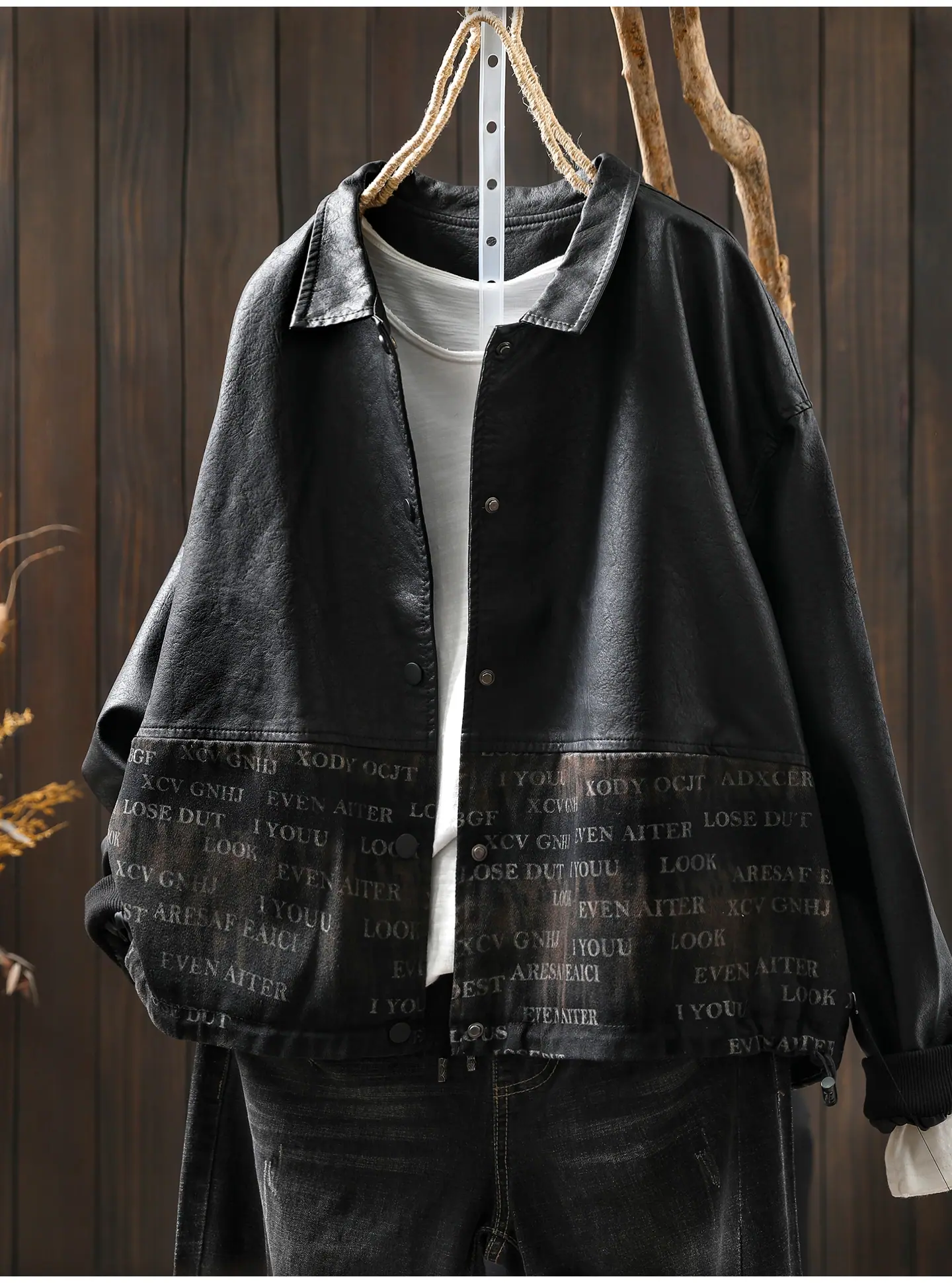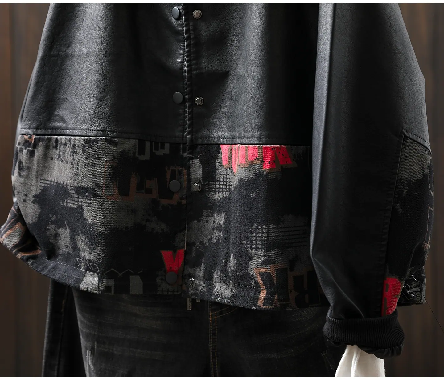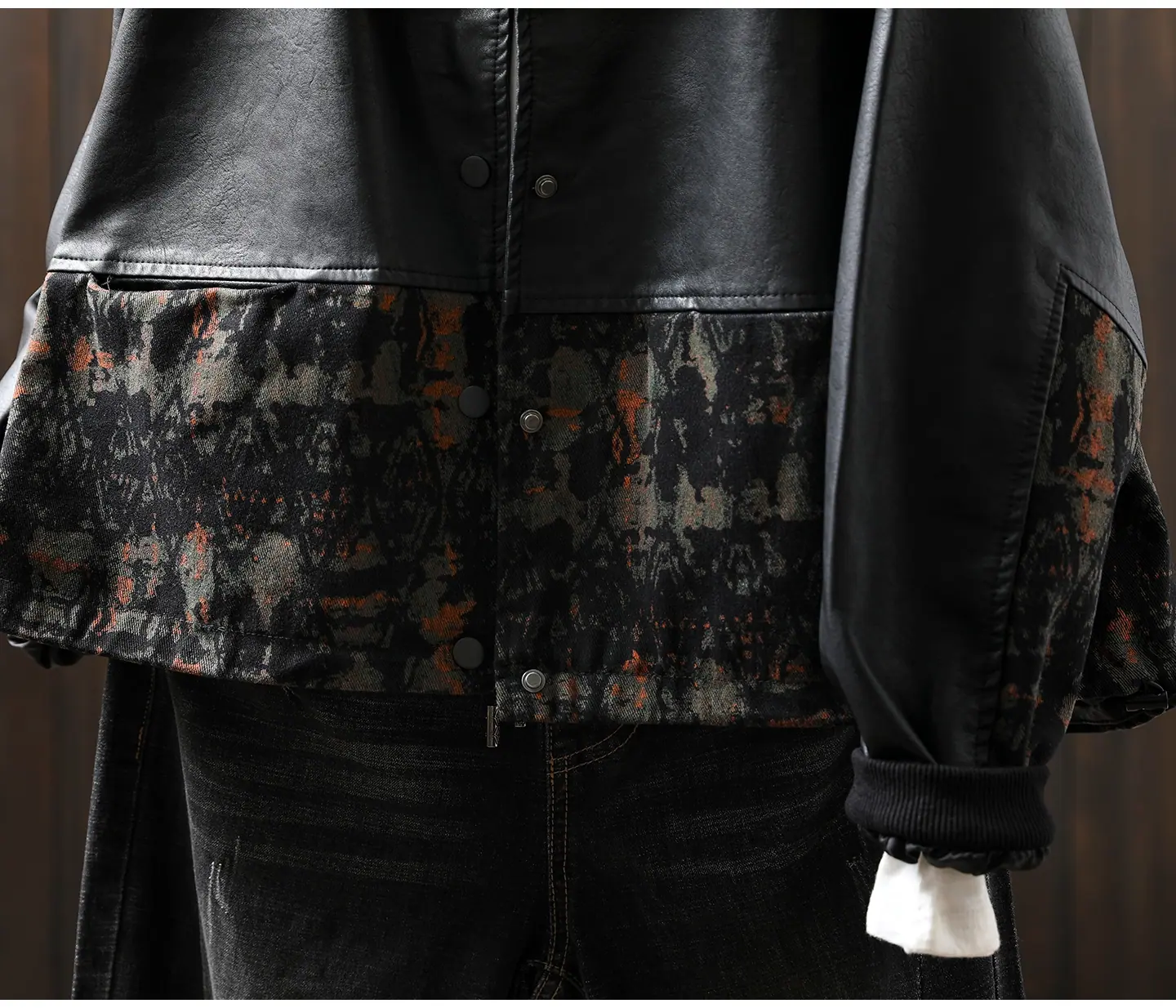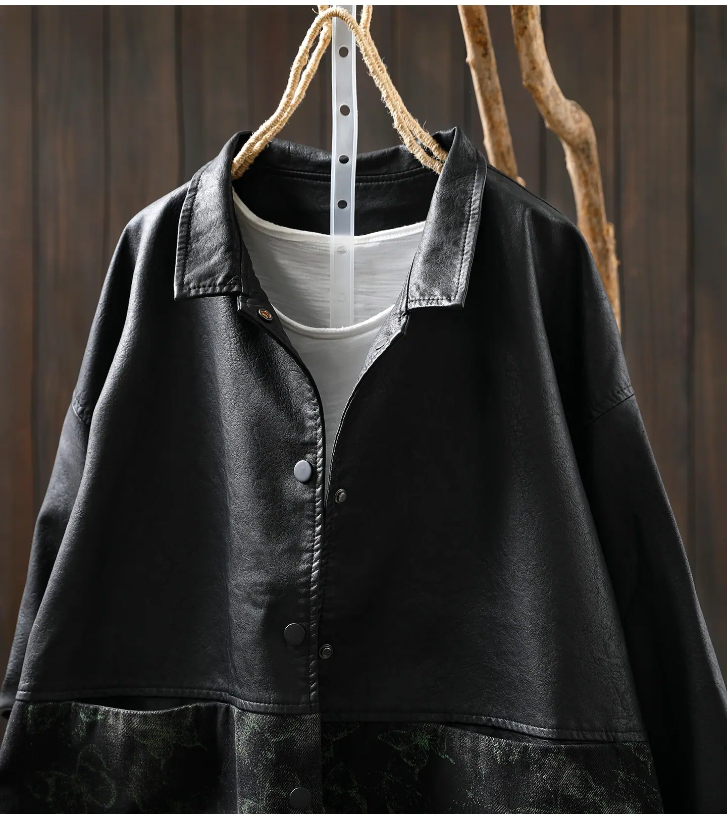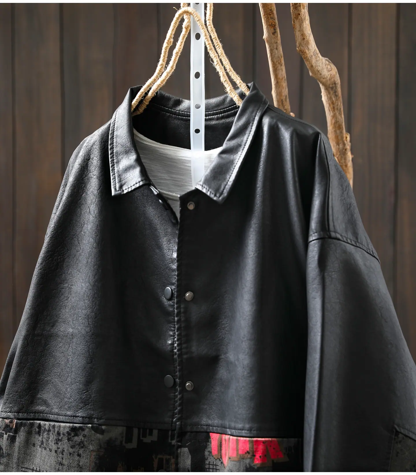 Chaqueta de Cuero Corta para Mujer 2025 Otoño Nueva Estampado Patchwork Cuello Vuelto PU Cuero Suelta Moda Estilo Extranjero Chaqueta de Cuero