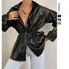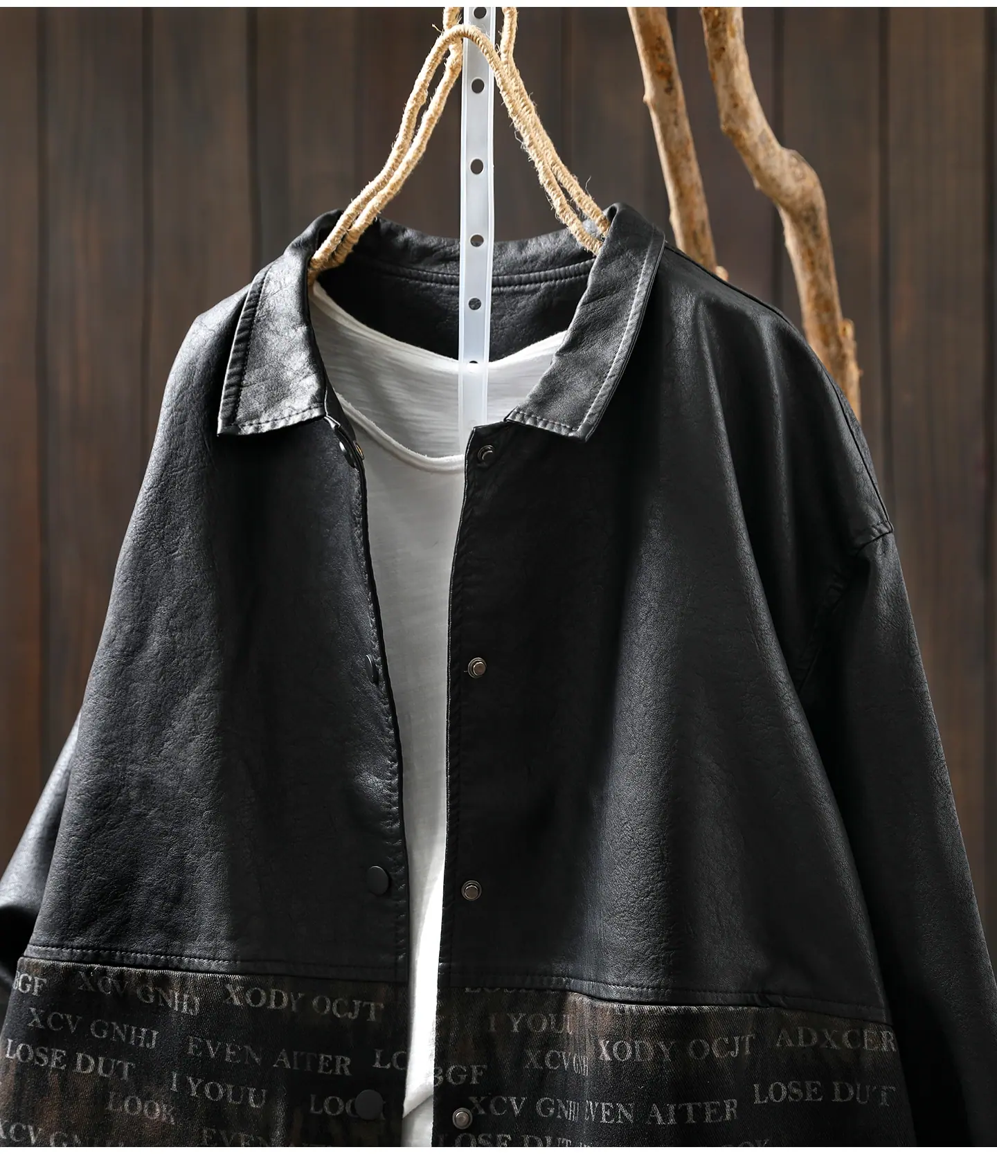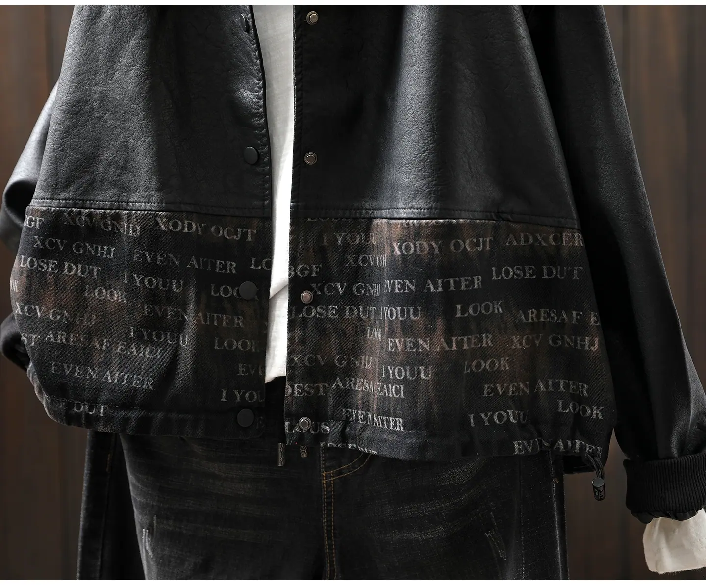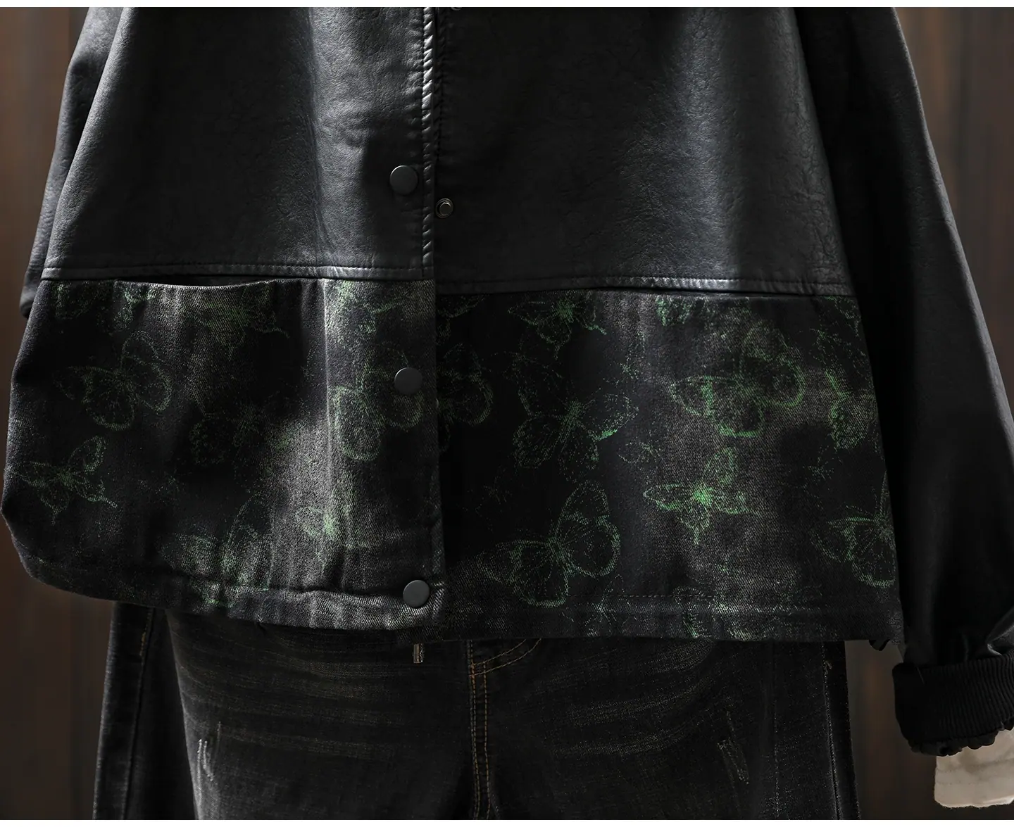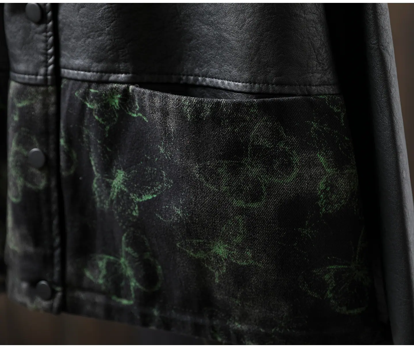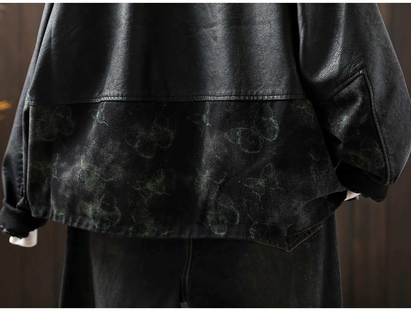 Chaqueta de Cuero Corta para Mujer 2025 Otoño Nueva Estampado Patchwork Cuello Vuelto PU Cuero Suelta Moda Estilo Extranjero Chaqueta de Cuero