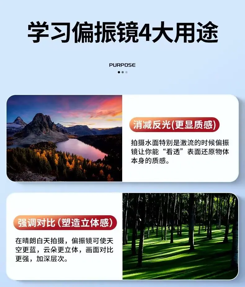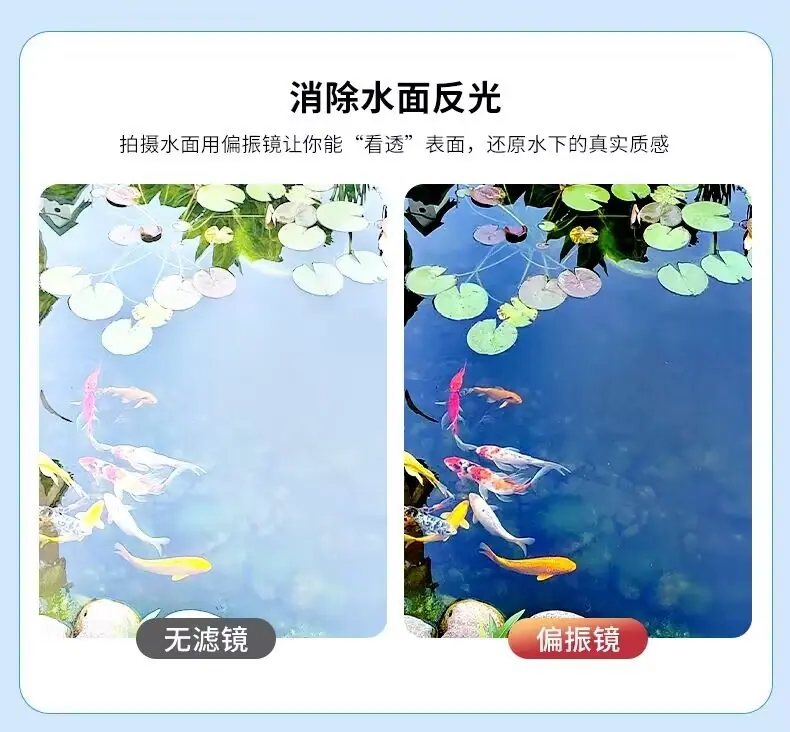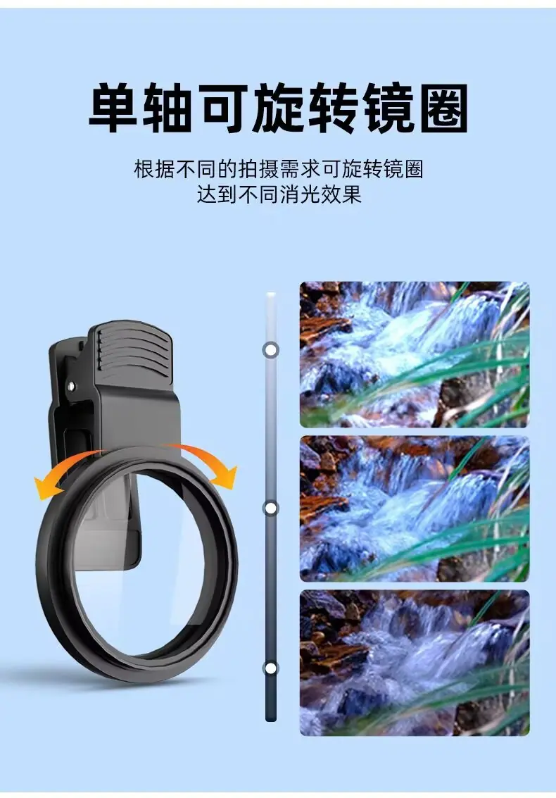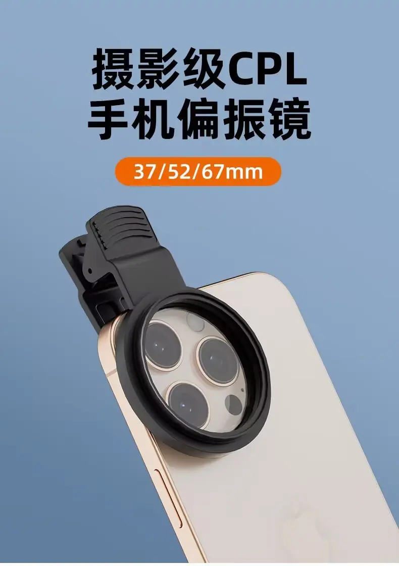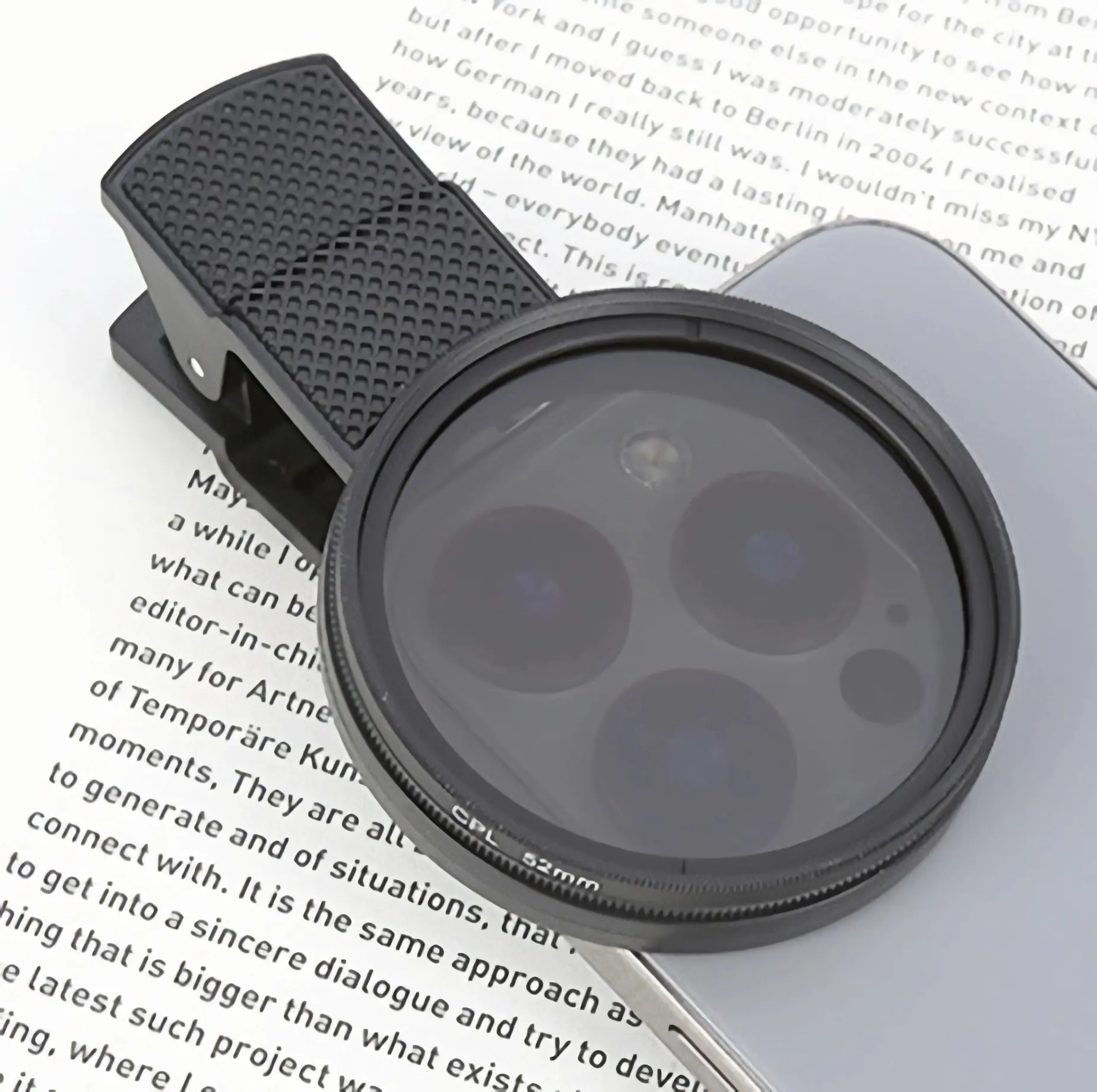 Polarizador para fotografía con teléfono móvil filtro de lente de 52 mm con clip polarizador CPL para eliminar el cabezal de filtro HD reflectante
