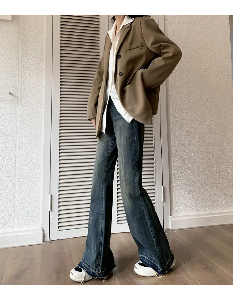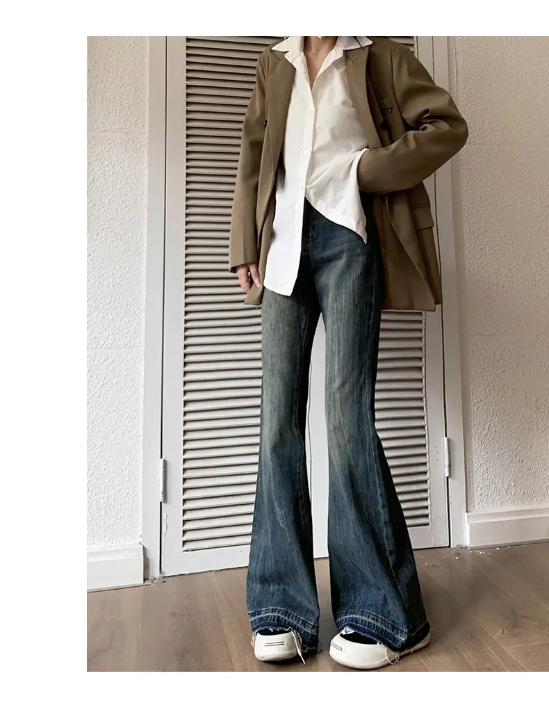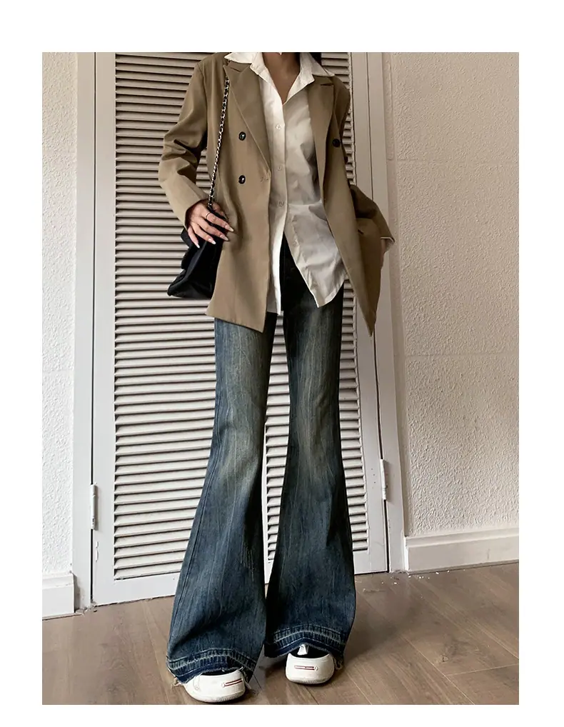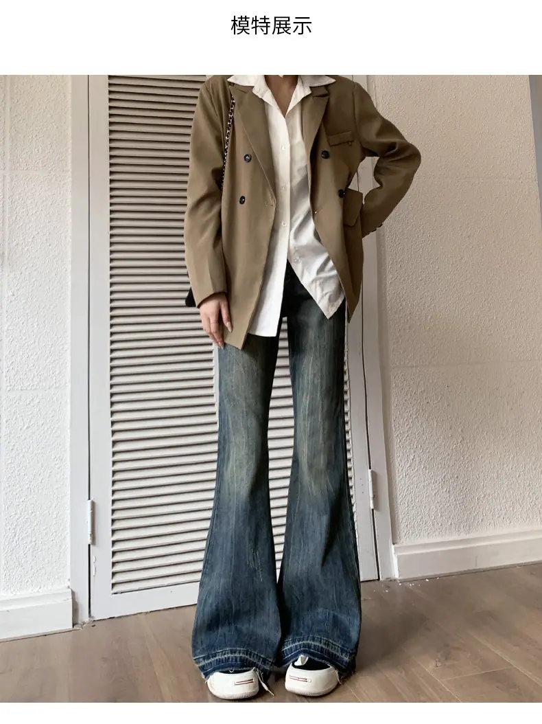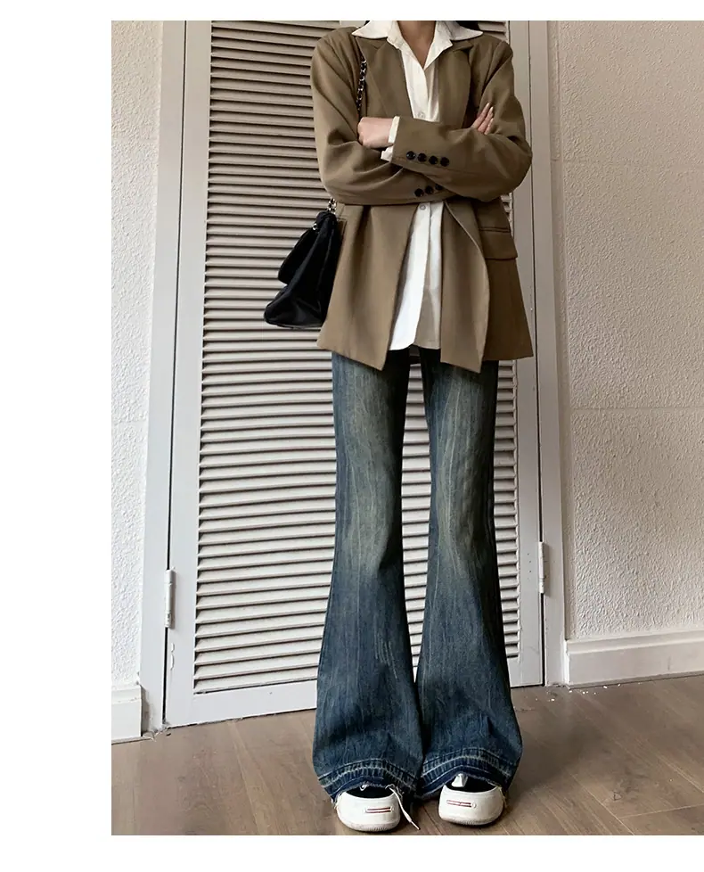 Jeans Micro Acampanados para Mujer 2023 Primavera y Otoño Nuevo Americano Retro Suelto No Ajustado al Muslo Pantalones Acampanados Sueltos