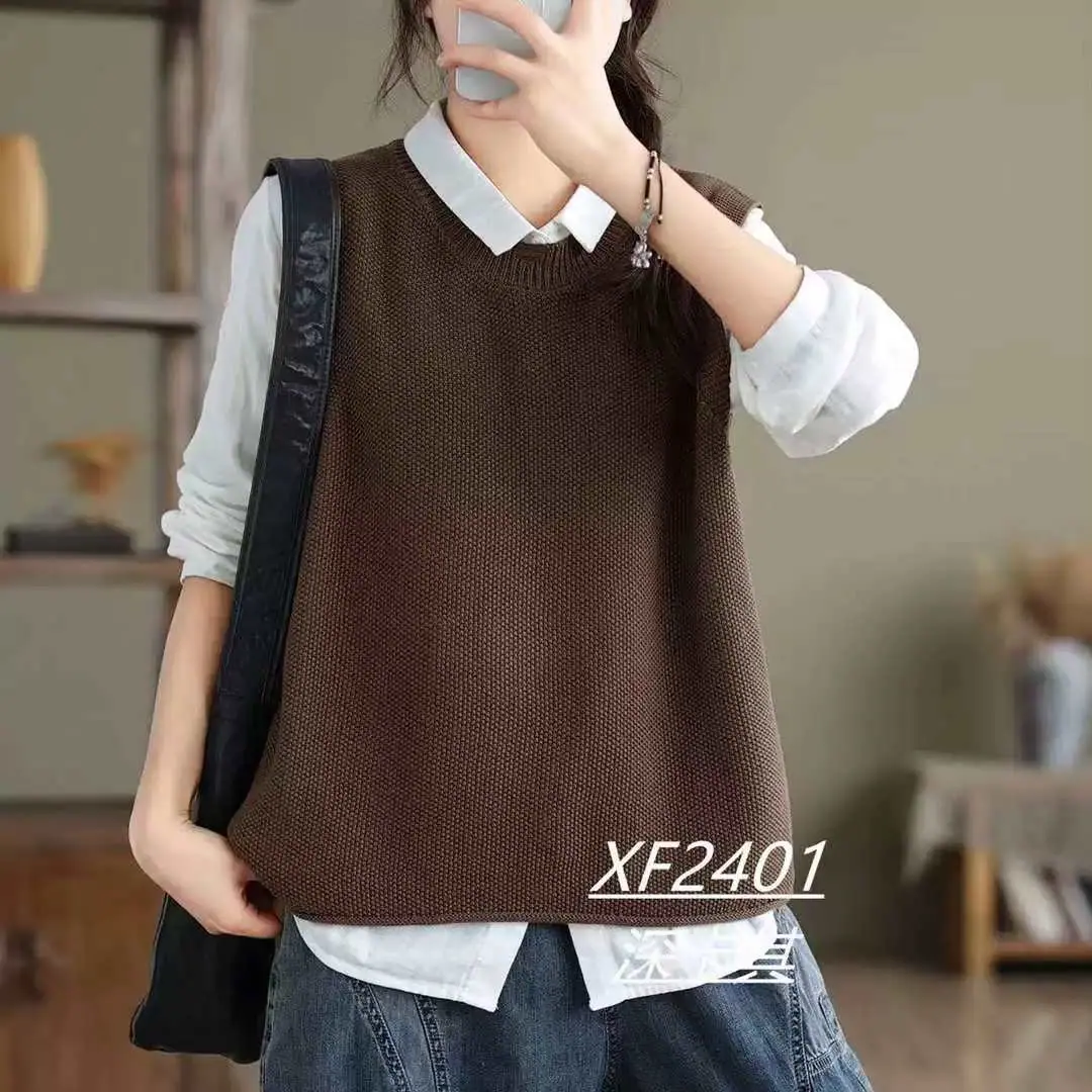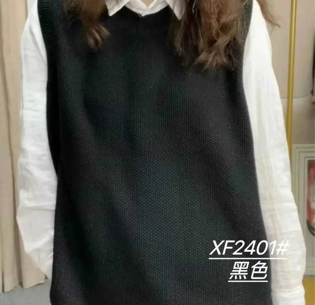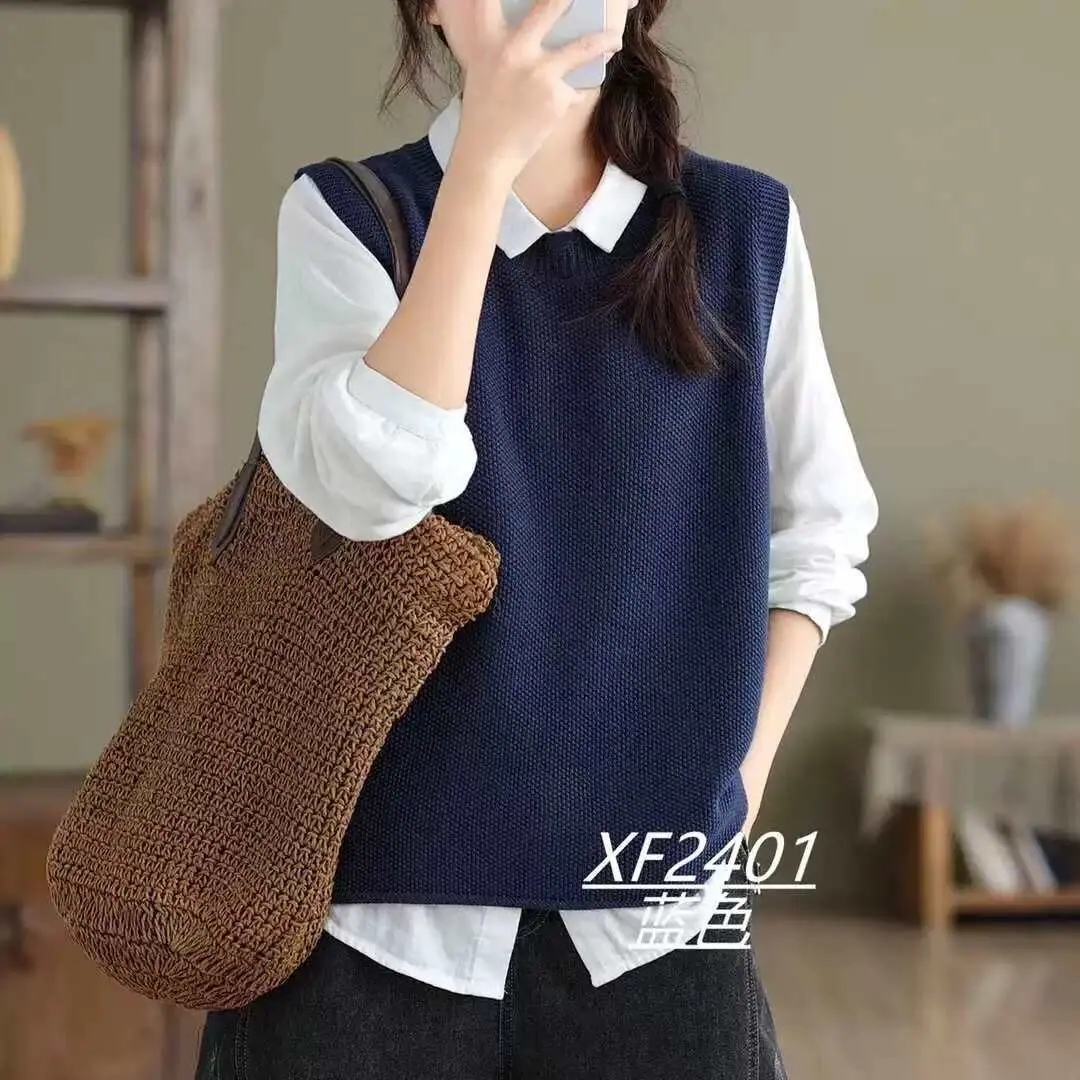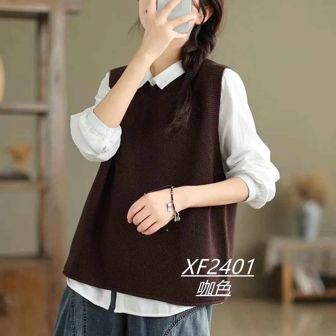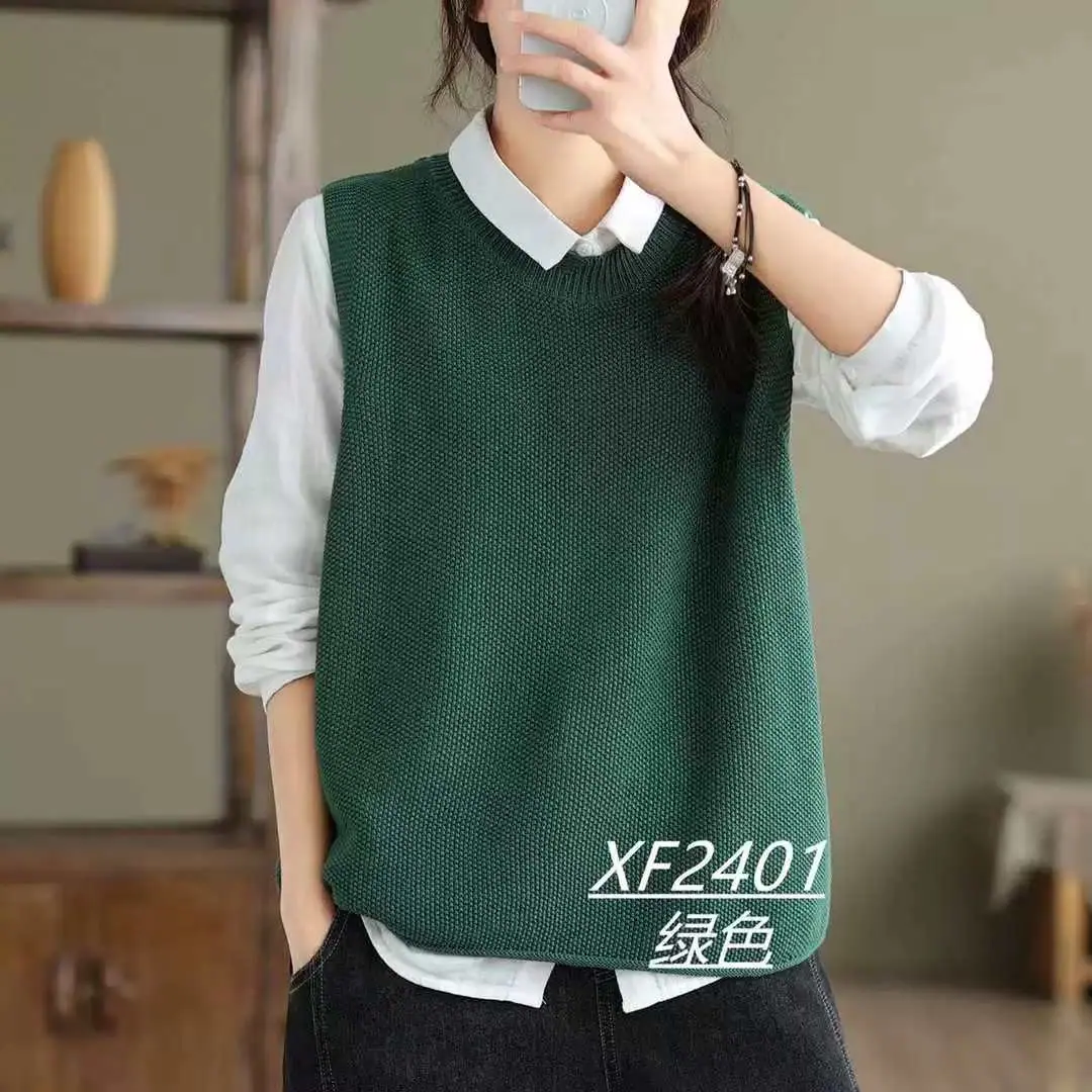 Chaleco Suéter de Punto sin Mangas de Hilo de Algodón Versátil de Color Sólido con Cuello Redondo para Mujer Primavera Otoño 2025 Tank Top Tejido Adelgazante Exterior Tendencia