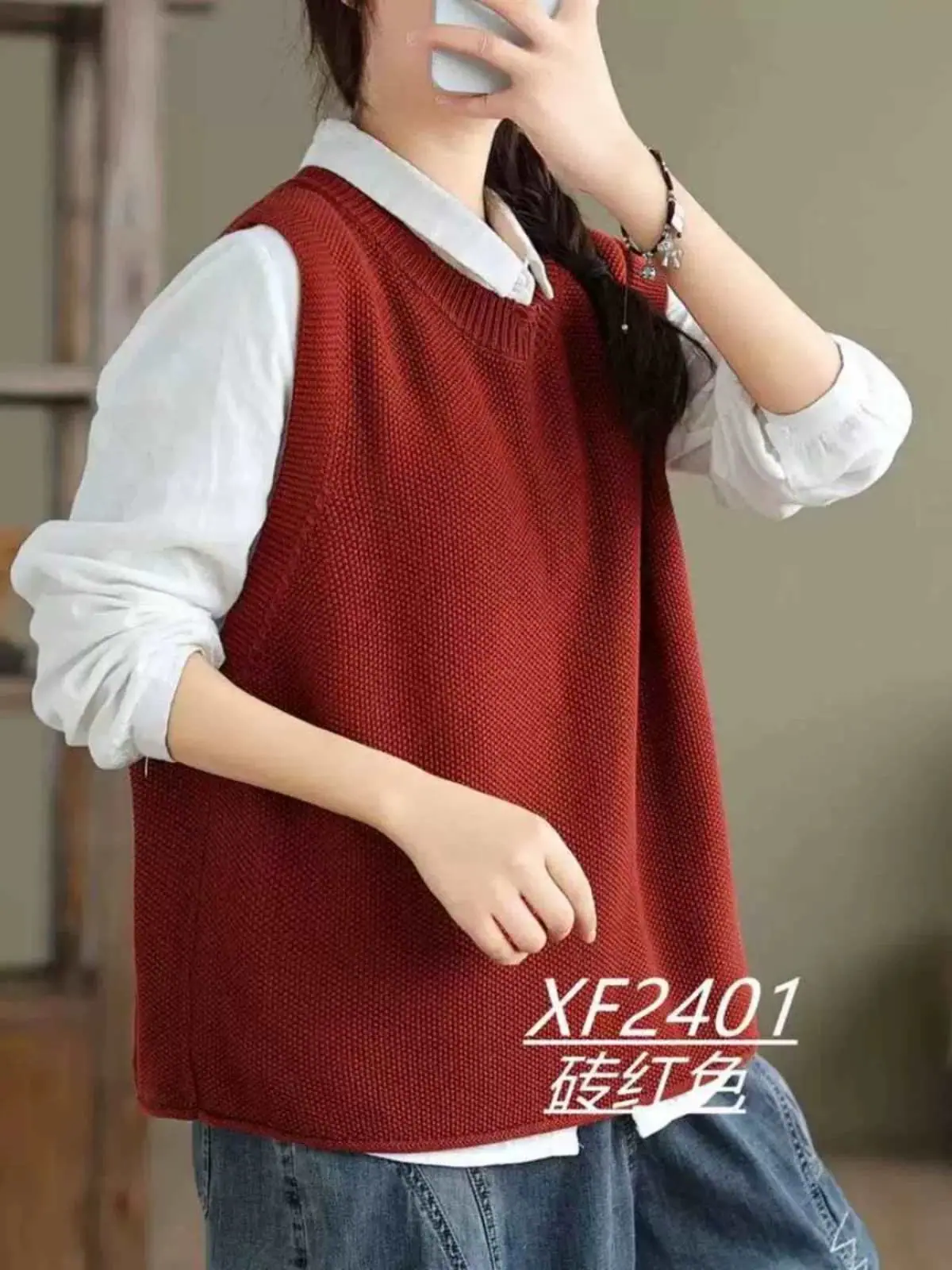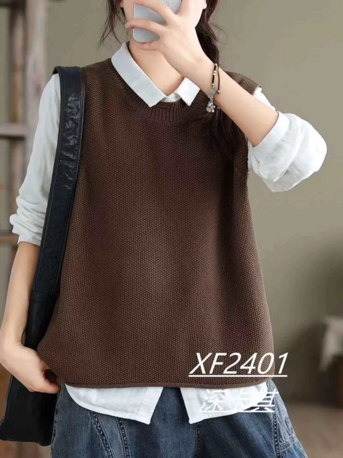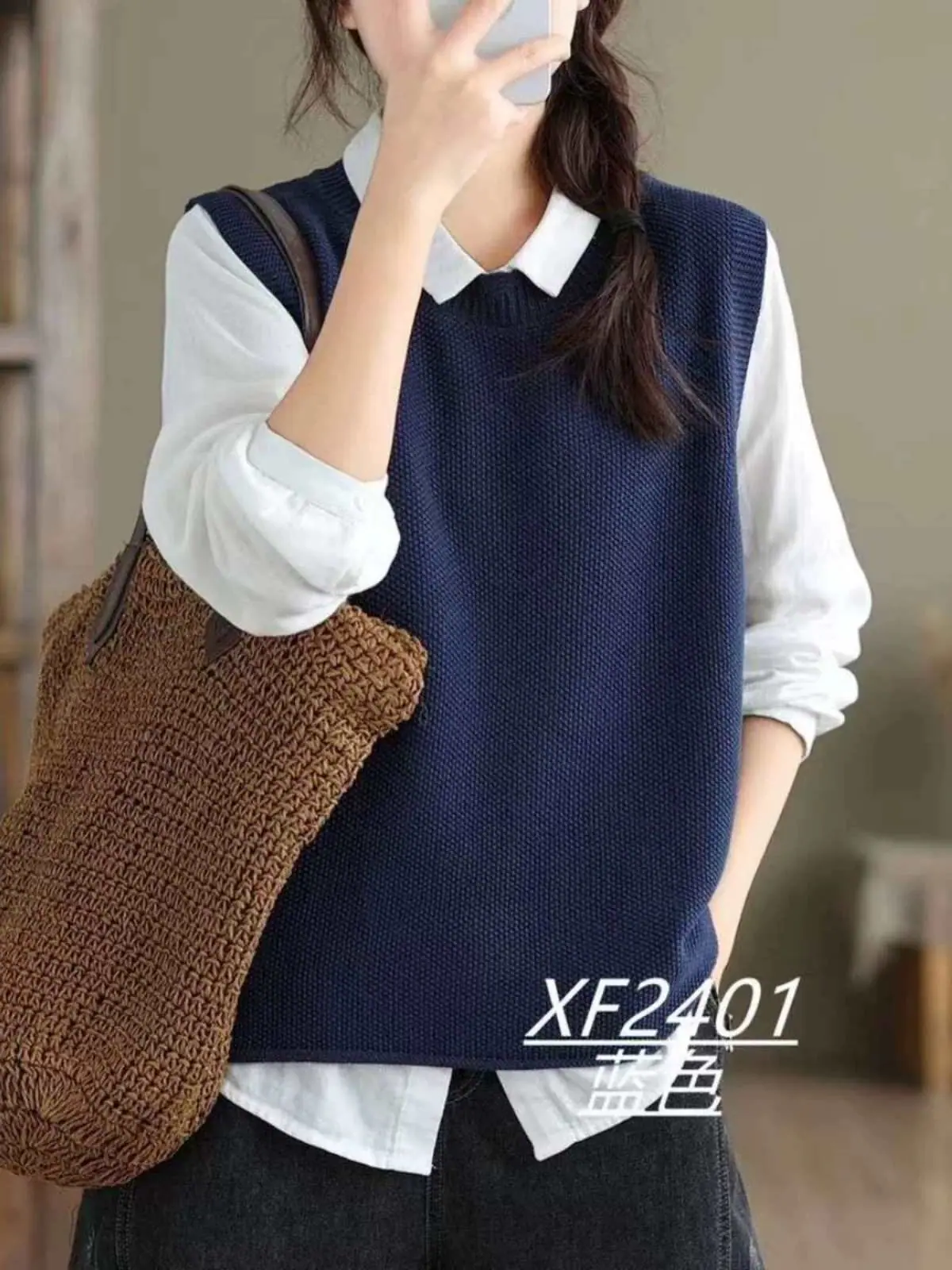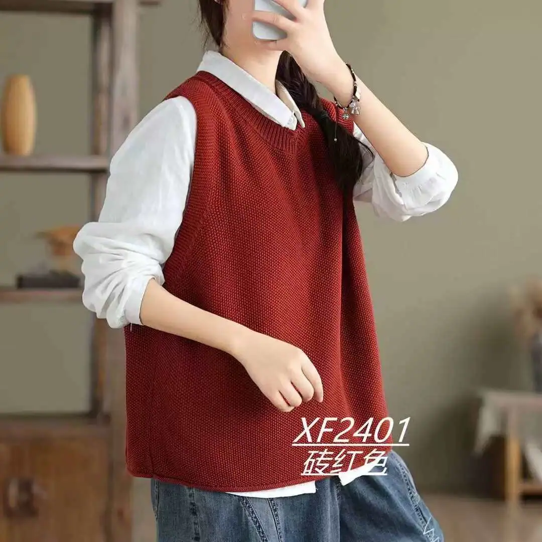 Chaleco Suéter de Punto sin Mangas de Hilo de Algodón Versátil de Color Sólido con Cuello Redondo para Mujer Primavera Otoño 2025 Tank Top Tejido Adelgazante Exterior Tendencia