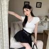 Playera Corta Americana de Modal Bordada Ajustada Elástica Verano Cuello en V Ombligo Frito Calle Pura Manga Corta Top Moderno