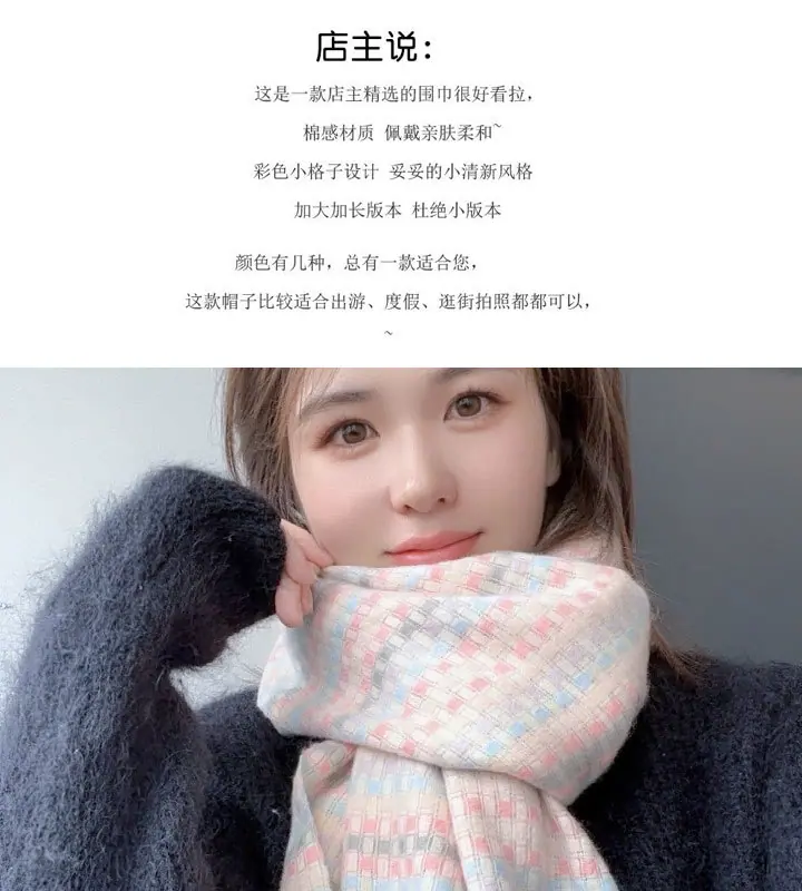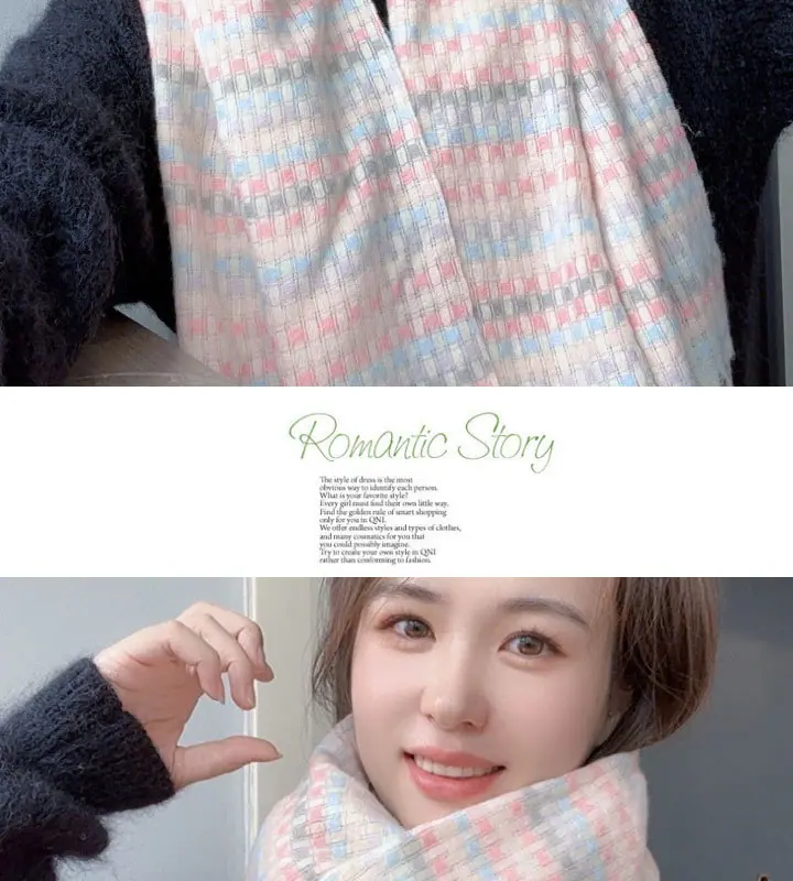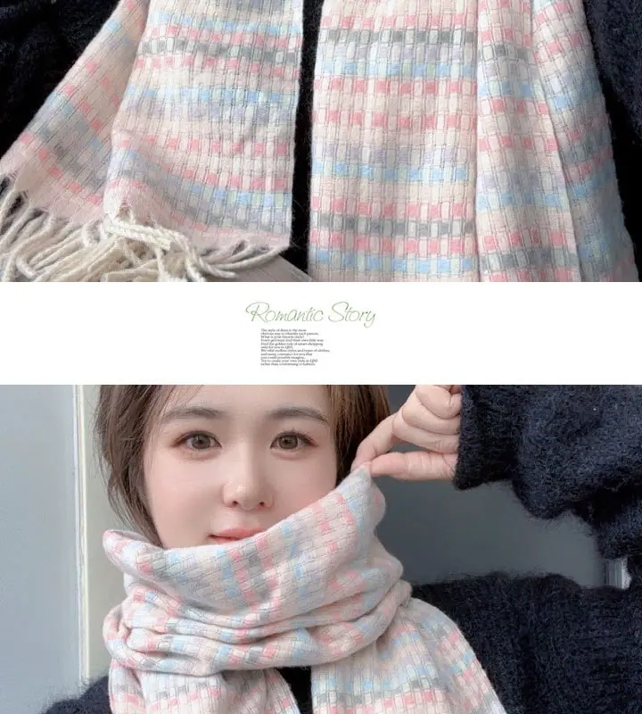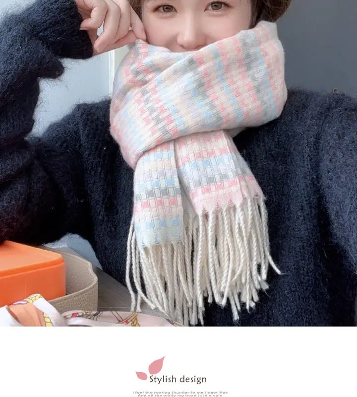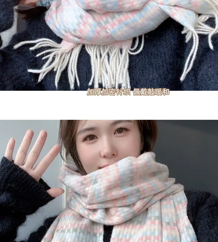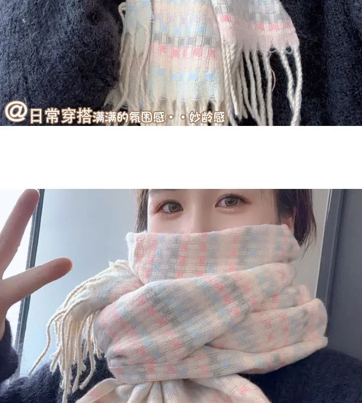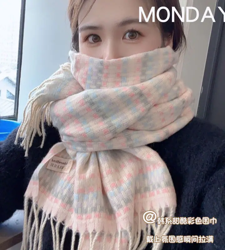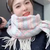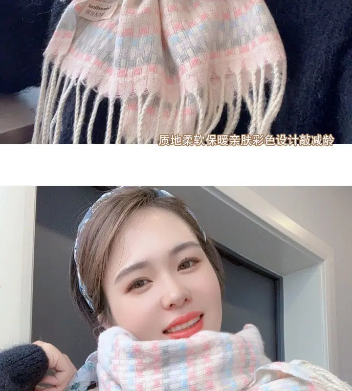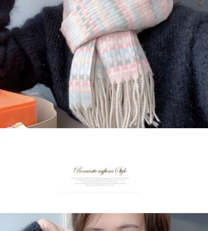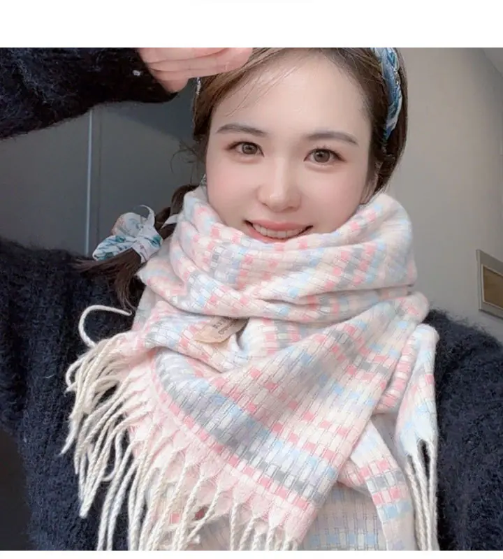 Bufanda para Mujer Otoño e Invierno 2024 Nuevo Estilo Coreano Cuadros Coloridos Estudiante Cálida Bufanda Gruesa Chal con Flecos de Imitación Cachemira