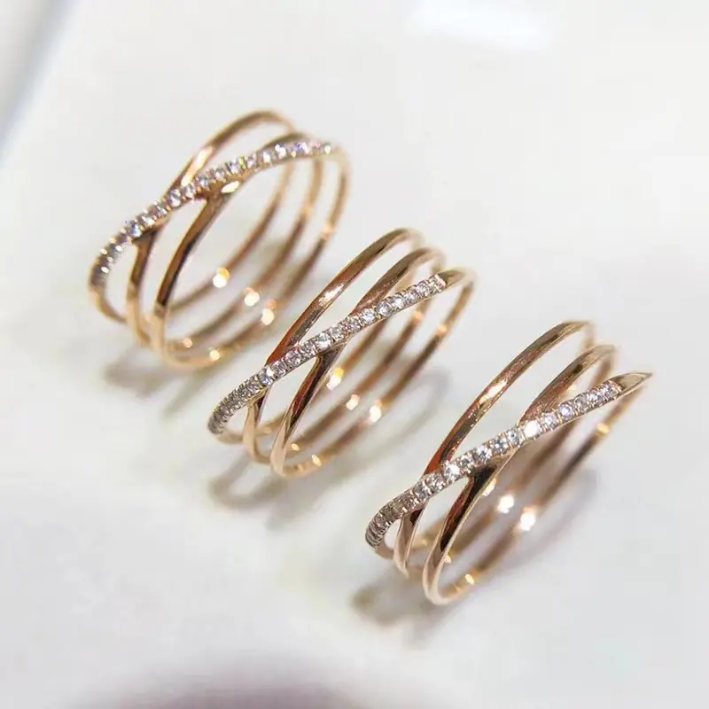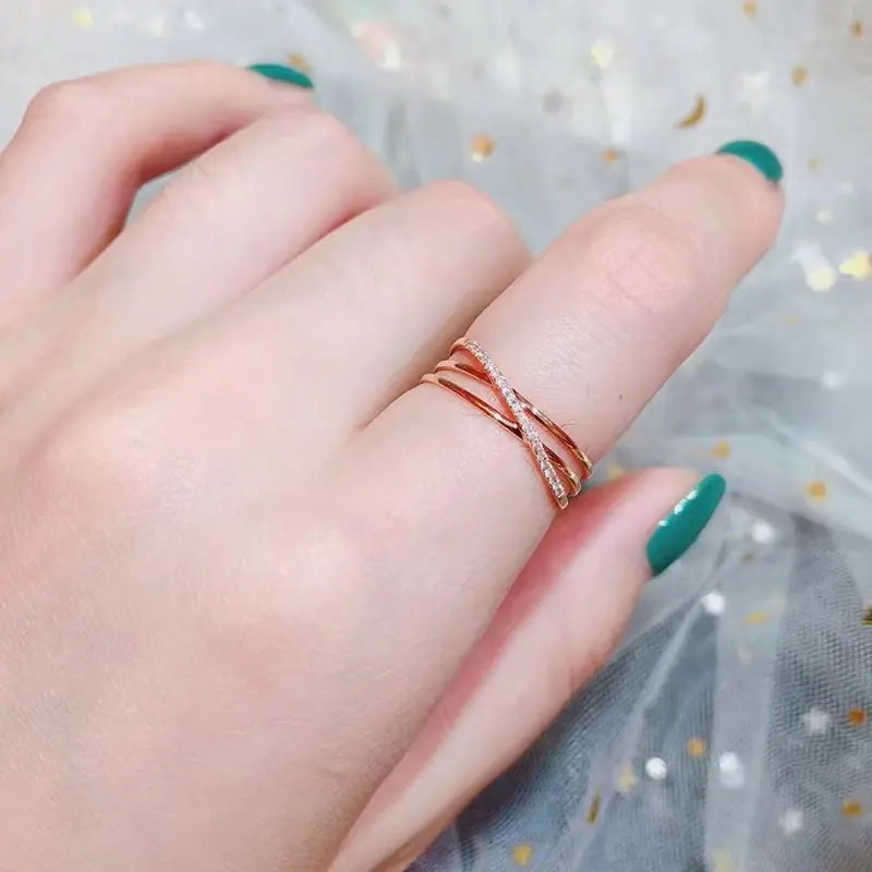 Anillo de estilo europeo y americano anillo oro rosa multicapa anillo para dedo índice chapado en oro moda anillo femenino accesorios fábrica directo generación de cabello