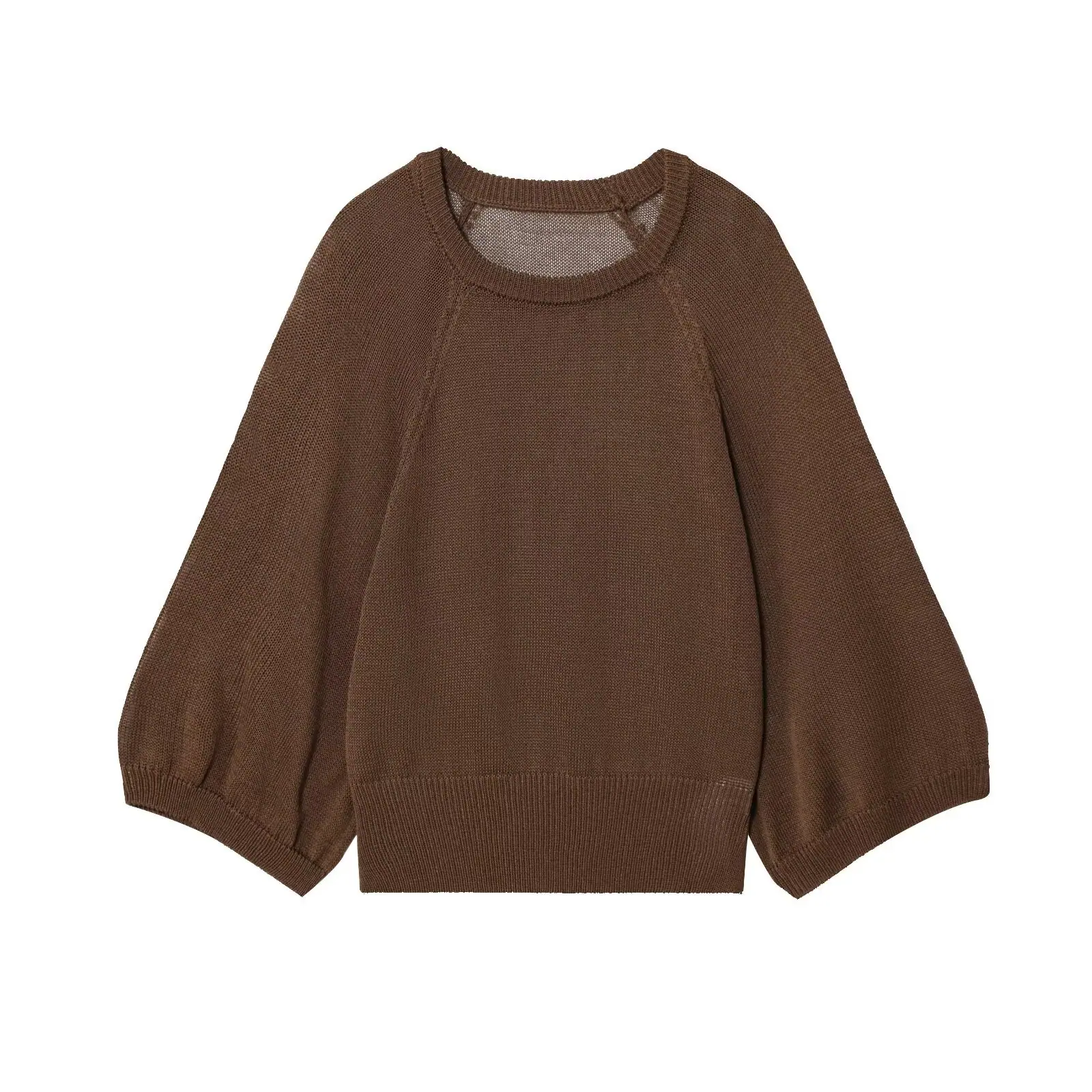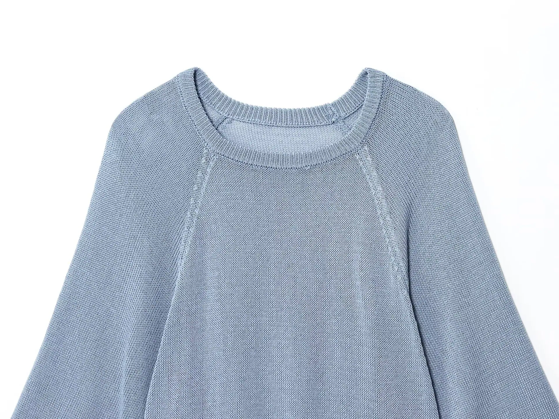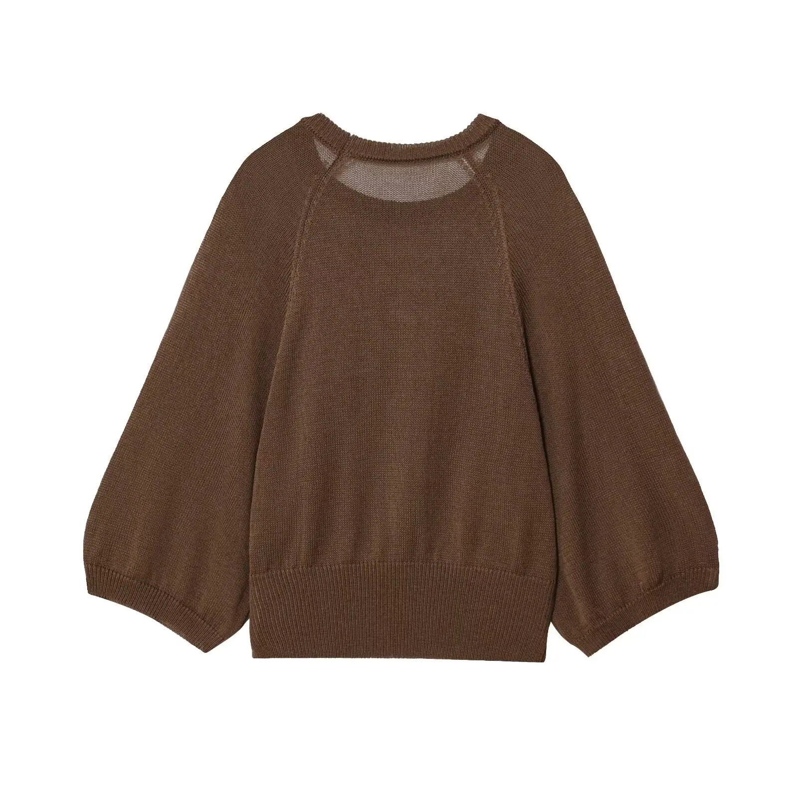 Otoño 2025 Nuevo Europeo y Americano Transfronterizo Moda Urbana para Mujer Color Sólido Manga Ancha Jersey Tejido w103 90140