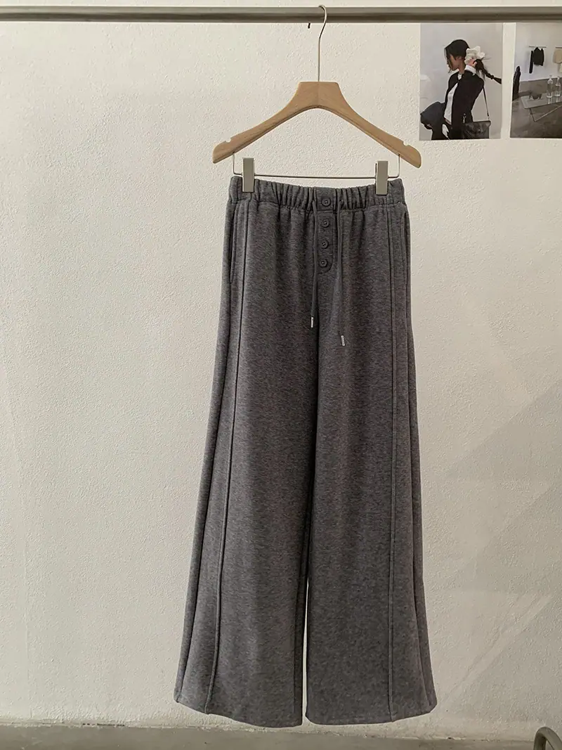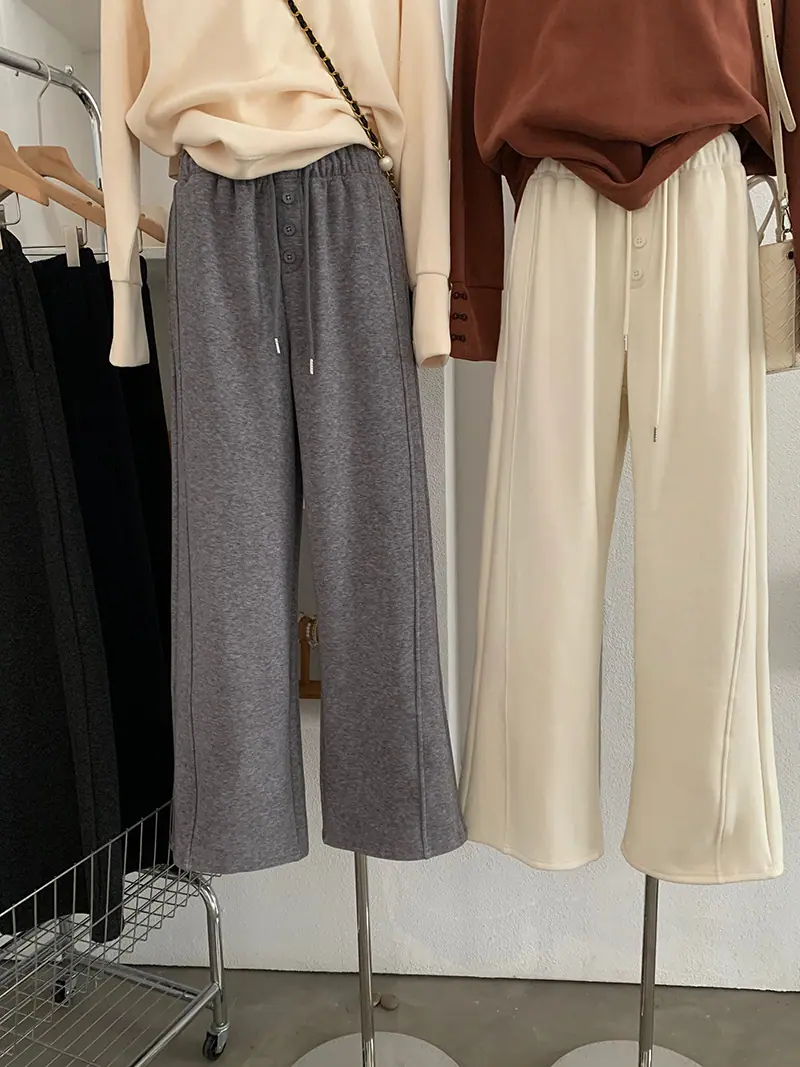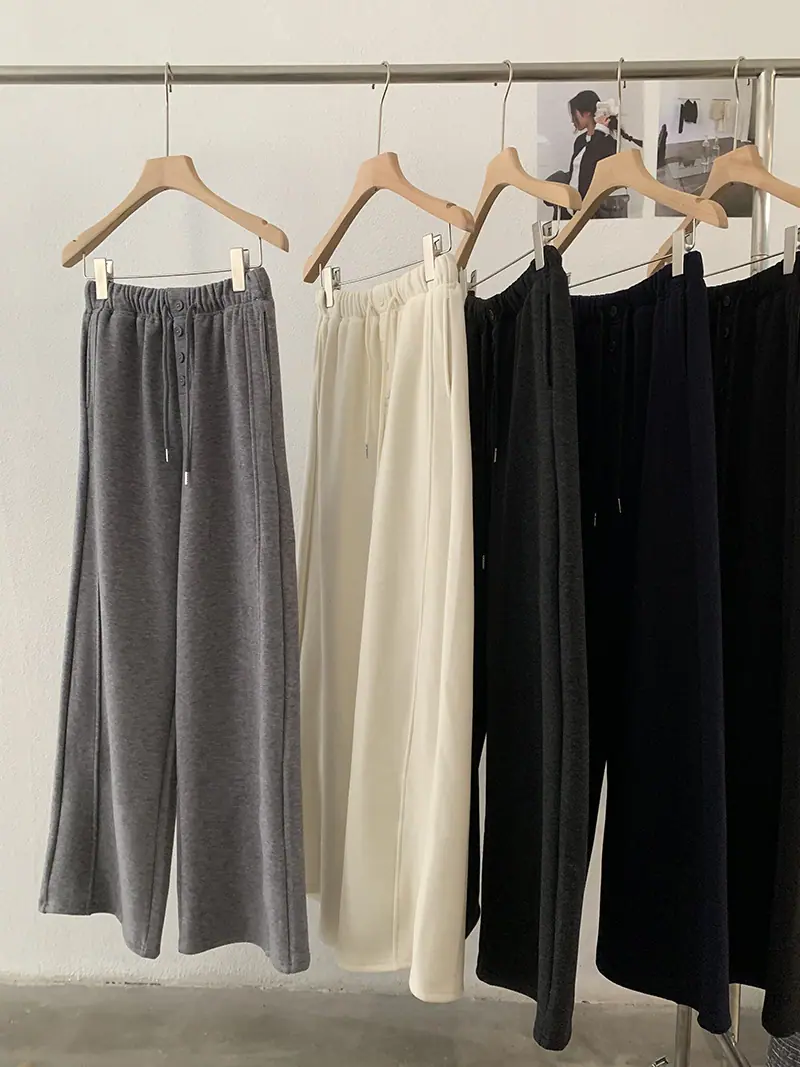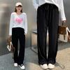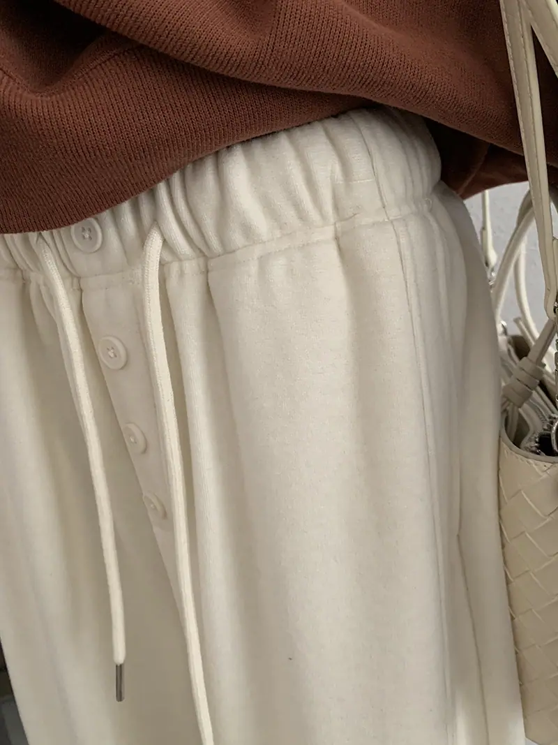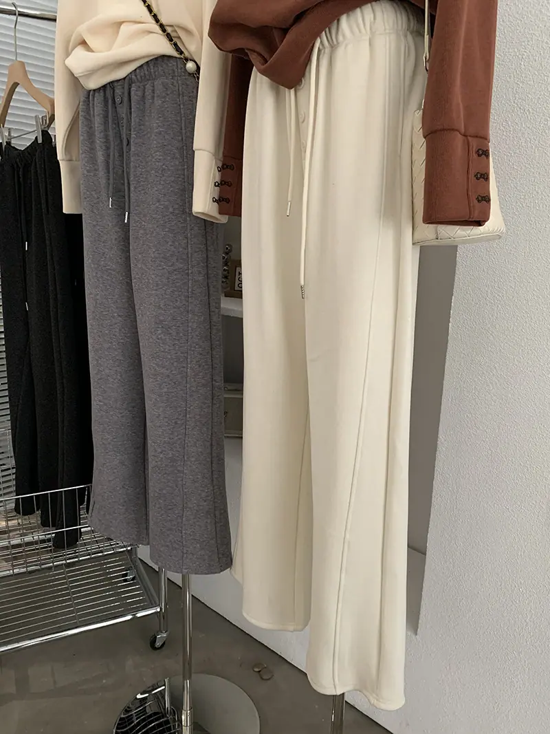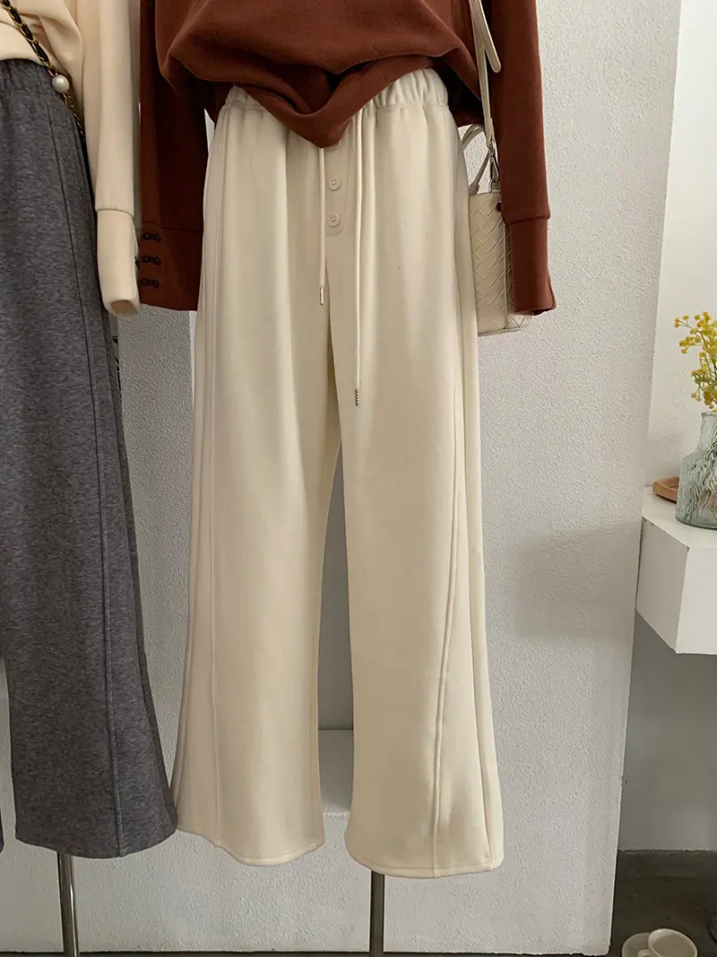 Oumalai 2025 Invierno Nuevo Elástico Cintura Alta Holgado Casual Pierna Ancha Pierna Recta Pantalones Pantalón Deportivo de Felpa Mujer 5085