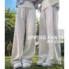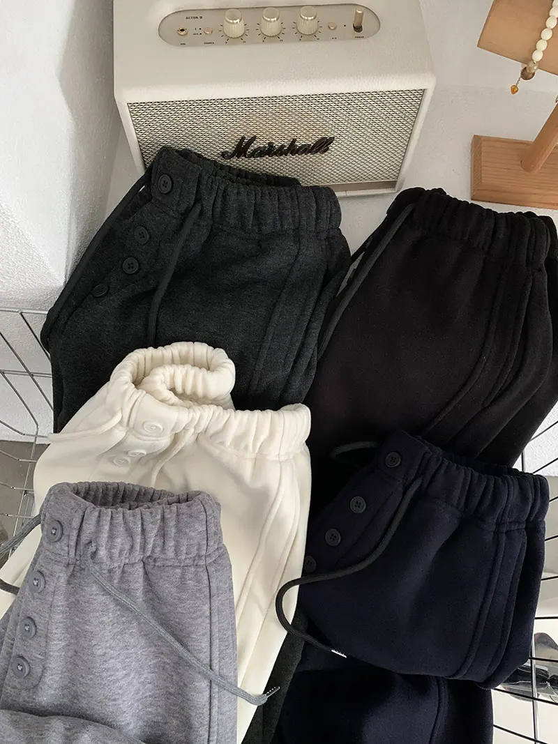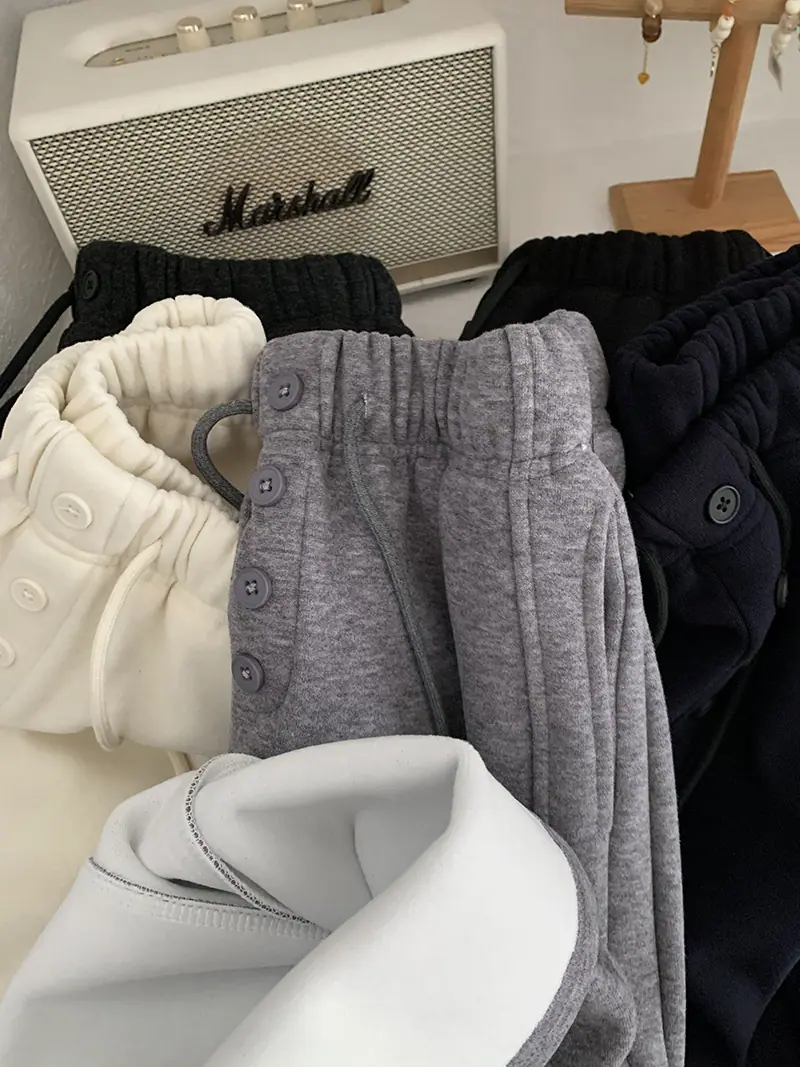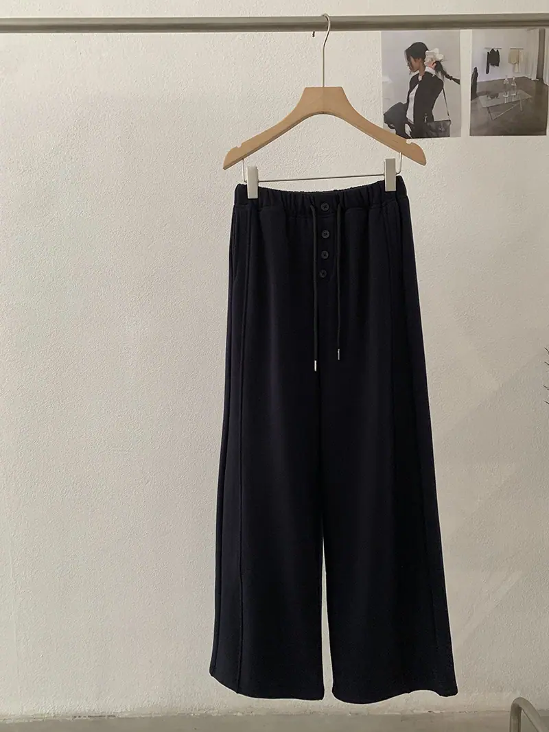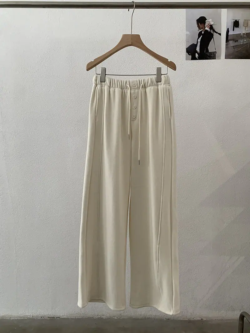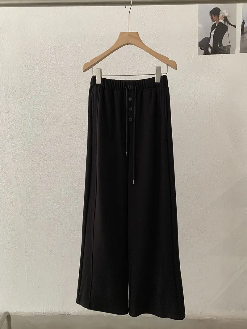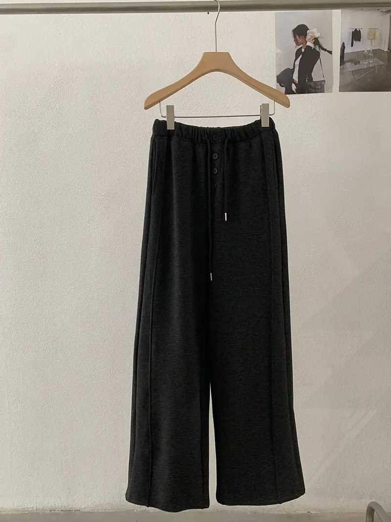 Oumalai 2025 Invierno Nuevo Elástico Cintura Alta Holgado Casual Pierna Ancha Pierna Recta Pantalones Pantalón Deportivo de Felpa Mujer 5085
