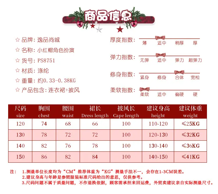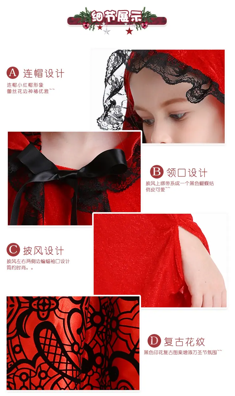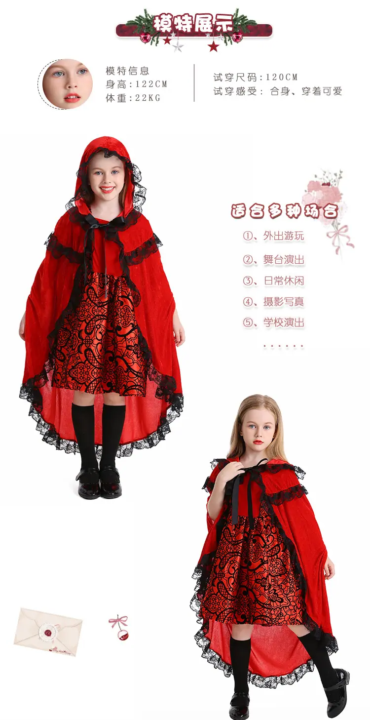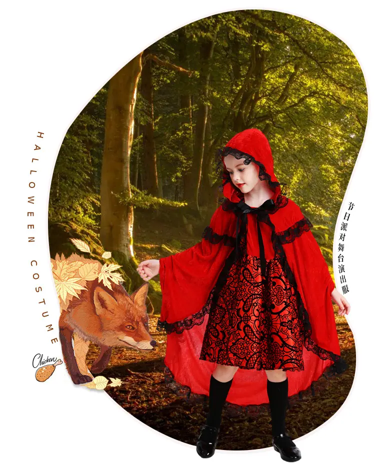 Ropa de cosplay de Caperucita Roja para niños Suministro de Comercio Exterior Cuentos de Hadas Disfraces de Escenario Disfraces de Halloween