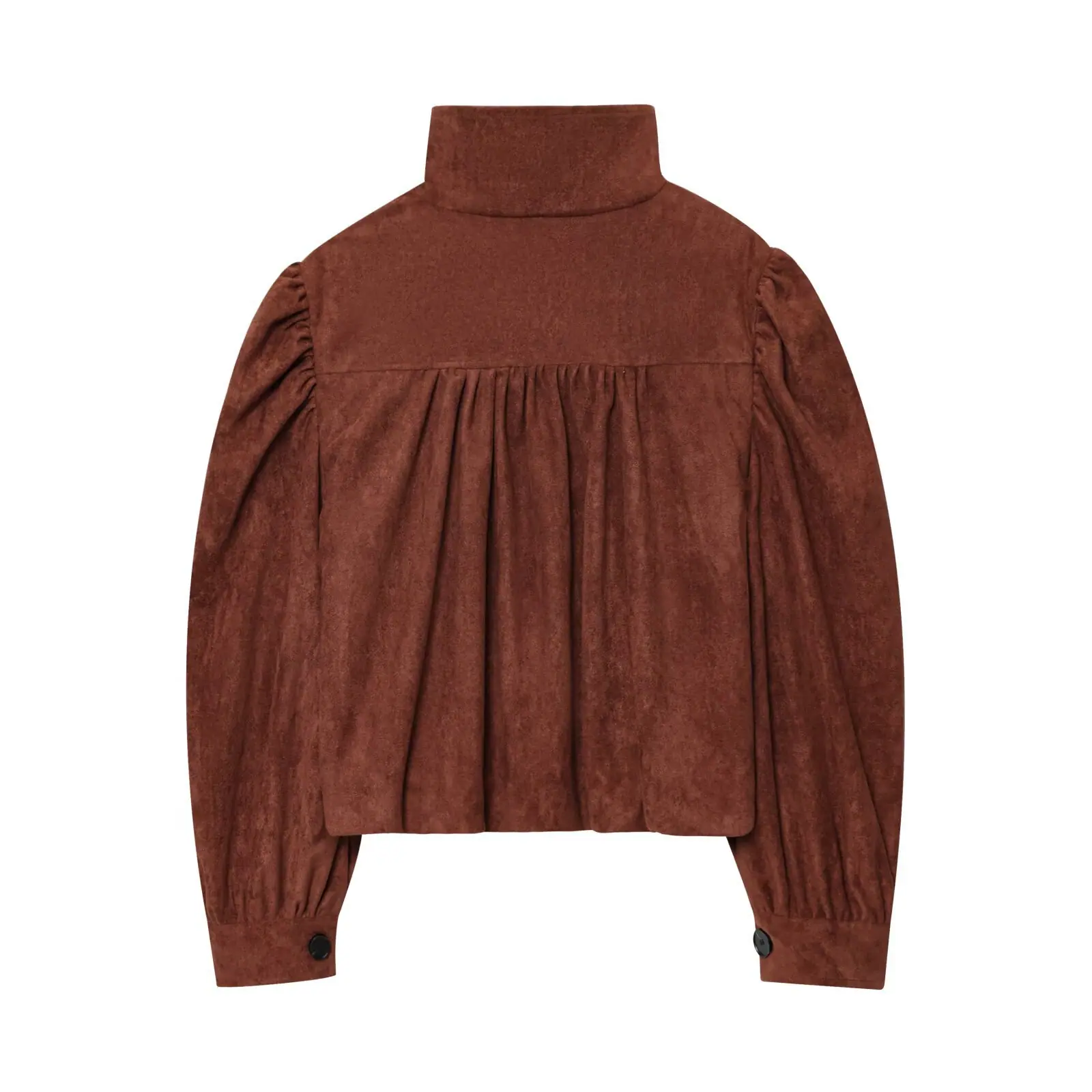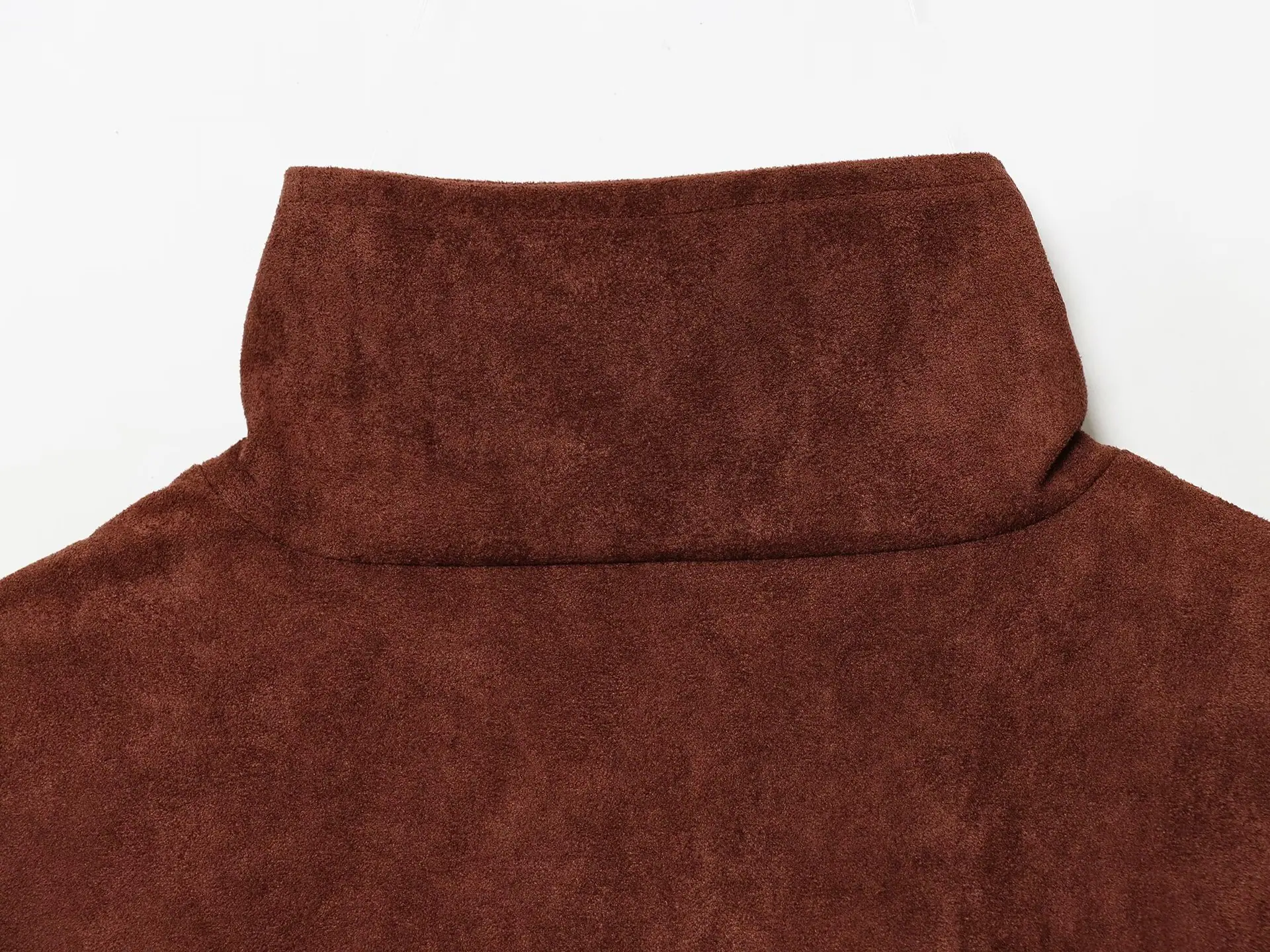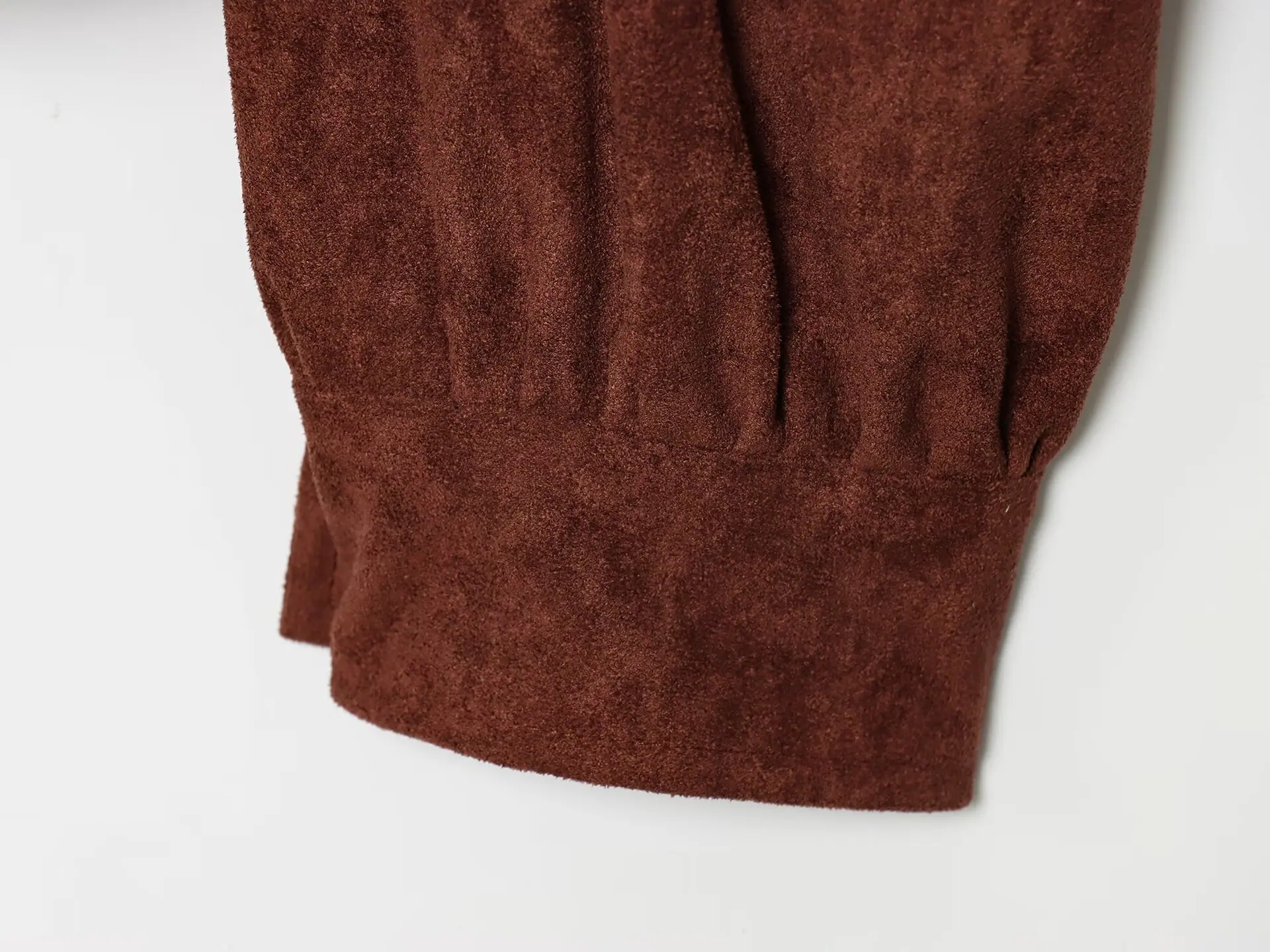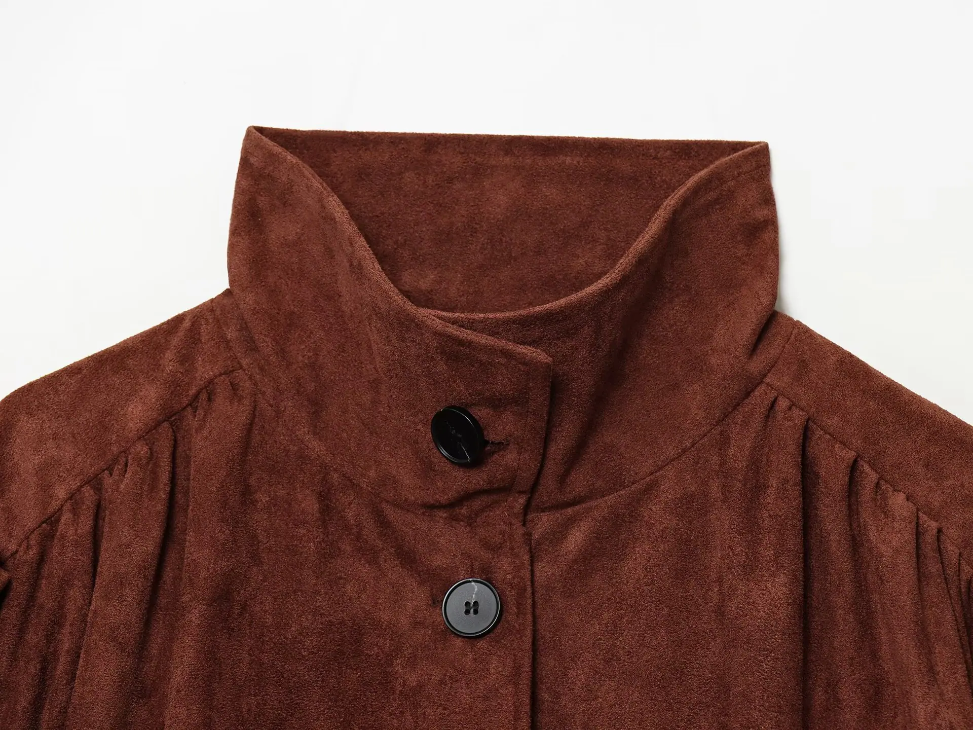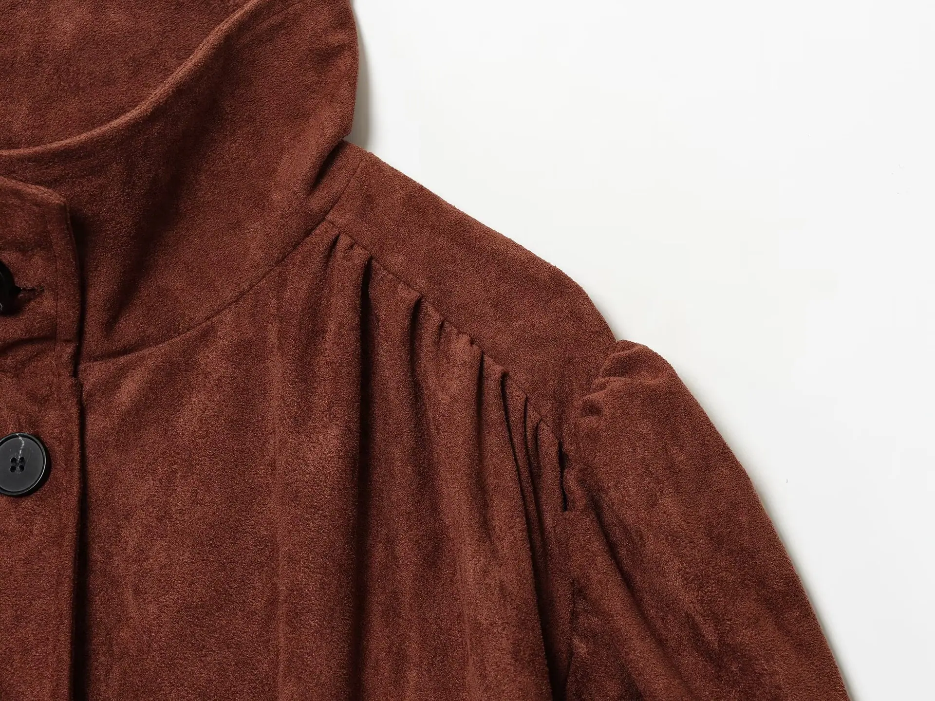 2025 Otoño/Invierno Nuevo Europeo y Americano Transfronterizo Moda Urbana para Mujer Textura de Gamuza Ropa Exterior Plisada w063 9390