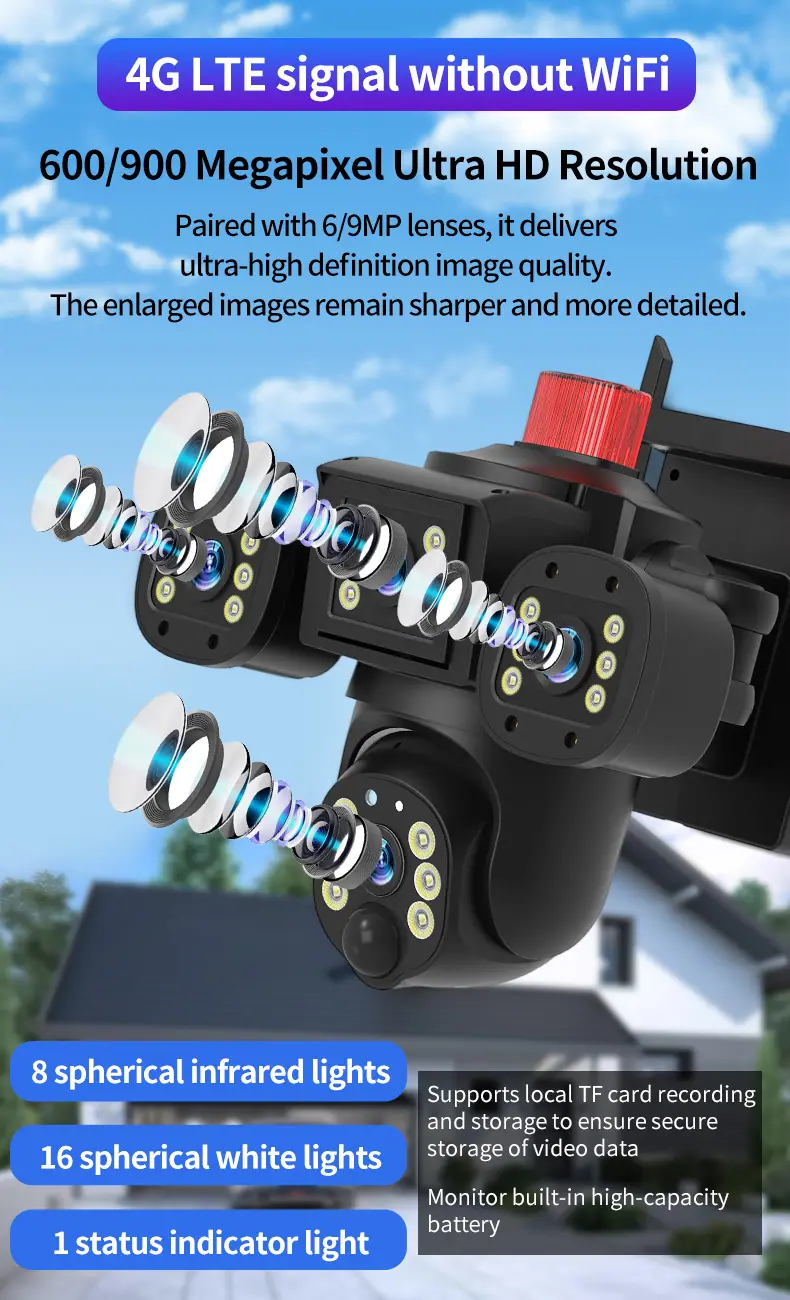La versión normal tiene dos cámaras y tres pantallas. La versión verdadera de triple lente requiere tres cámaras. El que se fotografió no viene con tarjeta de memoria. Si necesita una tarjeta de memoria, debe comprarla por separado.