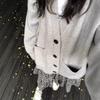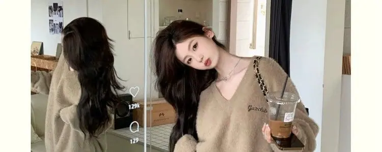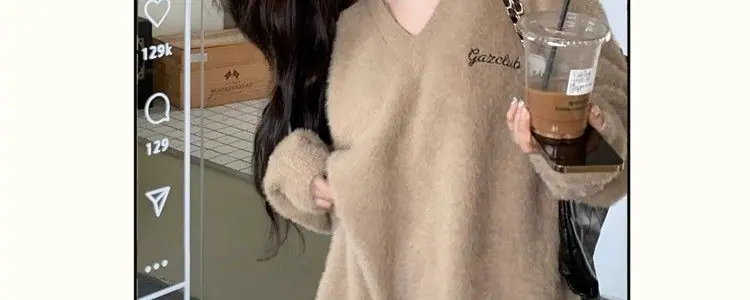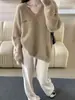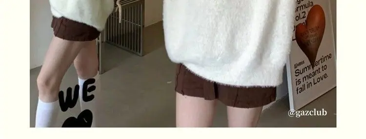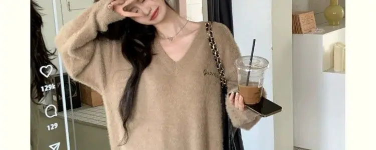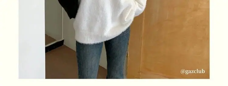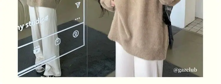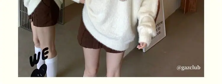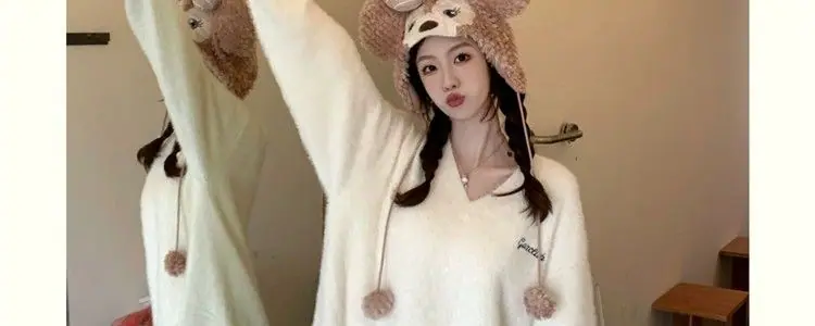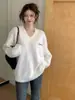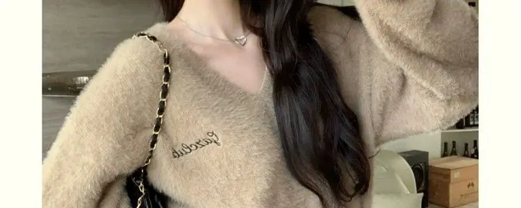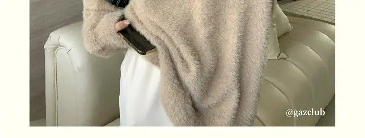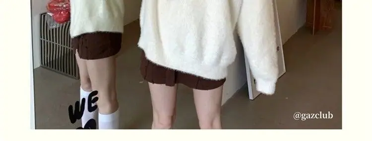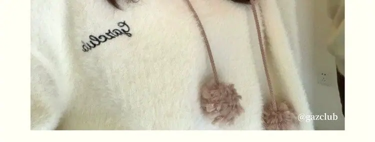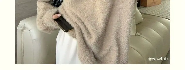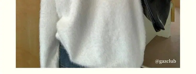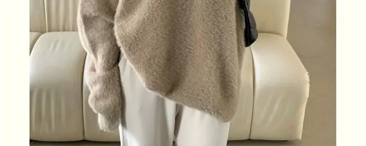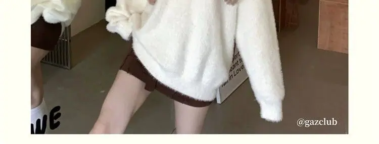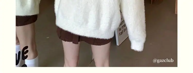 Suéter de punto japonés retro de otoño e invierno con cuello en V para mujer, estilo holgazán, suéter blanco, terciopelo de visón sintético, top suave holgado