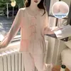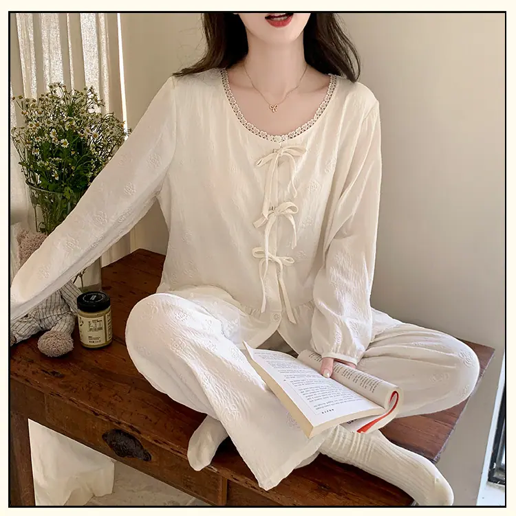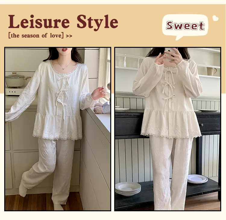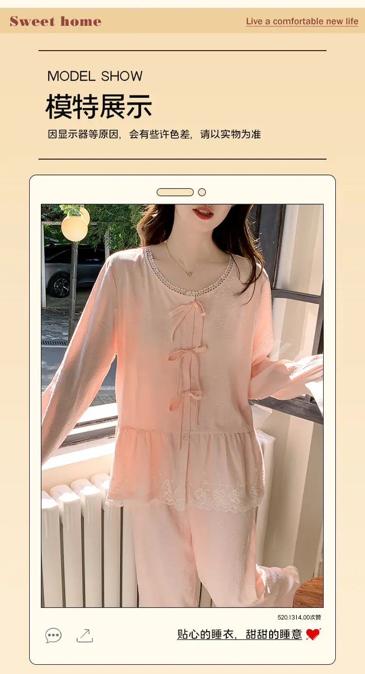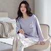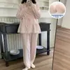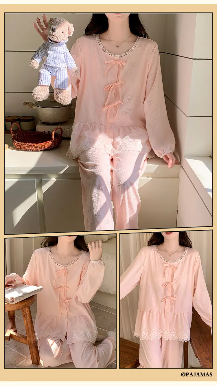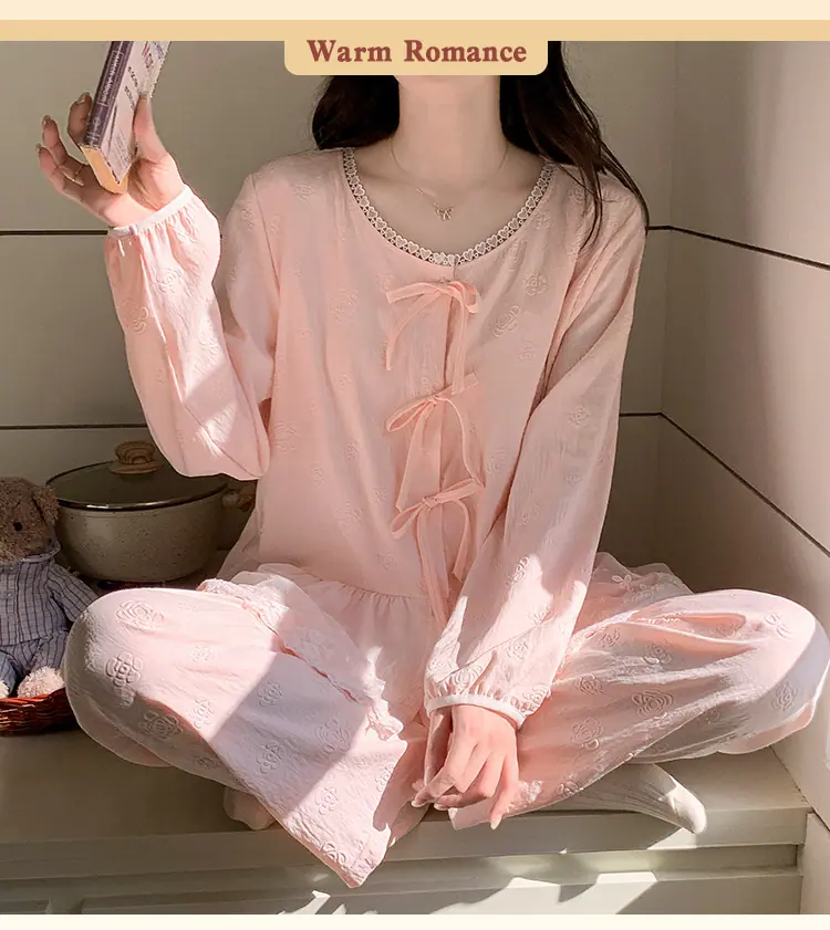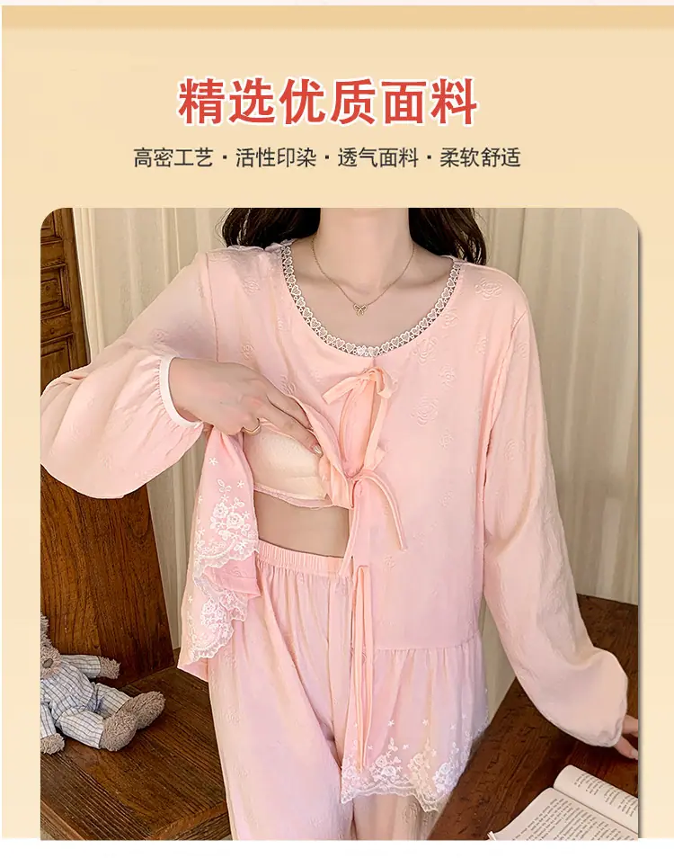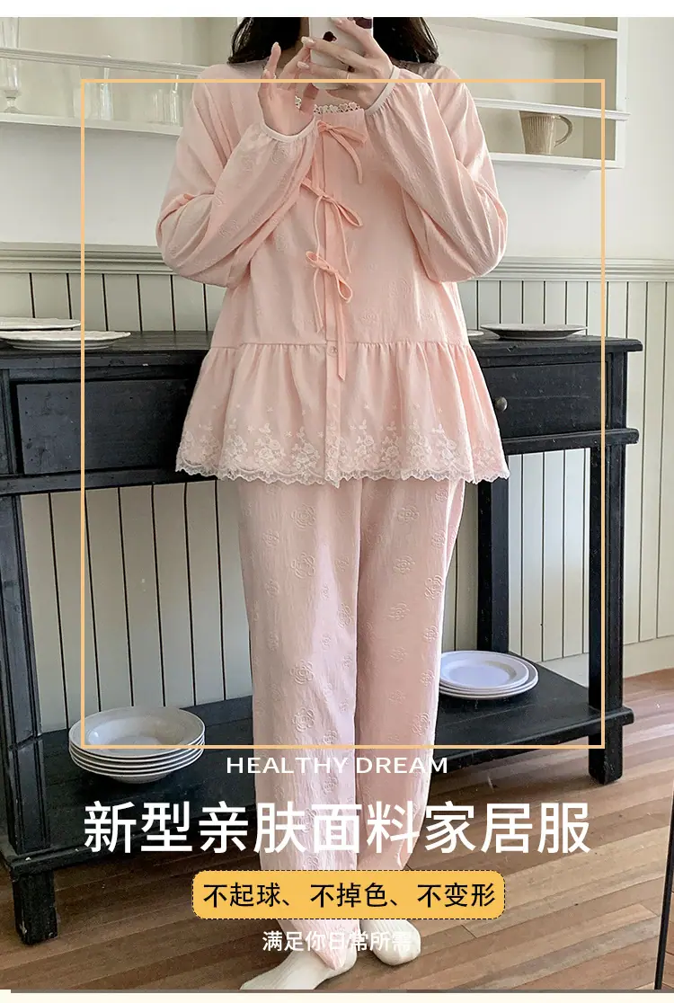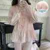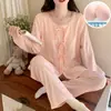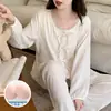 Pijama de Primavera y Otoño para Mujer Algodón Nube Manga Larga Conjunto 2025 Nuevo Estilo con Almohadilla en el Pecho Estilo Delgado Ropa de Exterior Talla Grande Ropa para el Hogar