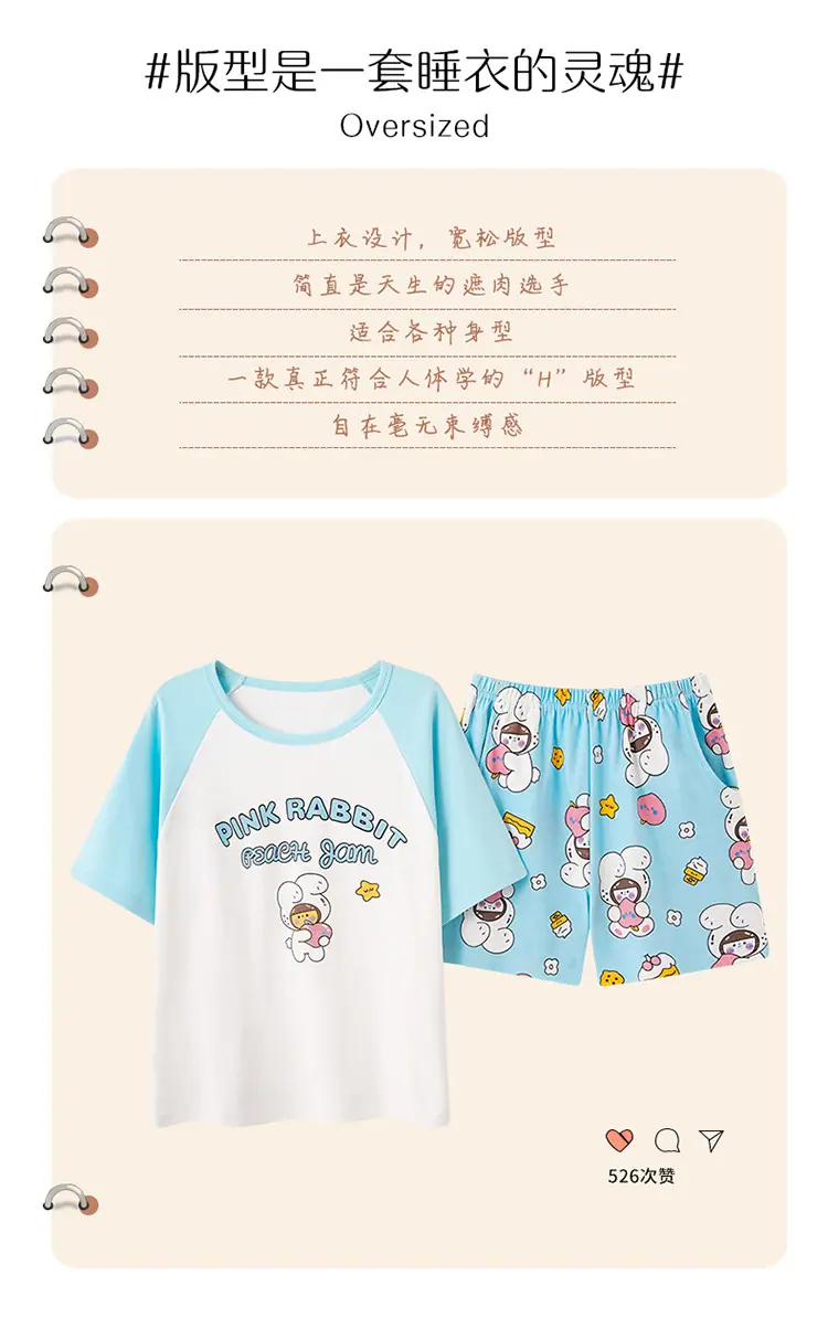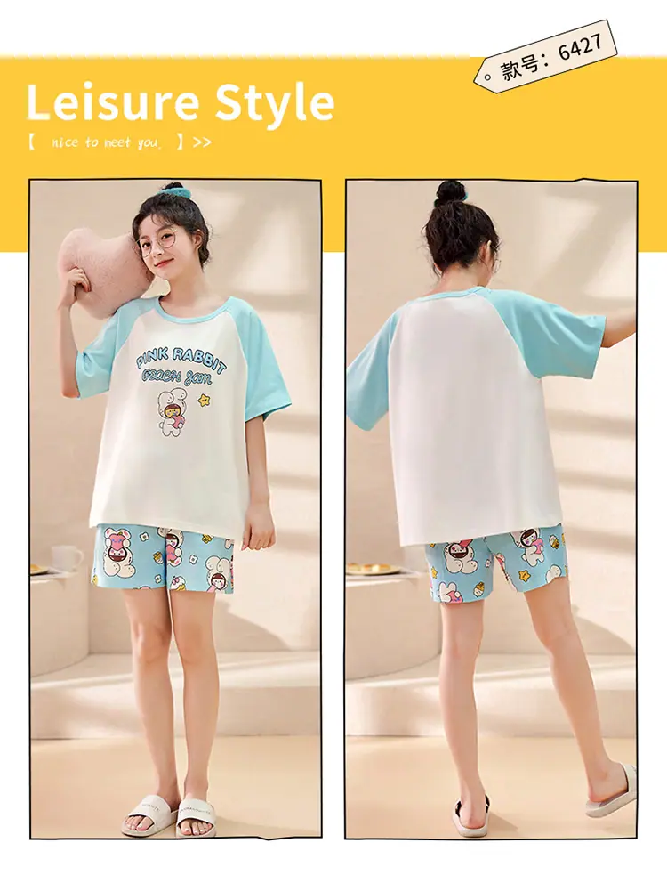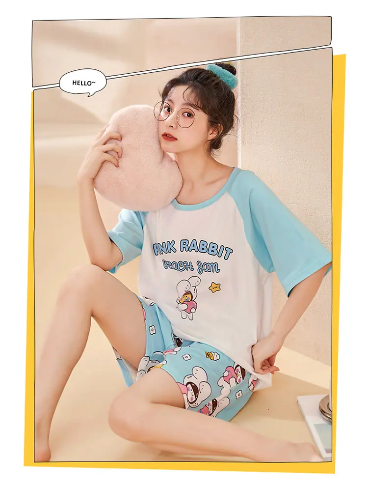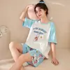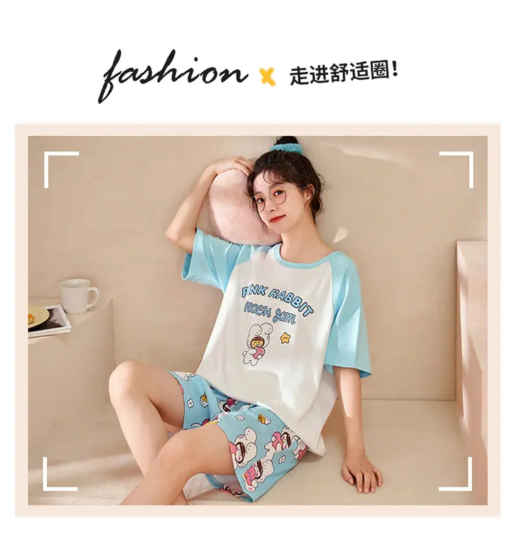 Pijama de Verano para Mujer de Manga Corta de Algodón con Shorts Traje de Verano Talla Extra Delgado Nuevo Verano Ropa para el Hogar Se Puede Usar Afuera
