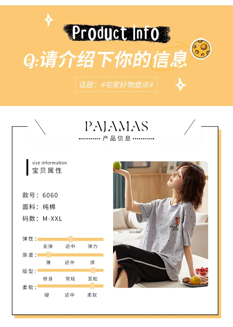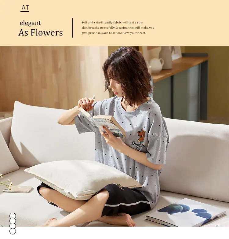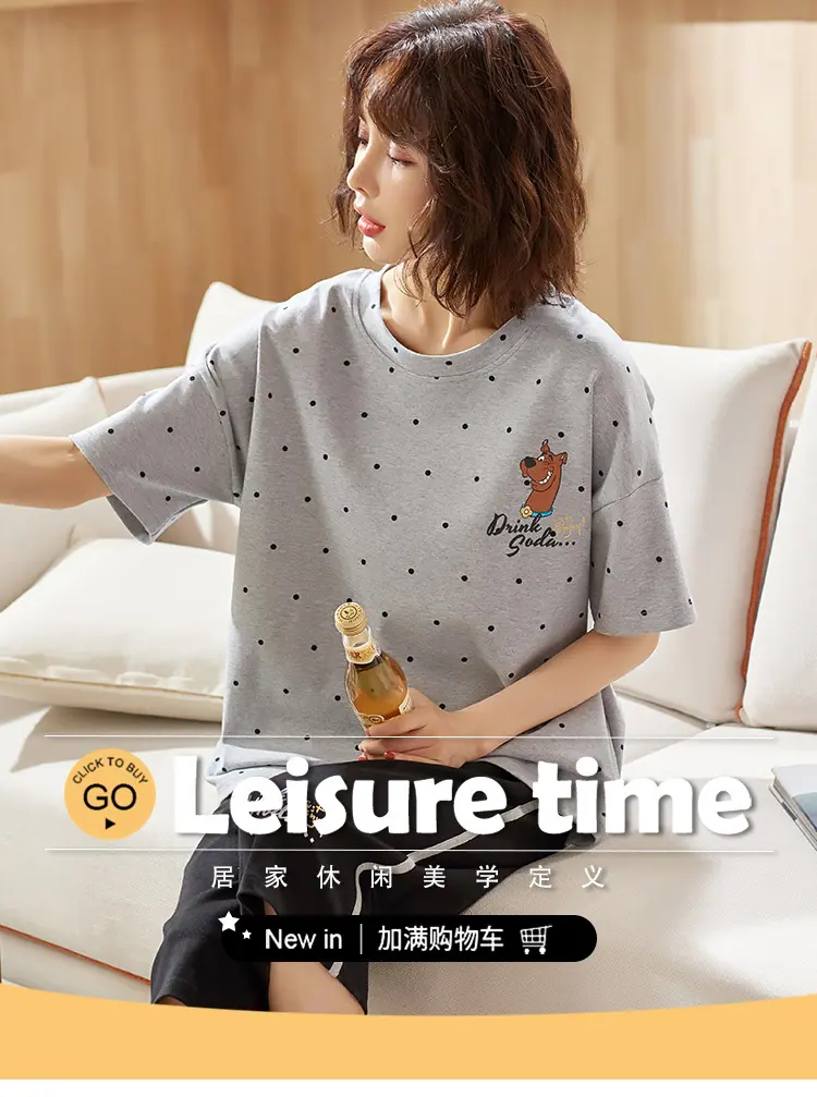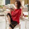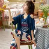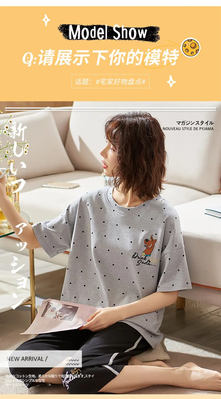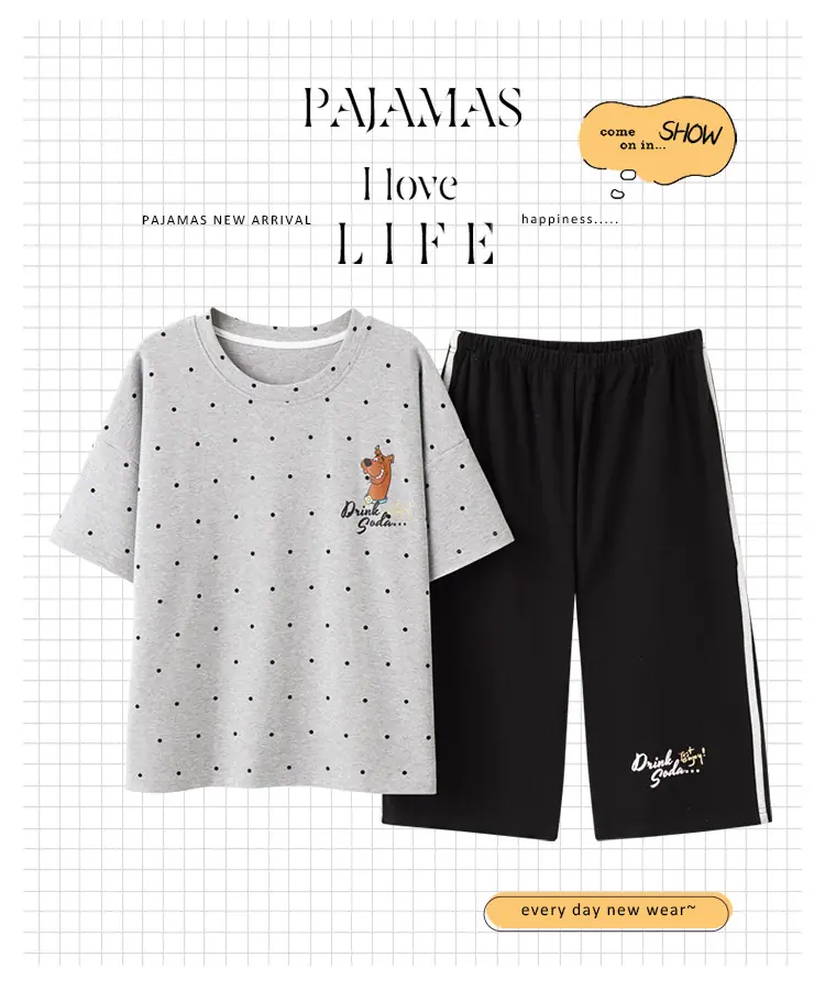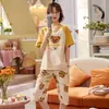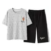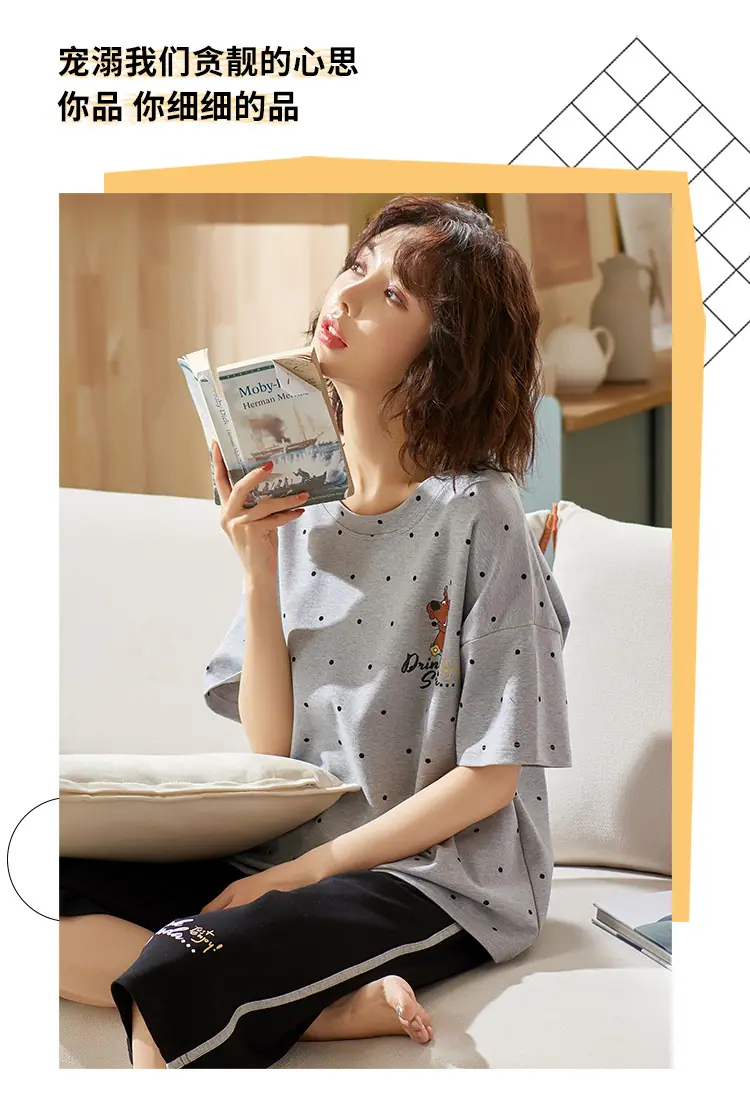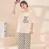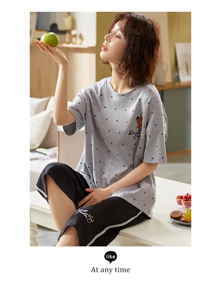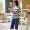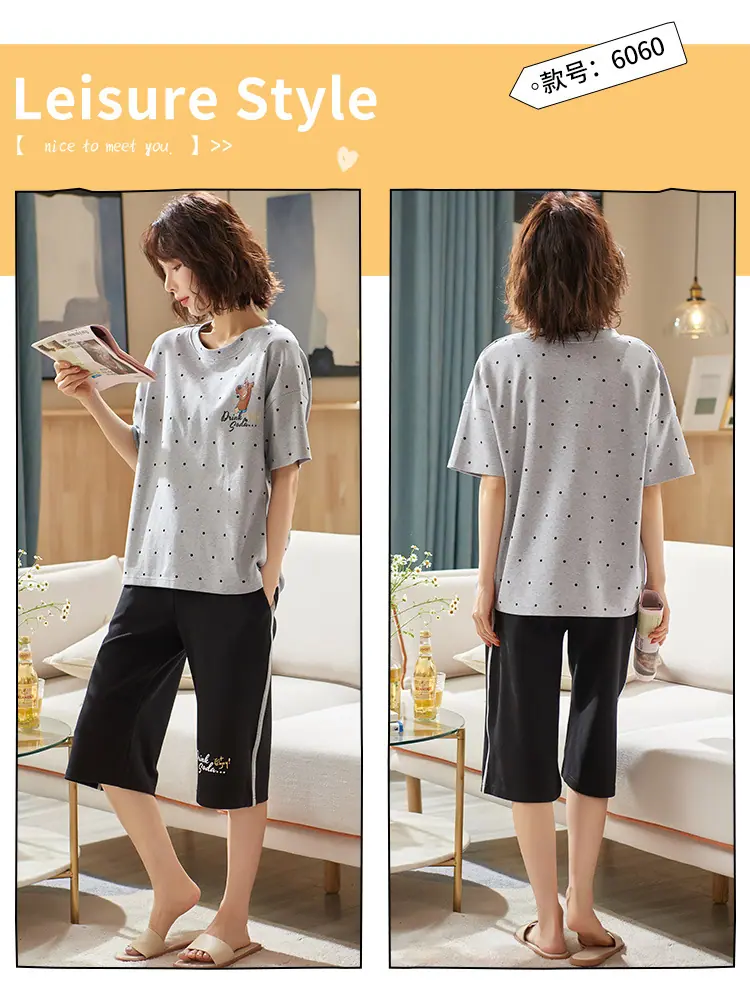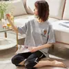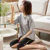 Pijama para Mujer Verano Manga Corta Pantalón Capri Algodón Puro Fino Nuevo Estilo Conjunto de Ropa para el Hogar de Verano para Mujer