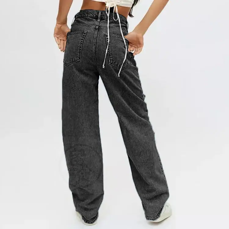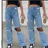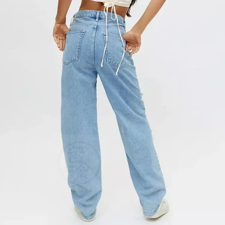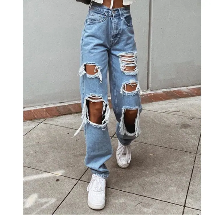 Amazon AliExpress Comercio Exterior Transfronterizo Europeo y Americano Jeans de Mujer Sueltos Rotos Azules Pantalones Rectos Tendencia