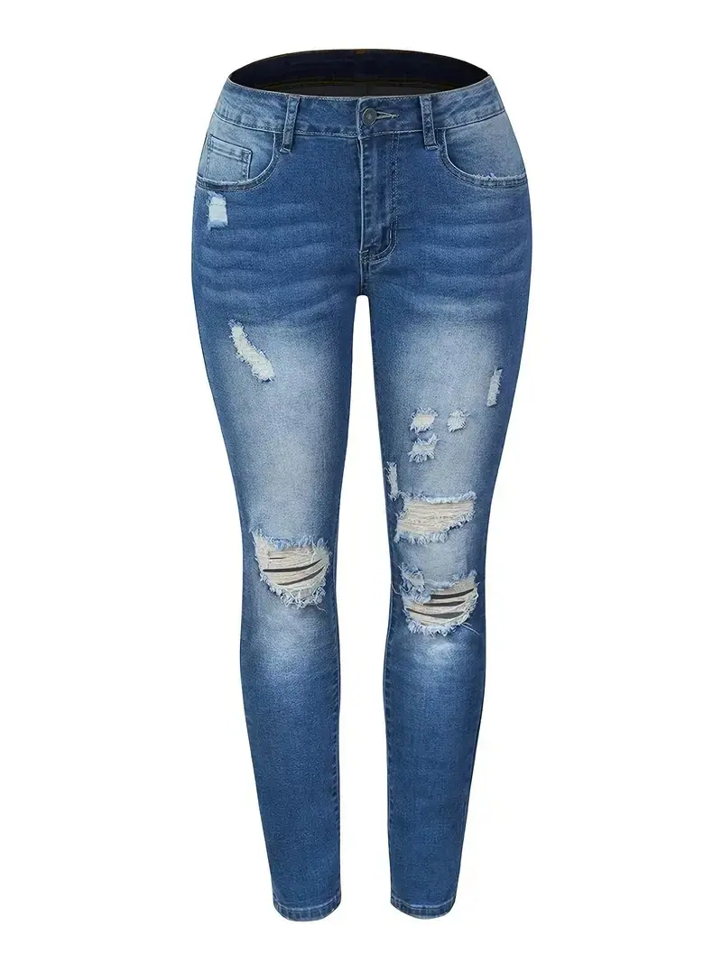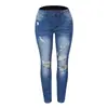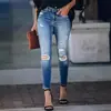 Europa y Estados Unidos transfronterizo nuevos jeans al por mayor calidad elástico cintura alta retro azul lavado agua agujero jeans ajustados mujeres