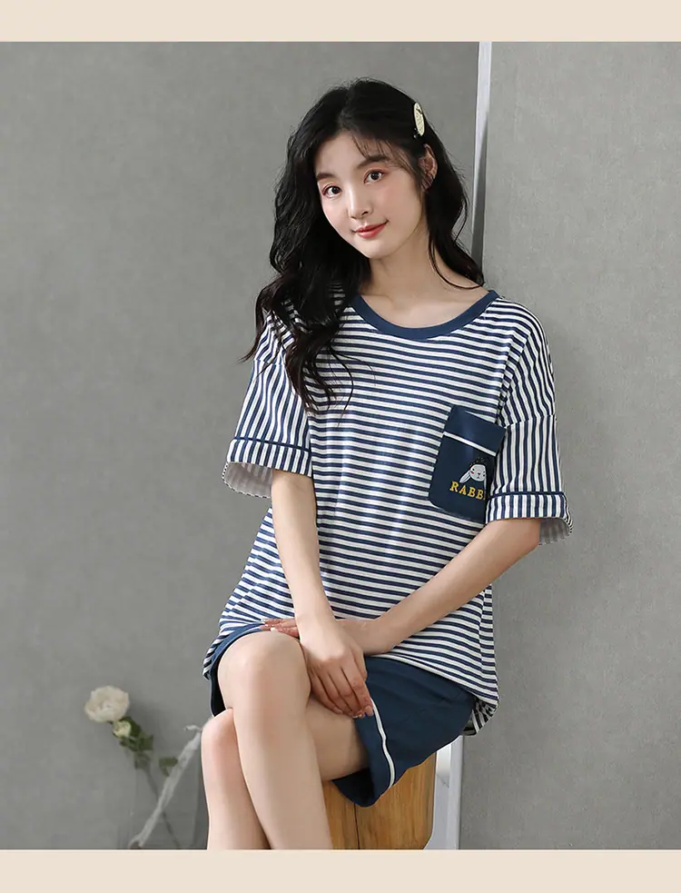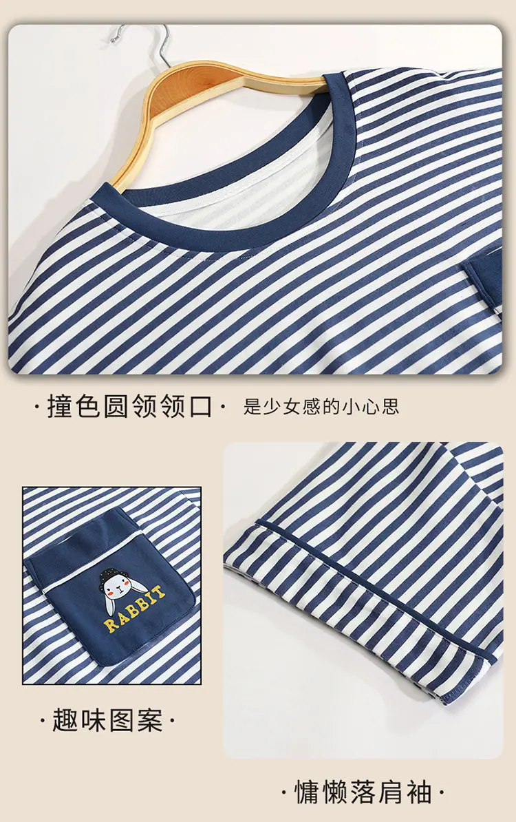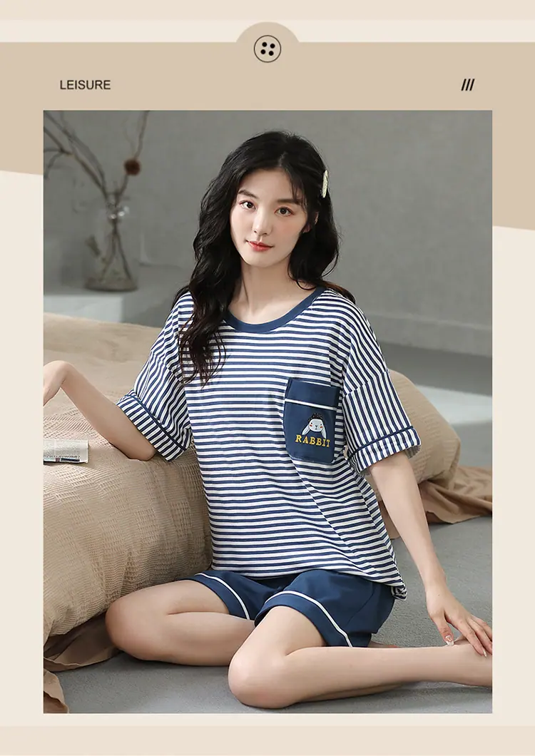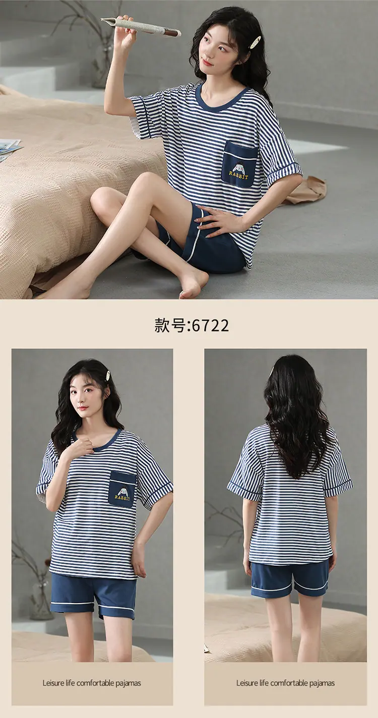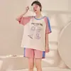 Pijama para Mujer Verano Delgada Manga Corta Nueva Algodón Puro Linda Ropa para el Hogar Traje de Dos Piezas Se Puede Usar Afuera Talla Grande