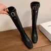Botas de otoño e invierno de cuero genuino para mujer de talla grande, tacón medio, punta redonda, versátiles, tacón cuadrado, nuevas botas Martin de piel de vaca de caña alta