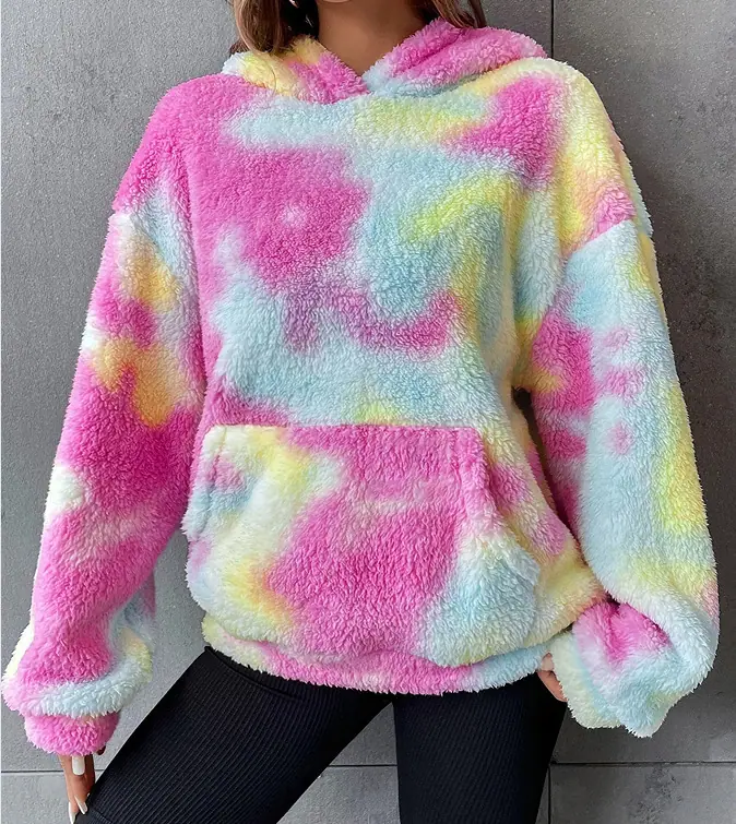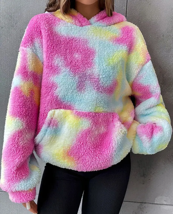 2025 Europa y América Amazon deseo otoño e invierno nueva moda casual versátil tie-dye bolsillo felpa sudadera con capucha