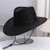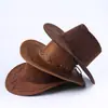 Sombrero vaquero occidental de ante de fieltro de lana de ala ancha para otoño e invierno para hombres y mujeres estilo tibetano protección solar sombrero para el sol sombrero de ala ancha sombrero de jazz retro