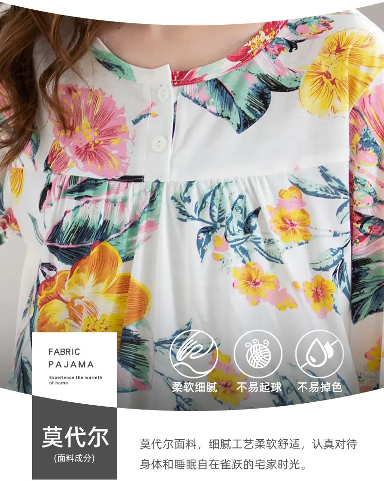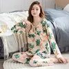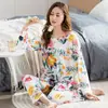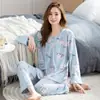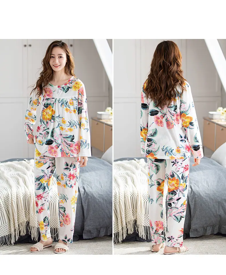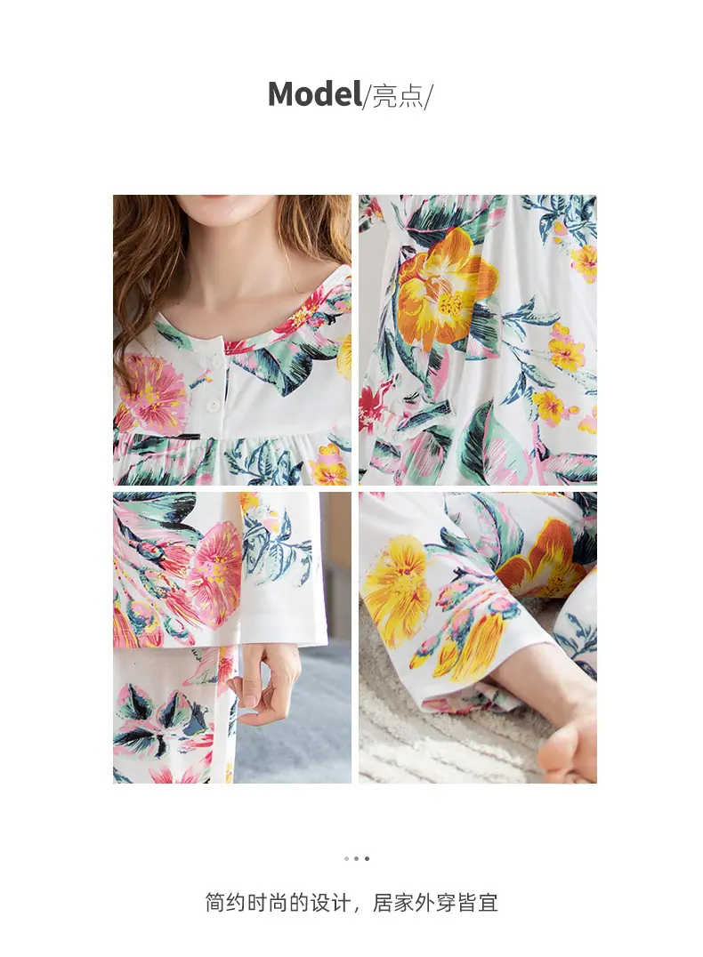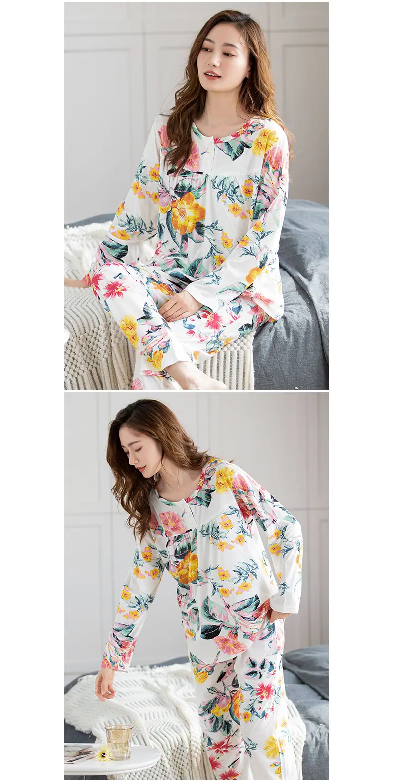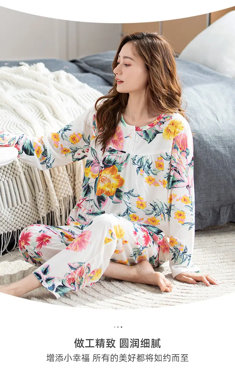 Pijama Modal para Mujer Primavera y Otoño Delgado Pantalones de Manga Larga Talla Grande para Nueva Madre Conjunto de Ropa para el Hogar