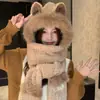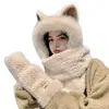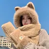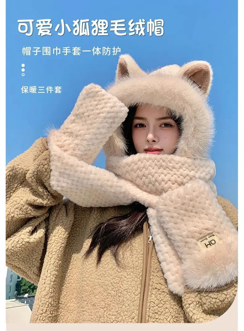 Lindo Gorro de Felpa con Orejas de Zorro Bufanda Integrada para Mujer Invierno Protección para las Orejas Gorro Cálido Calentador de Cuello para Estudiante Protección contra el Frío Resistente al Viento