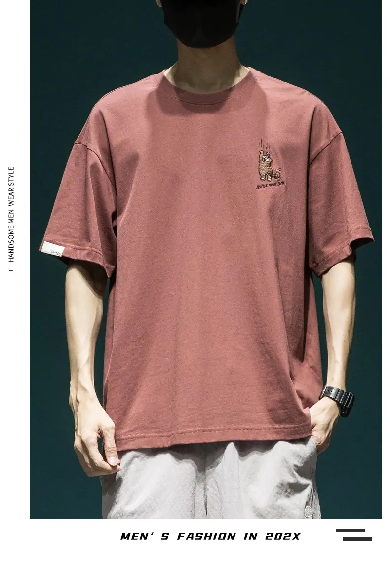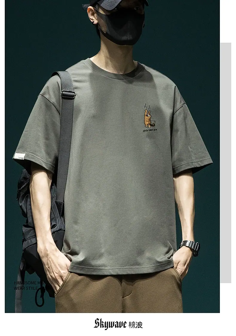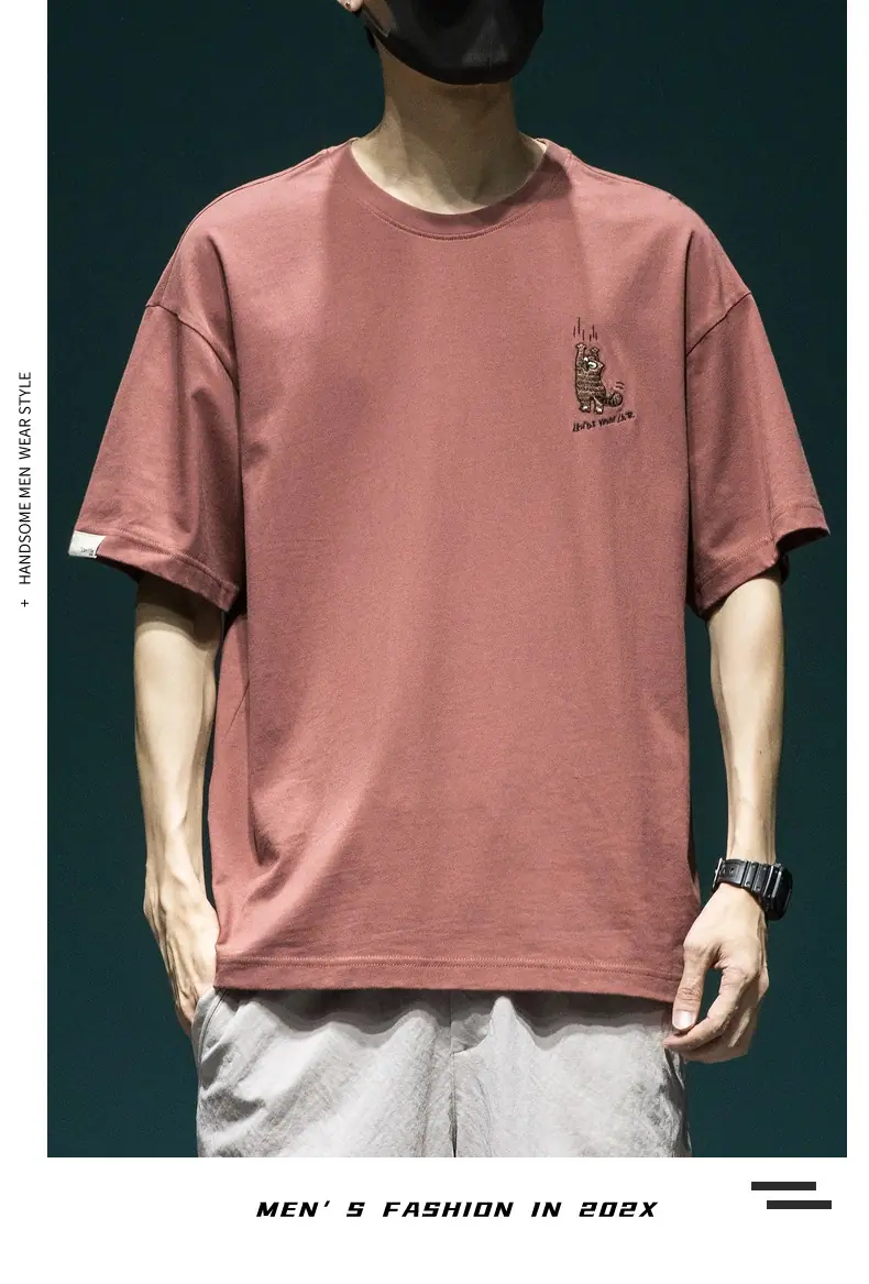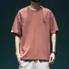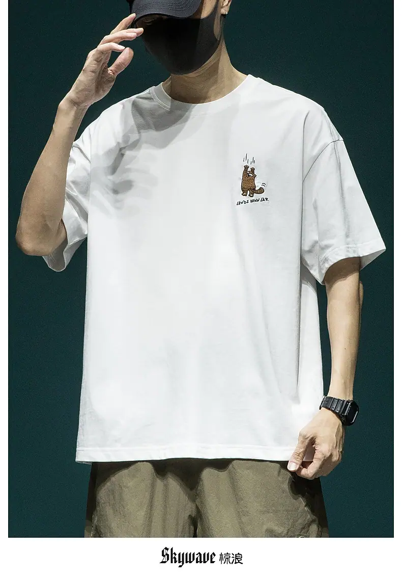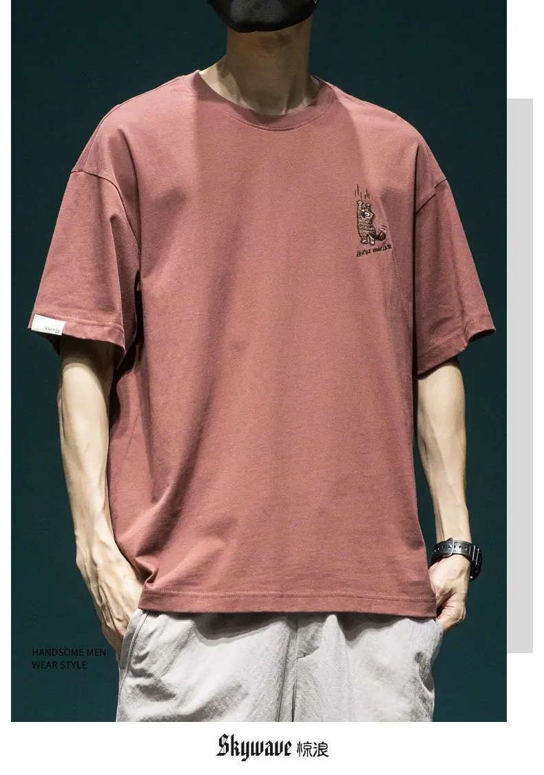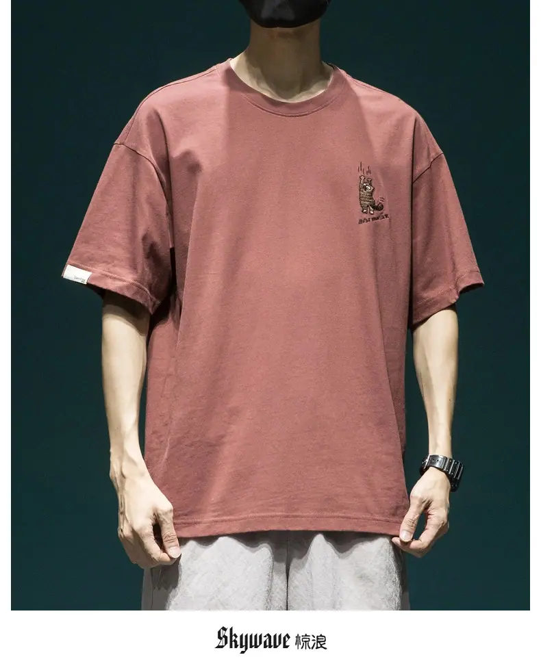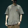 Camiseta de cuello redondo sencilla de estilo japonés para hombre, novedad de verano 2024, con estampado bordado divertido, holgada, de manga corta y talla grande