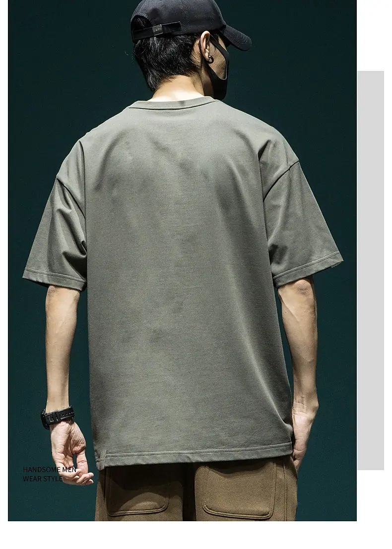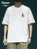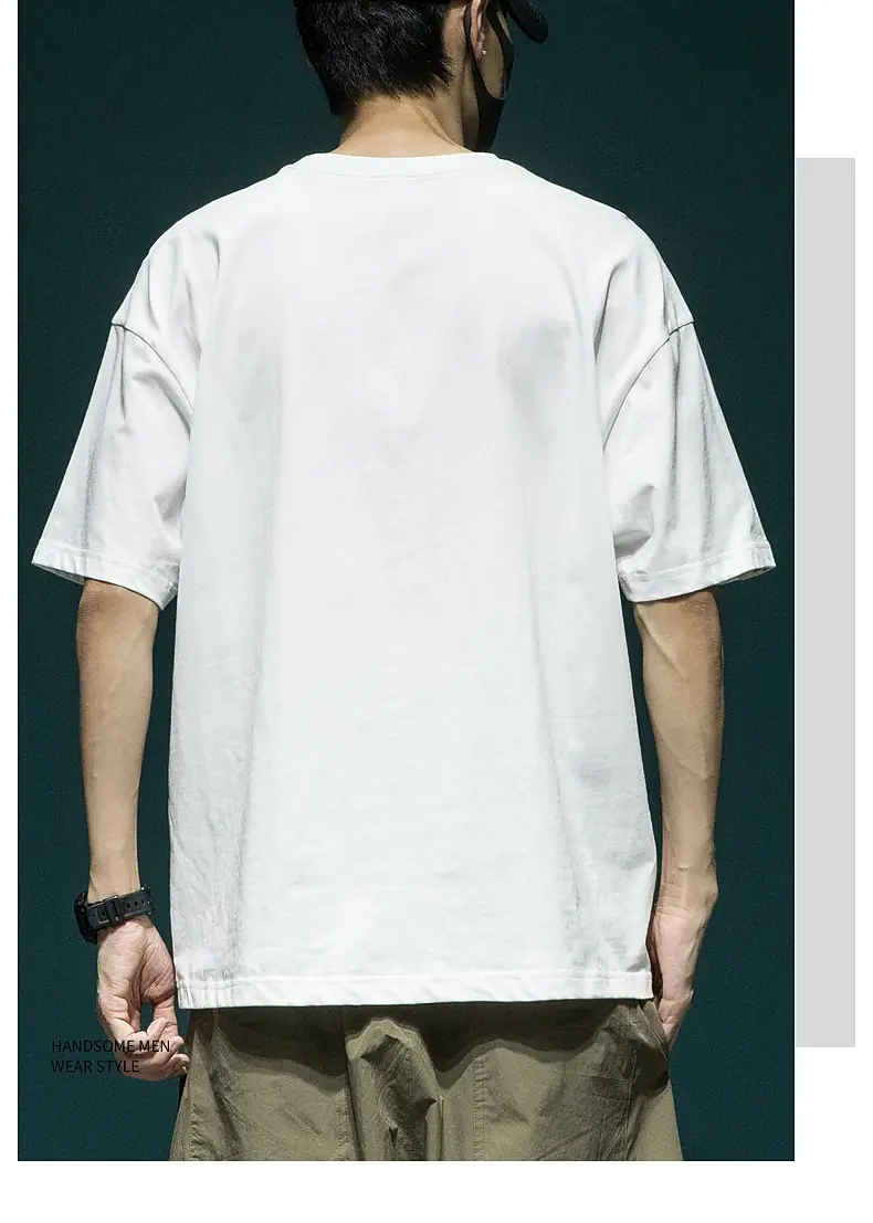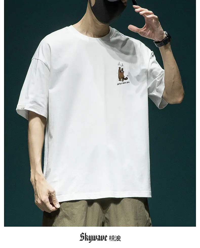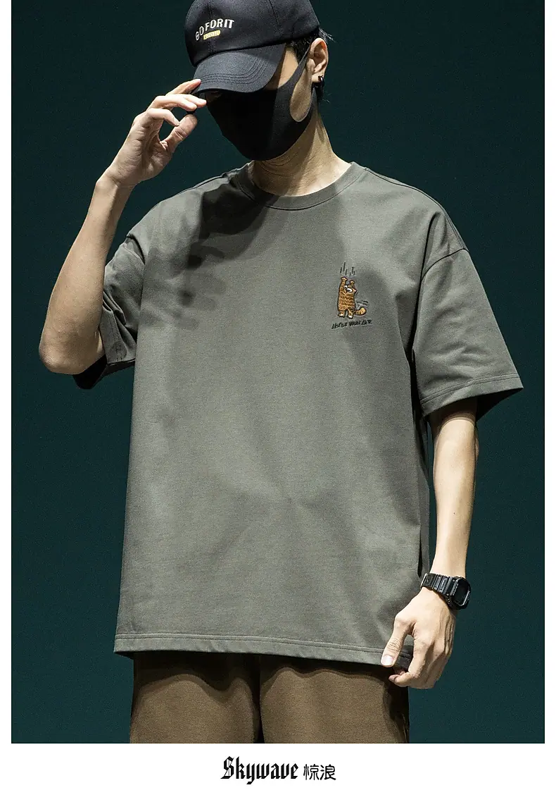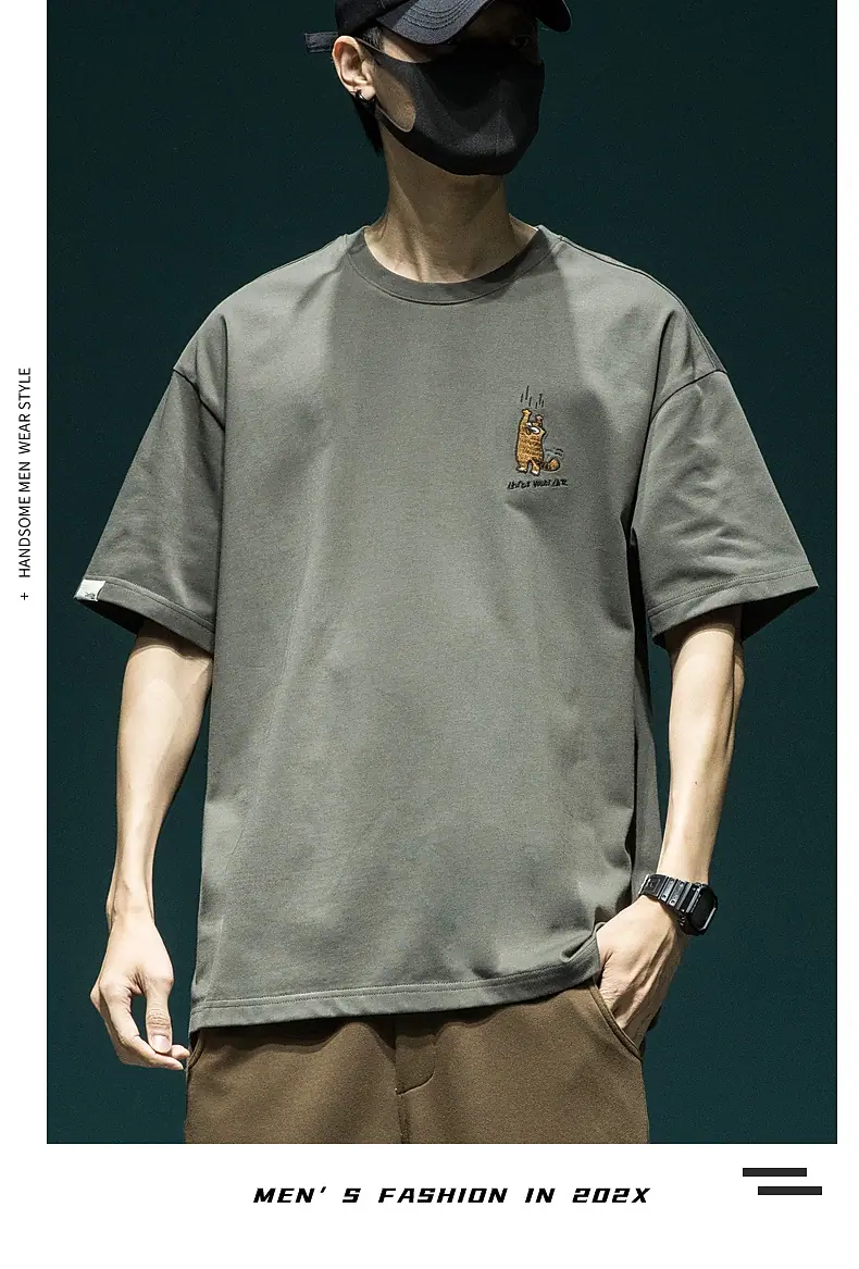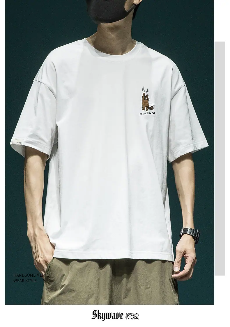 Camiseta de cuello redondo sencilla de estilo japonés para hombre, novedad de verano 2024, con estampado bordado divertido, holgada, de manga corta y talla grande