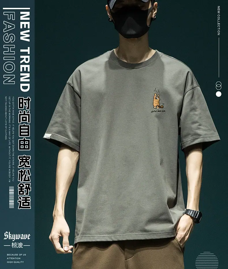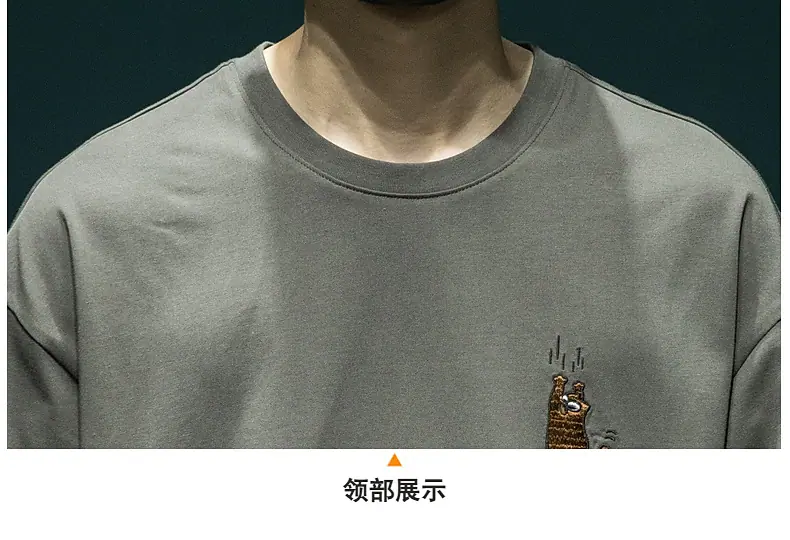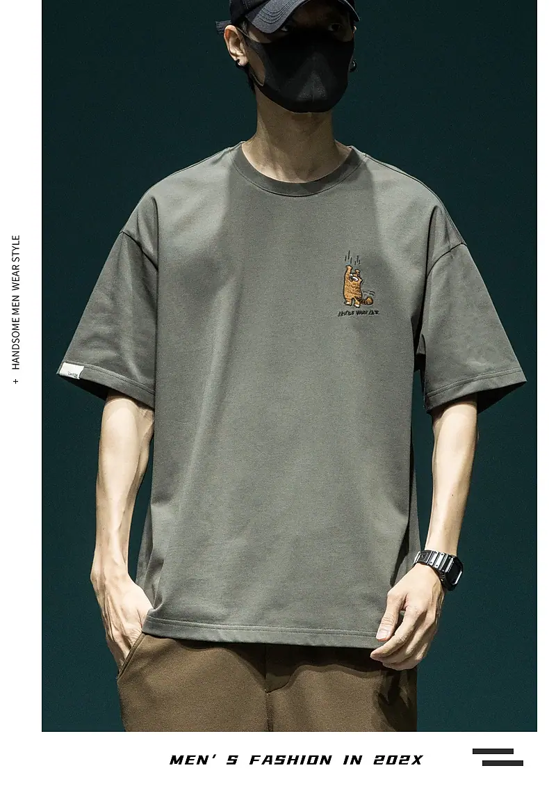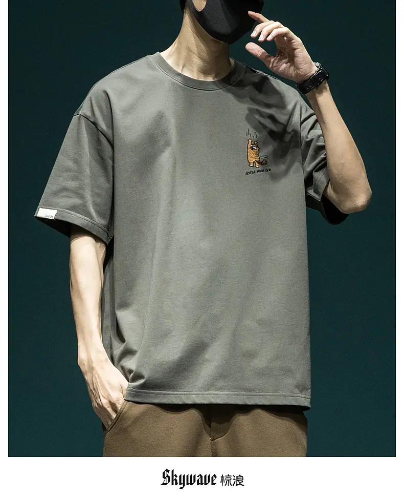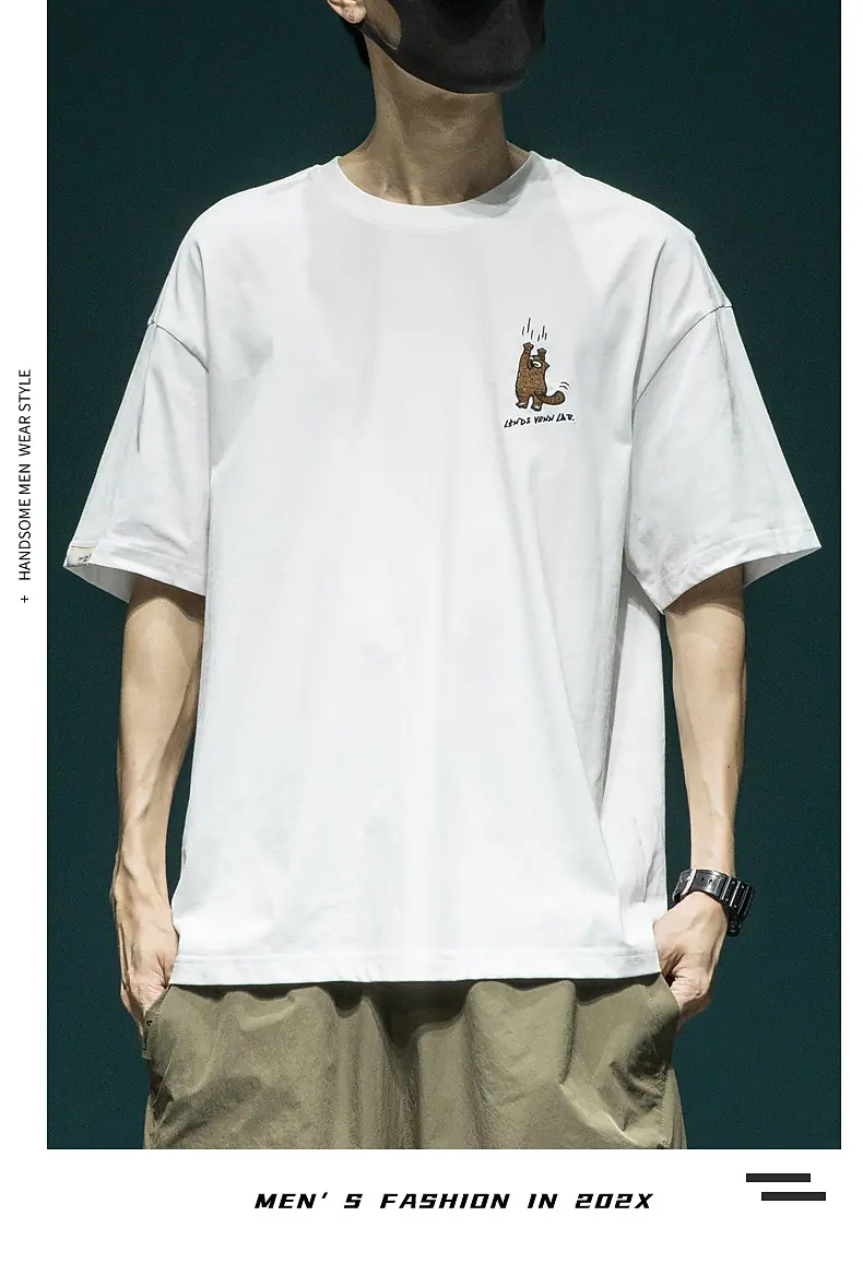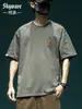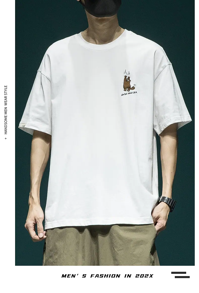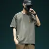Camiseta de cuello redondo sencilla de estilo japonés para hombre, novedad de verano 2024, con estampado bordado divertido, holgada, de manga corta y talla grande