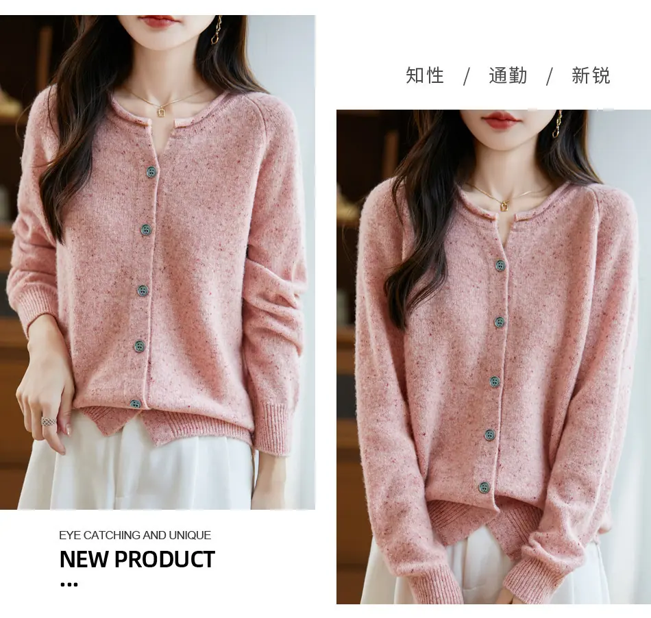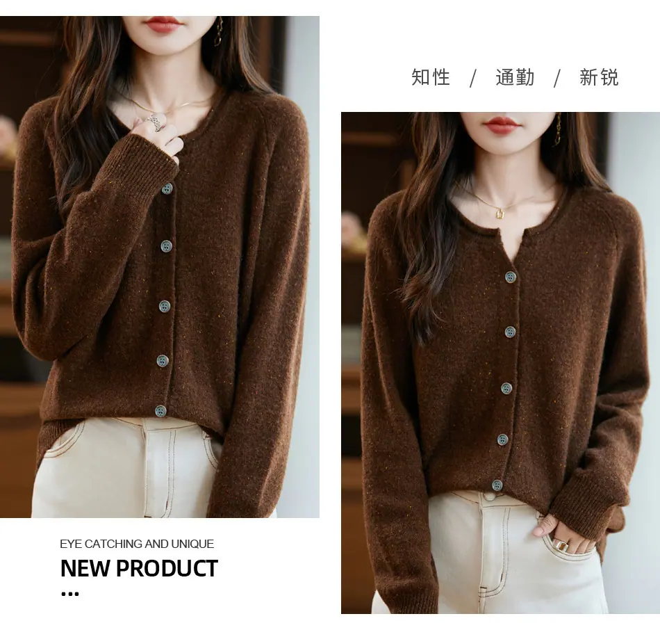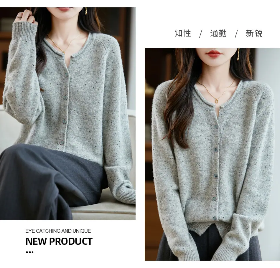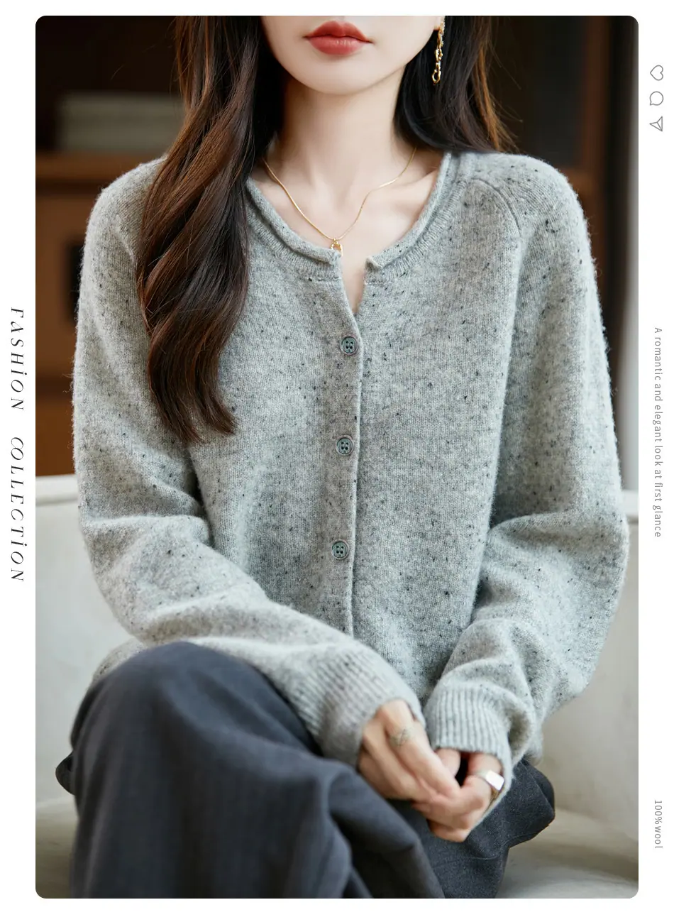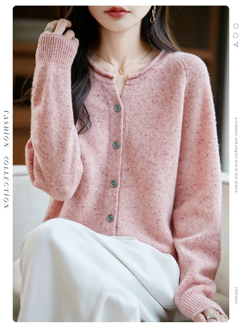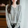 Cárdigan de punto nuevo de otoño/invierno 2025 transfronterizo 100% lana pura para mujer, suéter holgado de talla grande para damas, ropa exterior para mujer