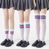 Calcetines de Terciopelo hasta la Pantorrilla Primavera y Verano Delgados Estilo Preppy Media Caña Sobre la Rodilla Jk Estilo Japonés Calcetines de Rayas de Tres Barras