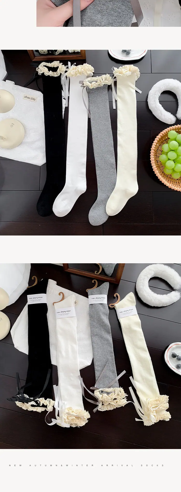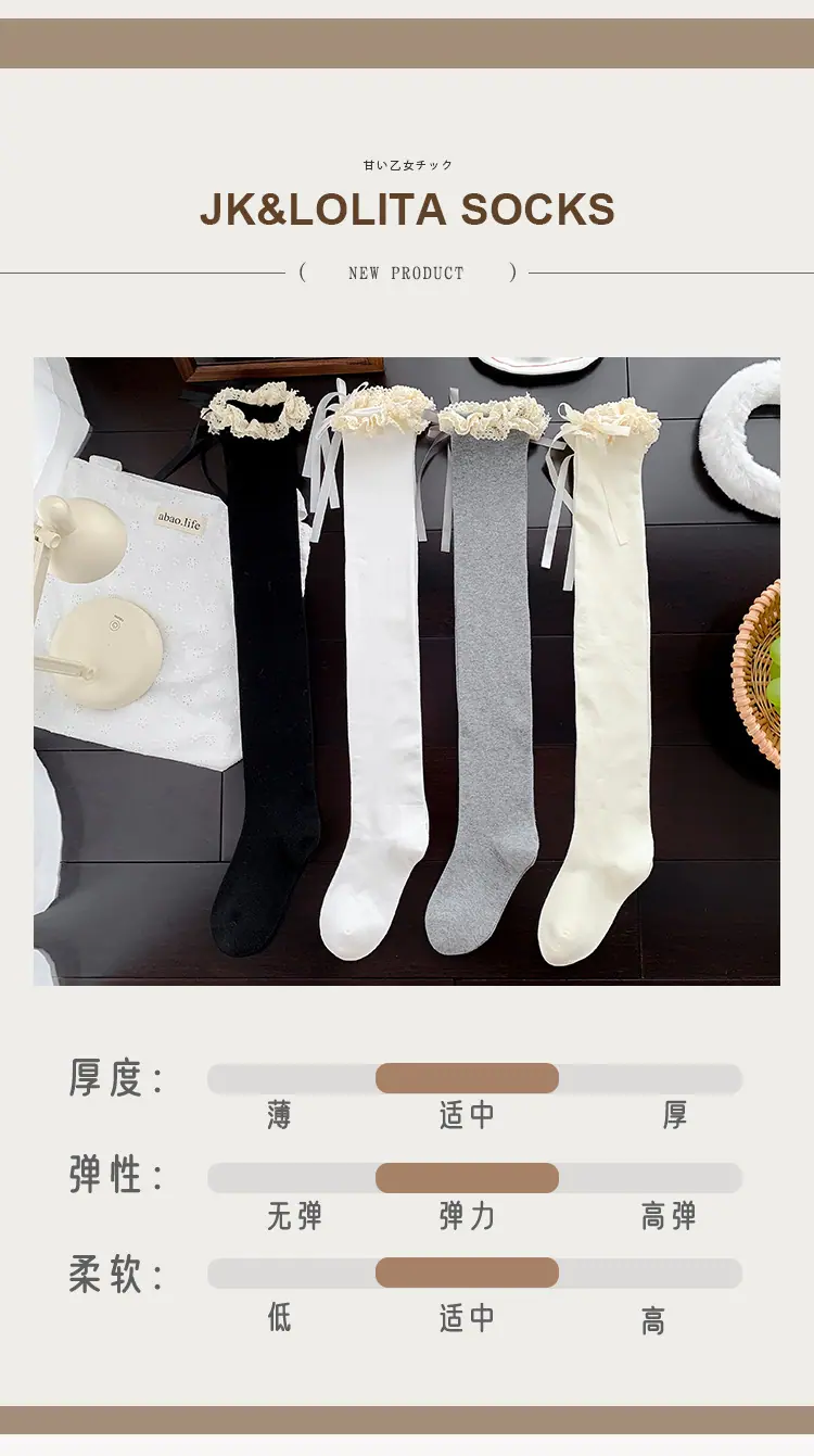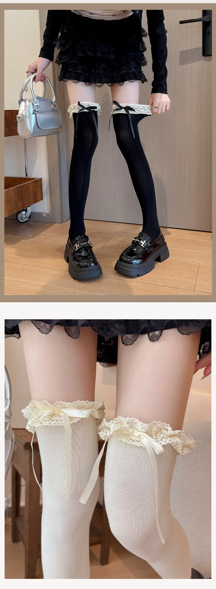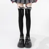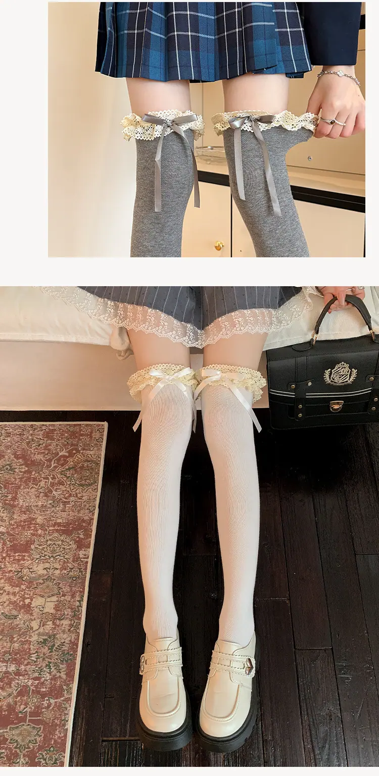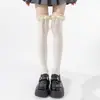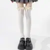 Calcetines hasta el muslo para mujer lolita encaje lazo deseo puro niña cinta blanco leche estilo ballet calcetines altos hasta el muslo