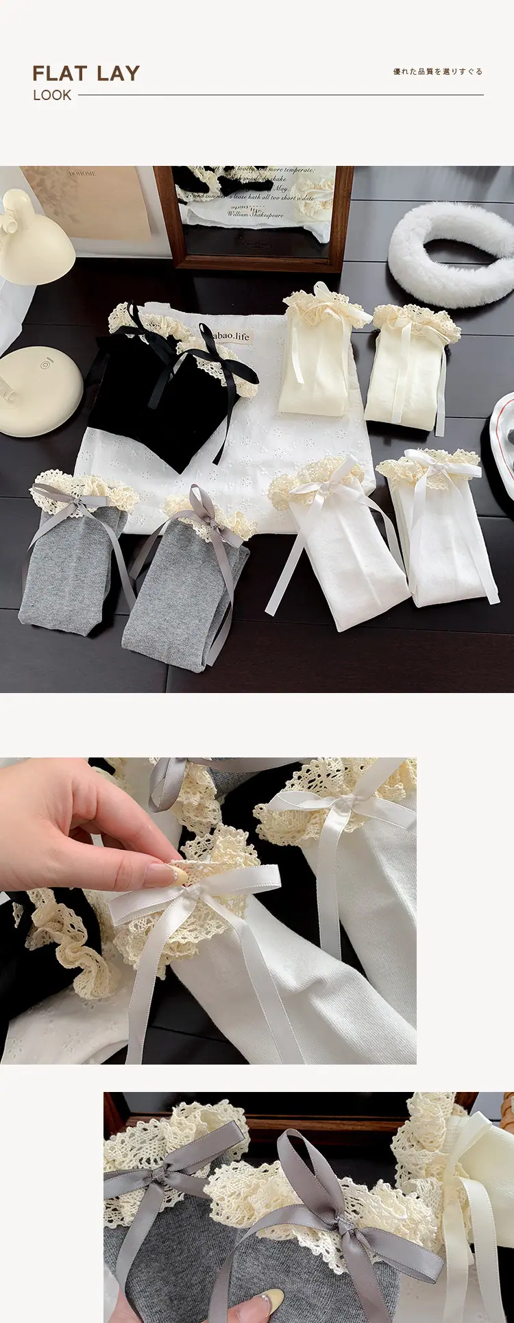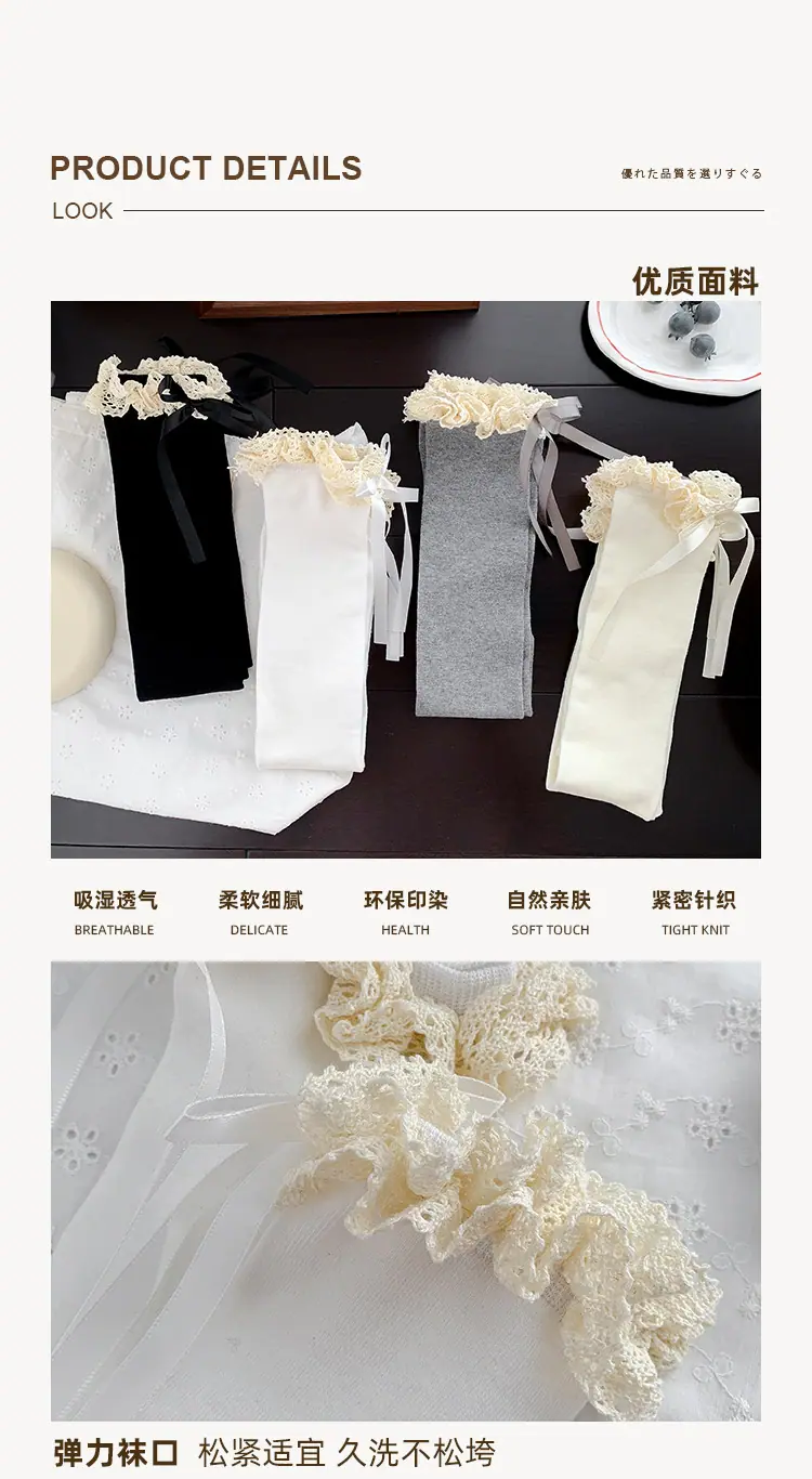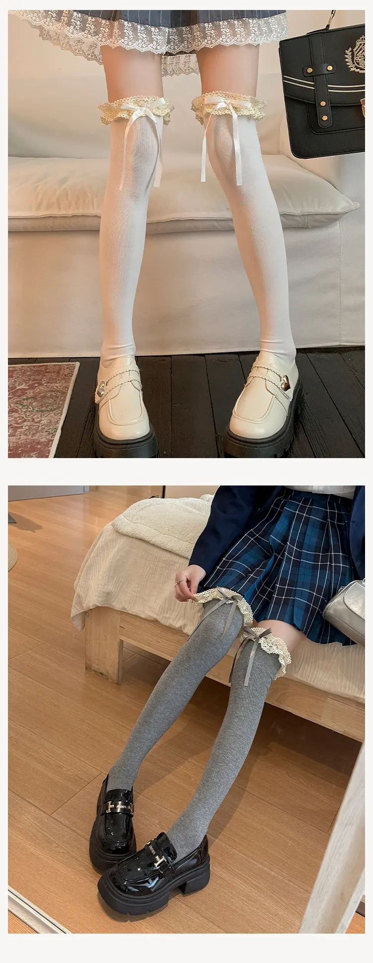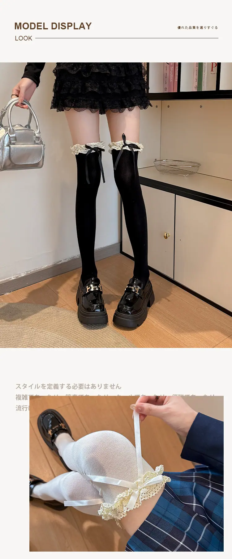 Calcetines hasta el muslo para mujer lolita encaje lazo deseo puro niña cinta blanco leche estilo ballet calcetines altos hasta el muslo