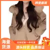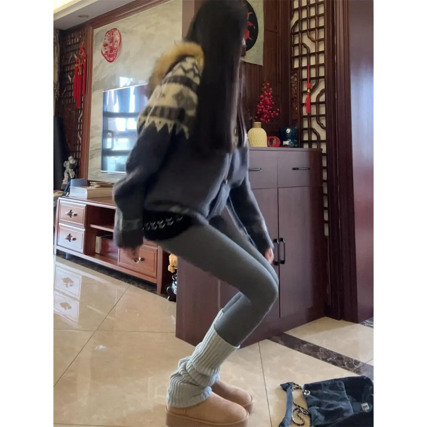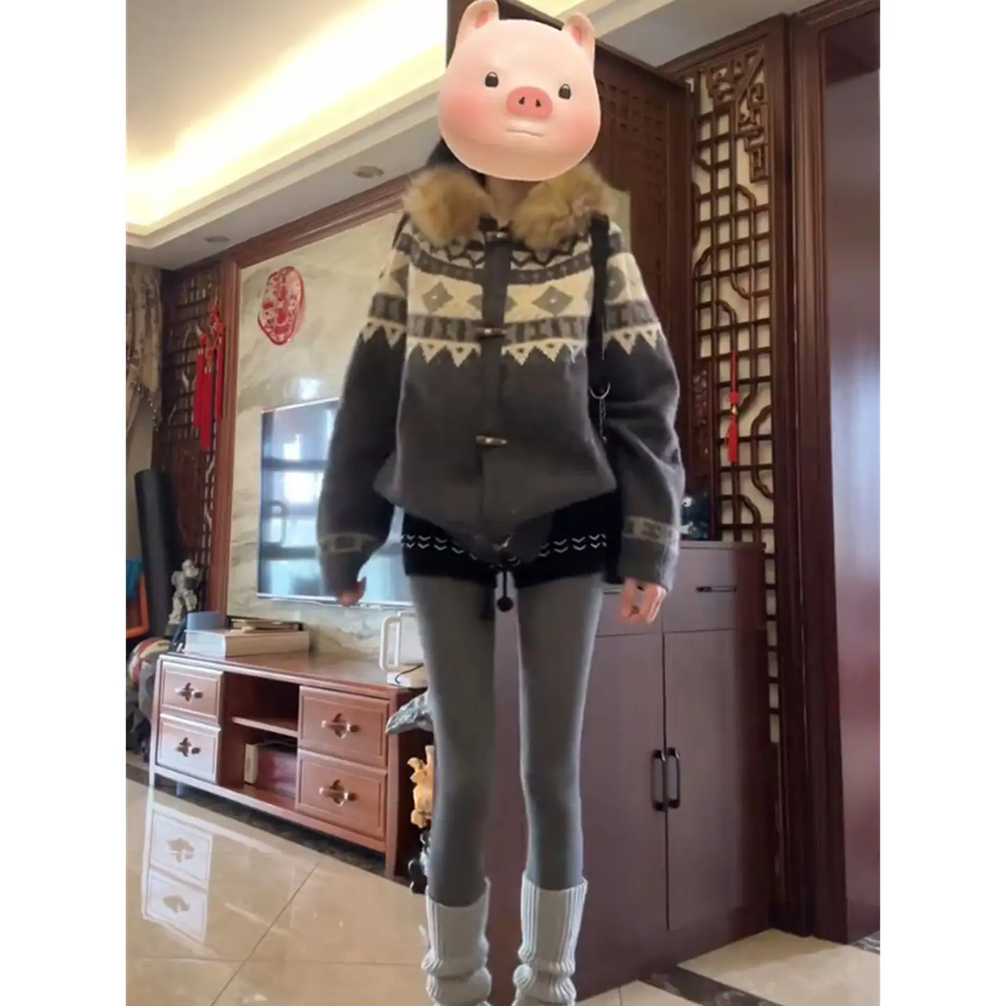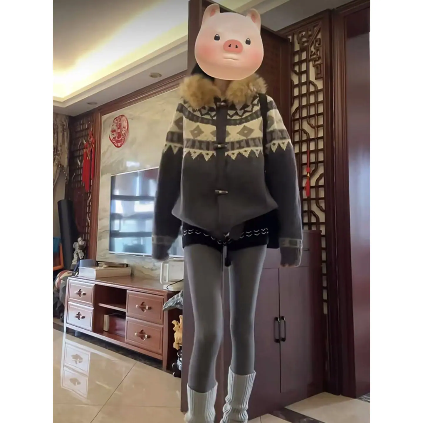 American High Street Erdos Cárdigan de Punto de Manga Larga con Capucha y Cuello de Piel para Mujer Primavera Otoño Relajado Versátil Ropa Casual Tendencia