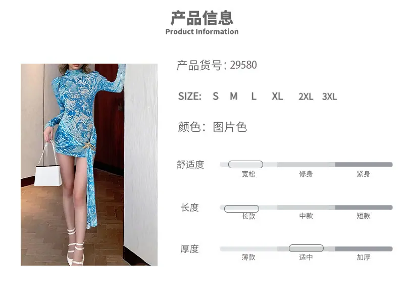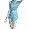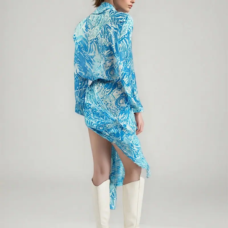 2025 Verano Nuevo Transfronterizo Amazon Moda Europea y Americana Estampado Elegante Estilo Adelgazante Sexy Vestido Manga Larga
