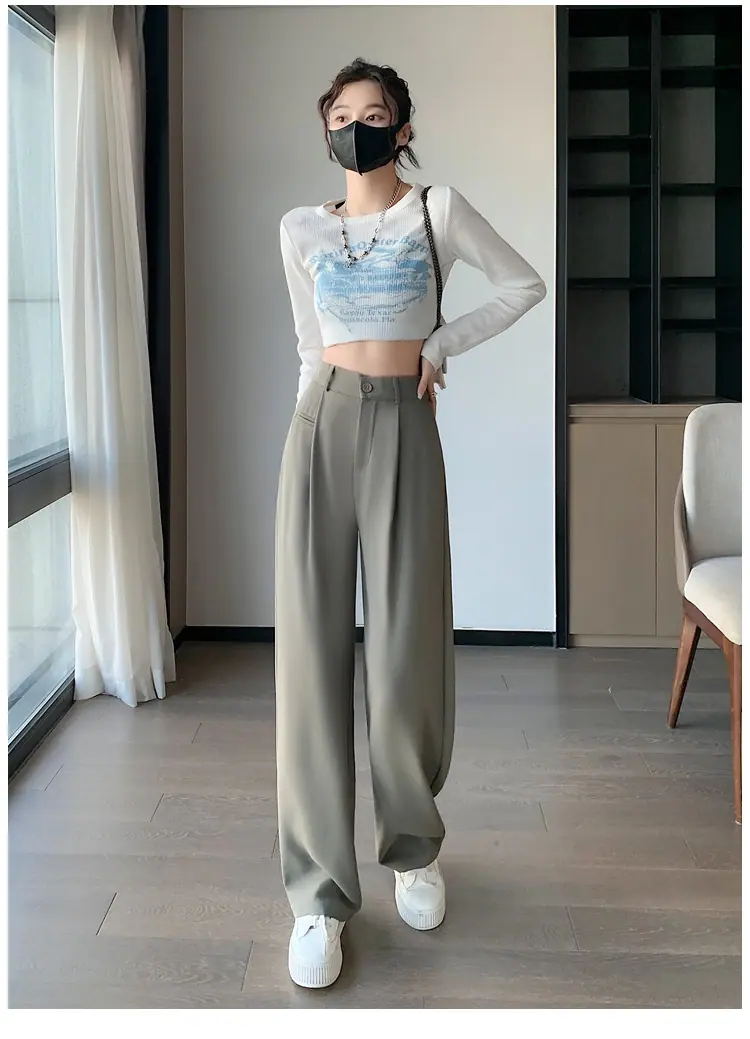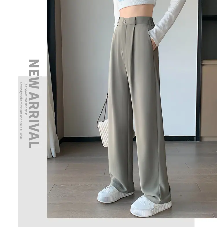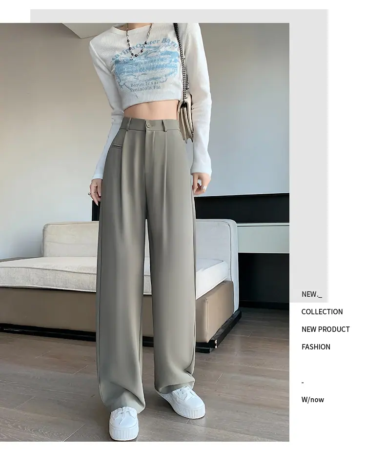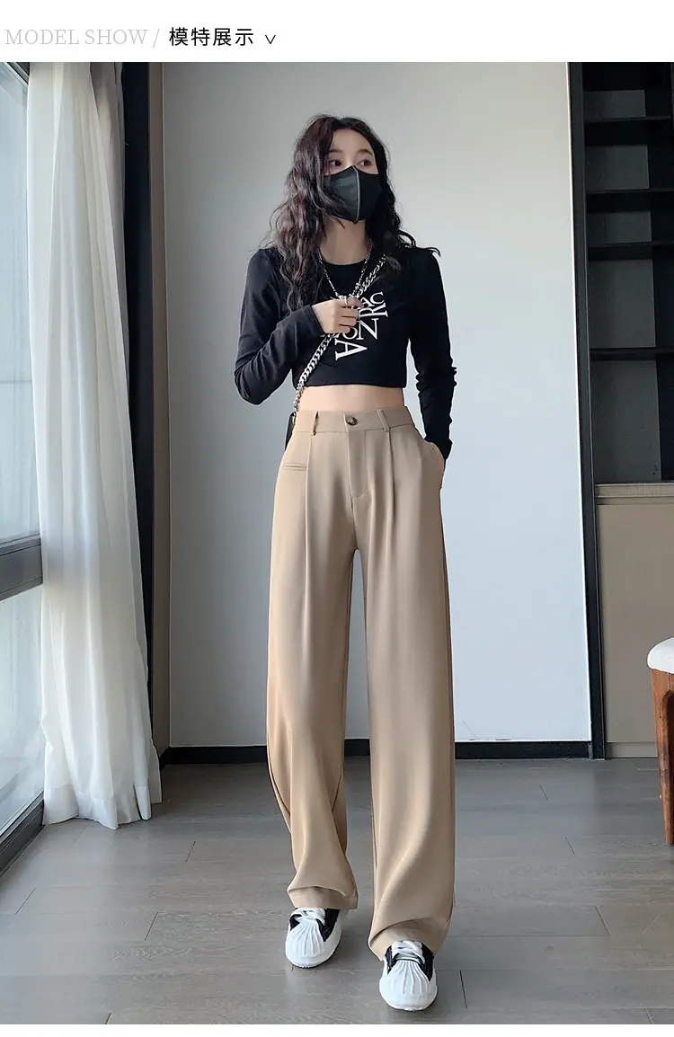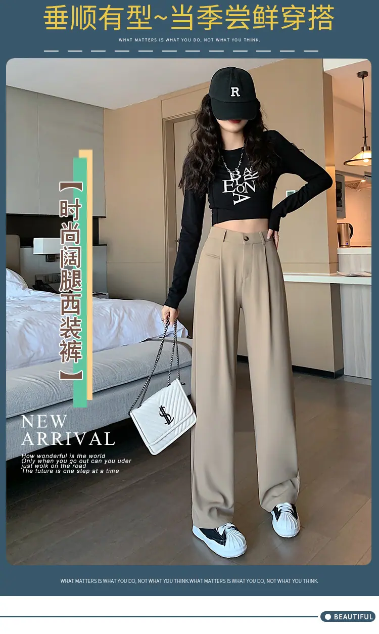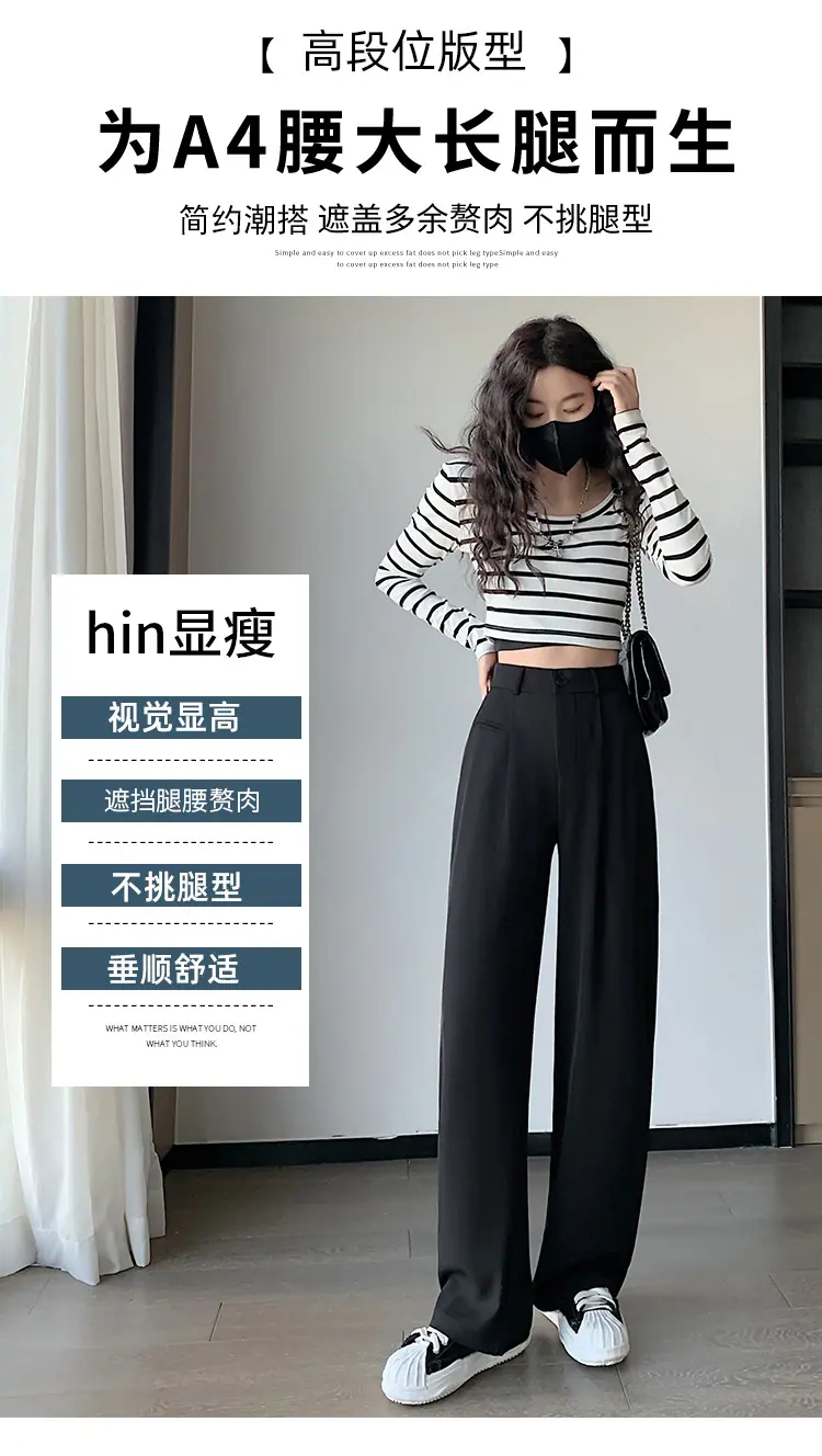 Pantalones de Pierna Ancha Dape de Cintura Alta para Mujer Primavera y Verano 2024 Nuevos Pantalones Sueltos Adelgazantes de Largo Estrecho