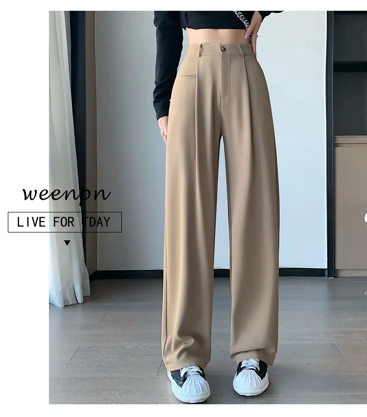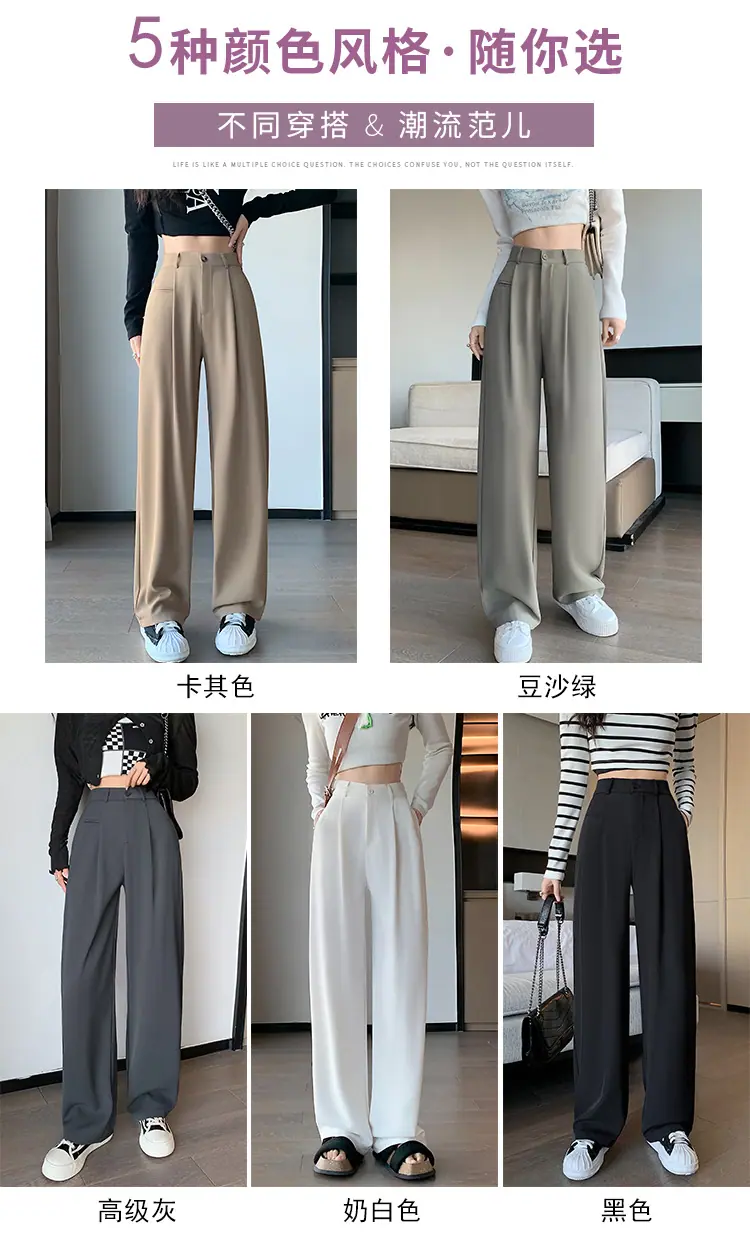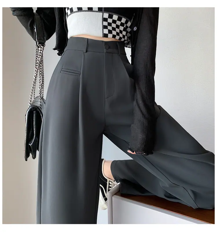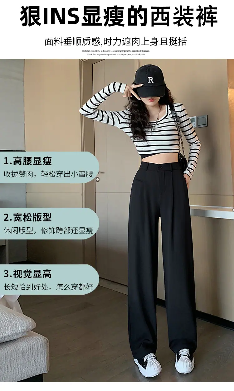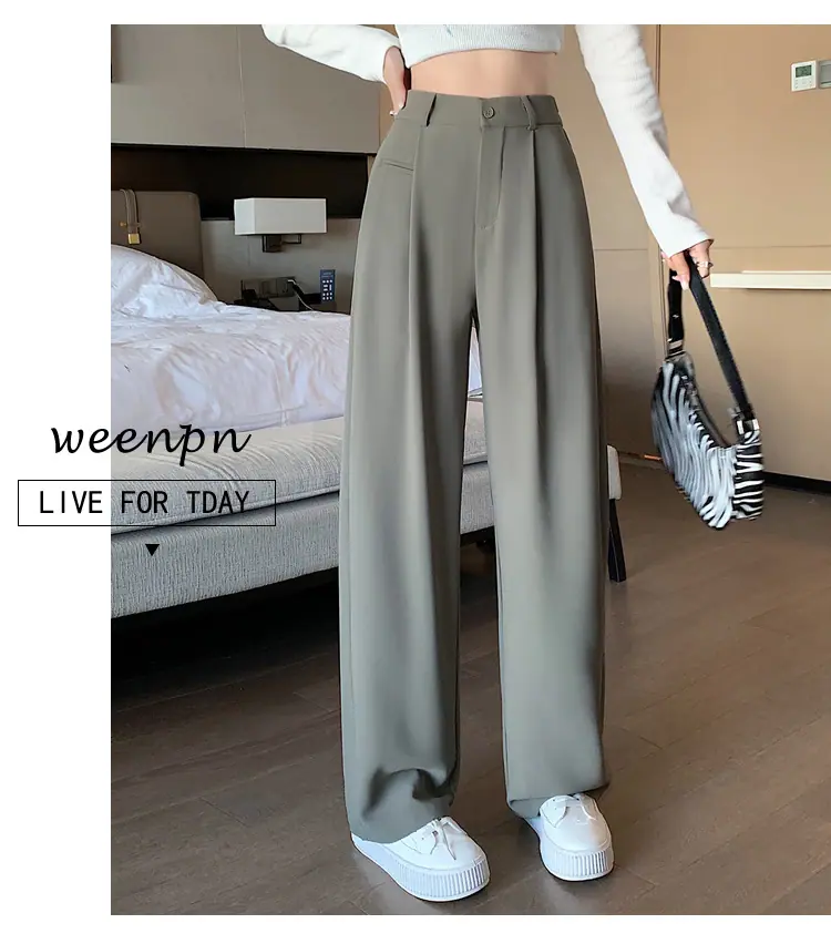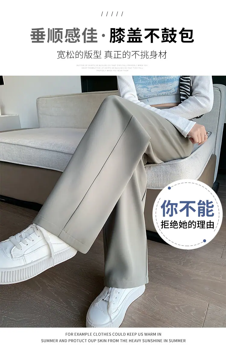 Pantalones de Pierna Ancha Dape de Cintura Alta para Mujer Primavera y Verano 2024 Nuevos Pantalones Sueltos Adelgazantes de Largo Estrecho