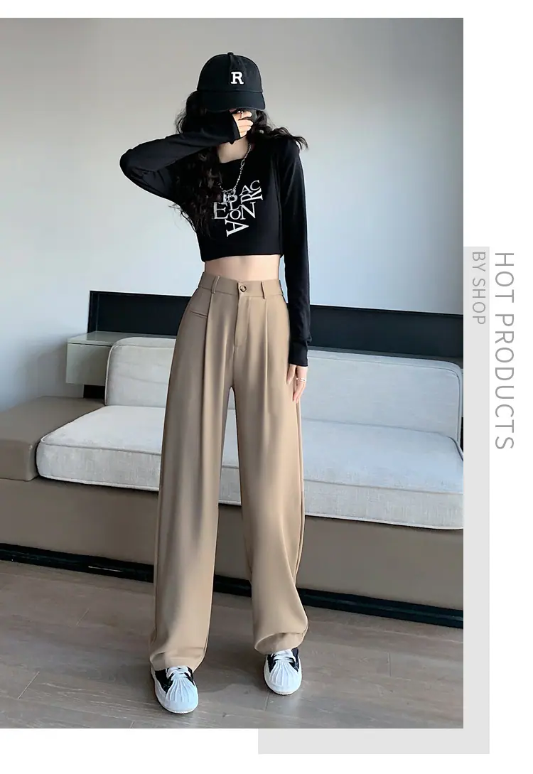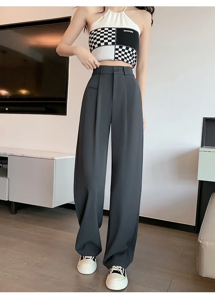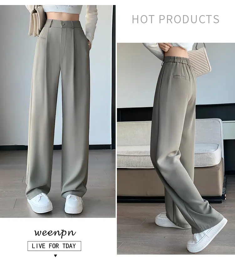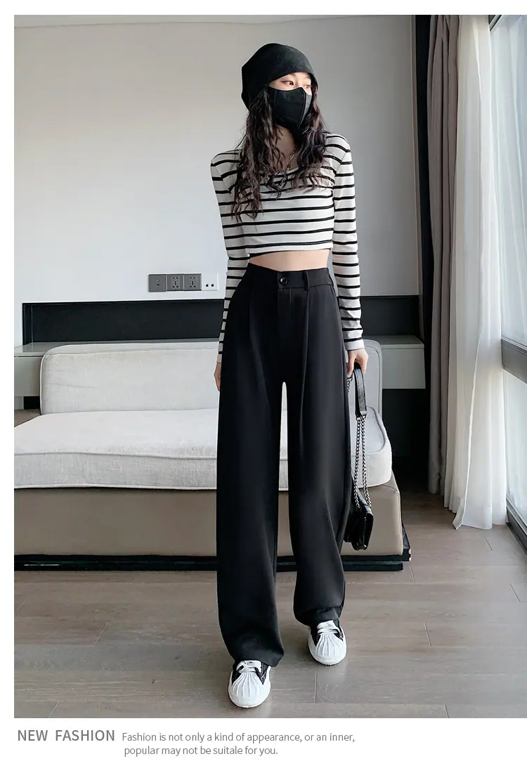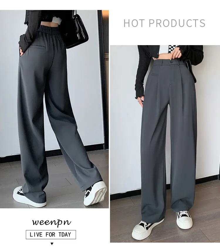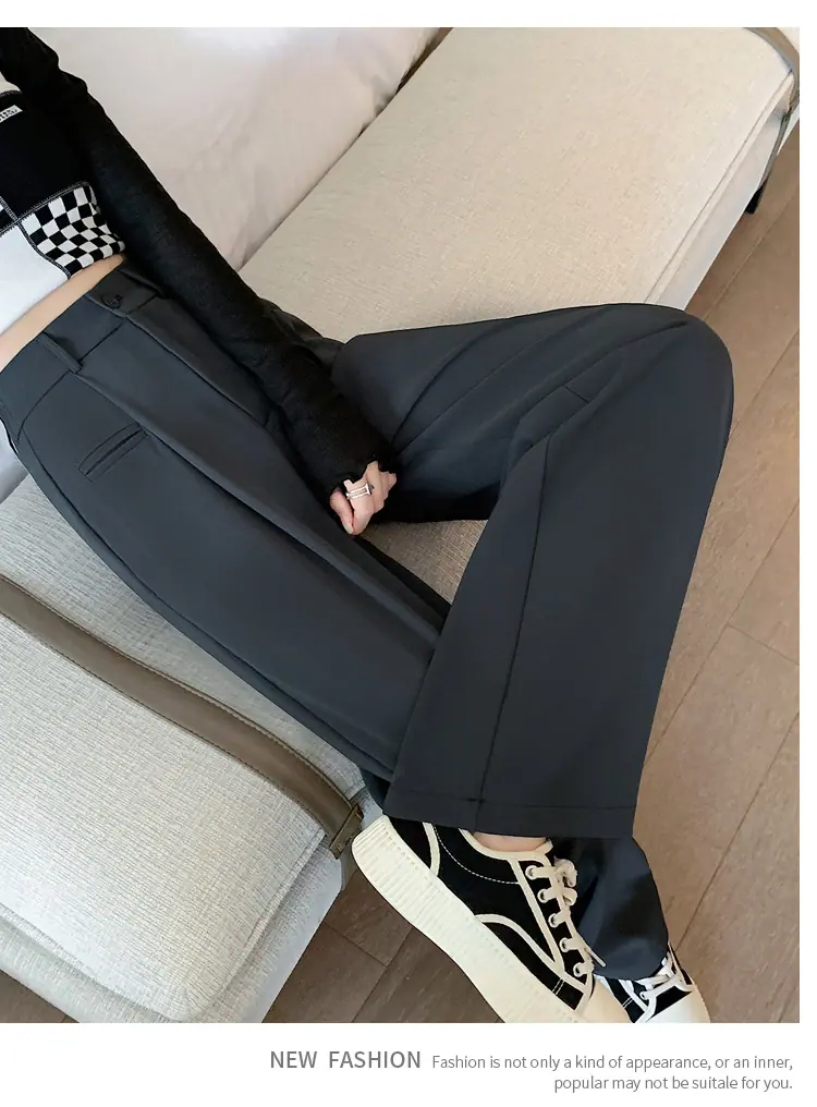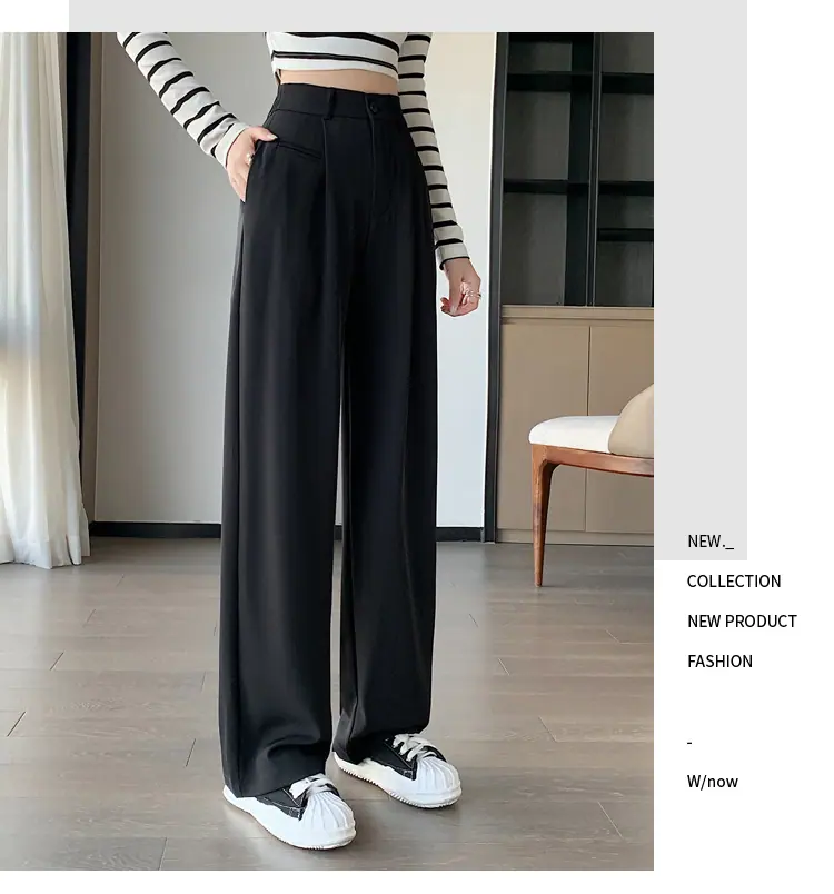 Pantalones de Pierna Ancha Dape de Cintura Alta para Mujer Primavera y Verano 2024 Nuevos Pantalones Sueltos Adelgazantes de Largo Estrecho