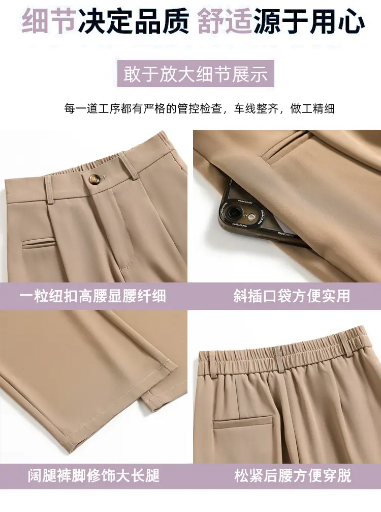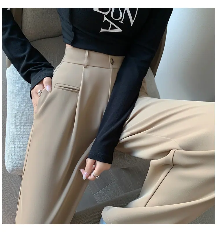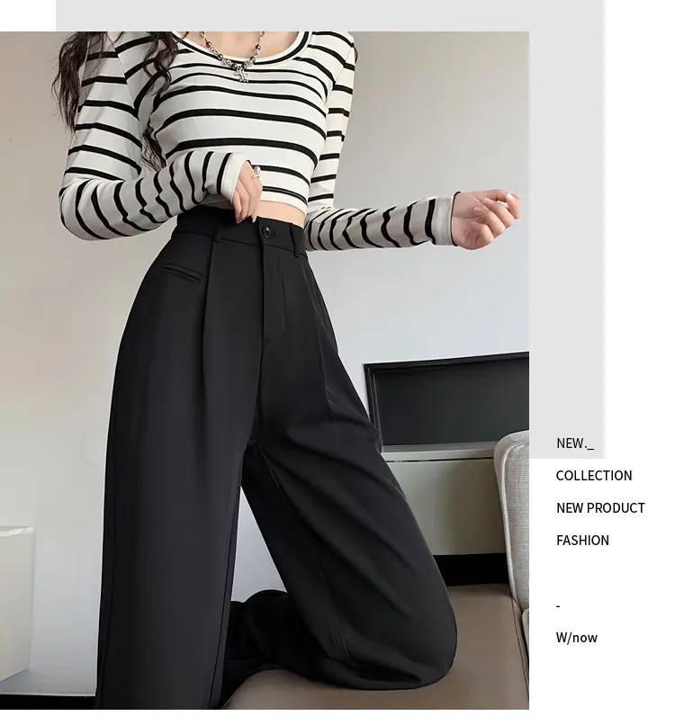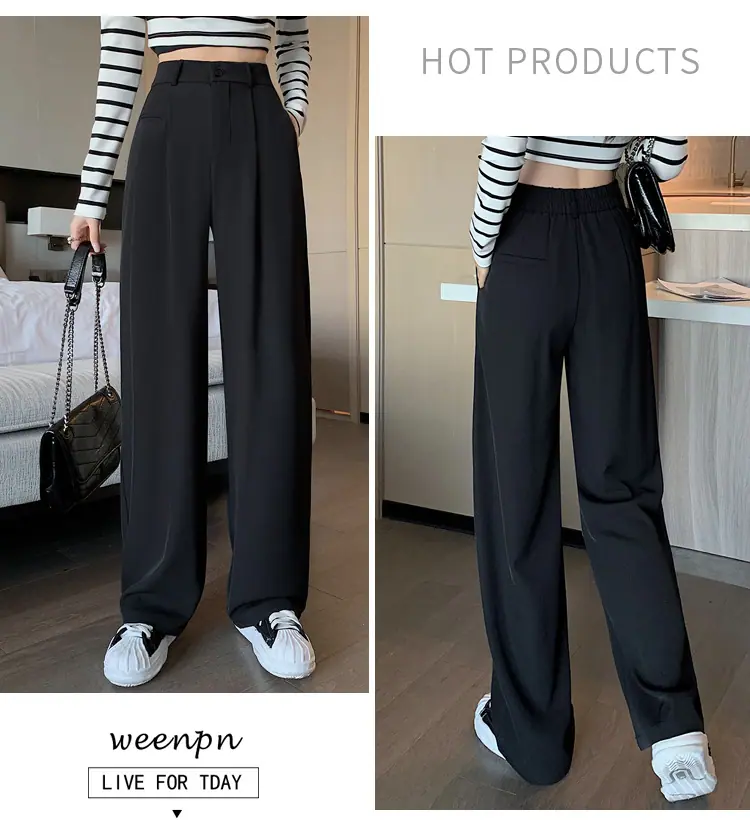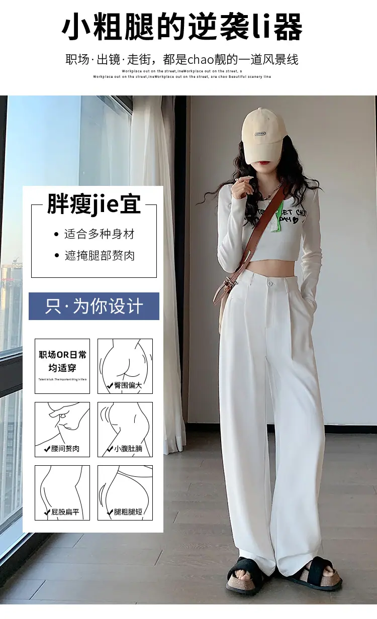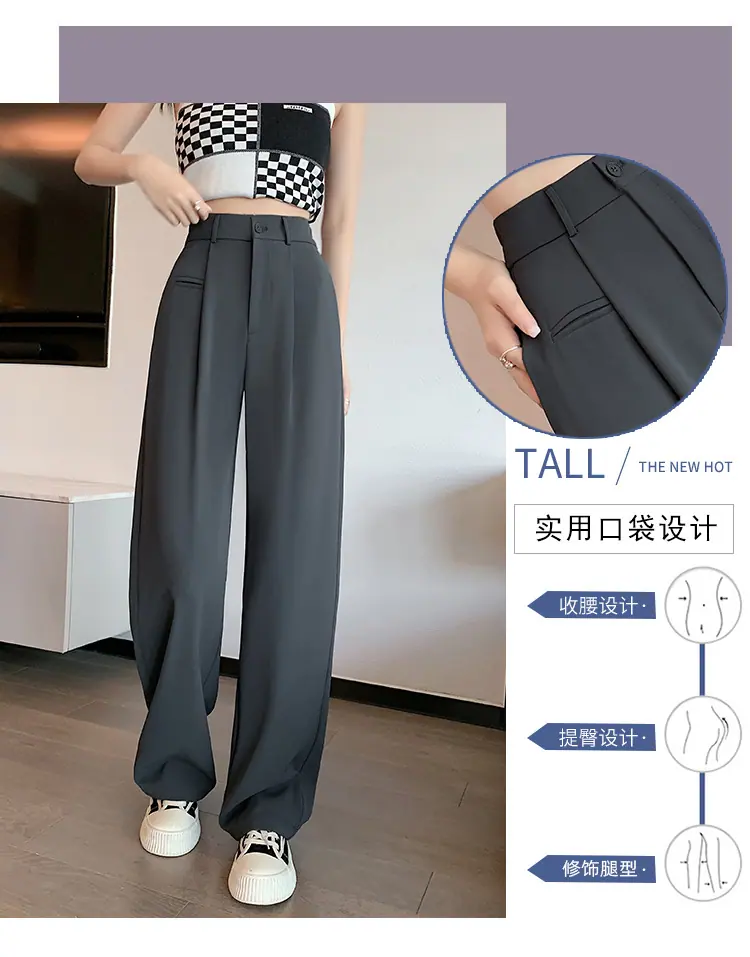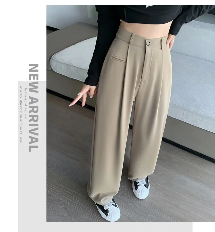 Pantalones de Pierna Ancha Dape de Cintura Alta para Mujer Primavera y Verano 2024 Nuevos Pantalones Sueltos Adelgazantes de Largo Estrecho