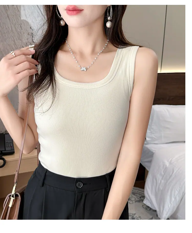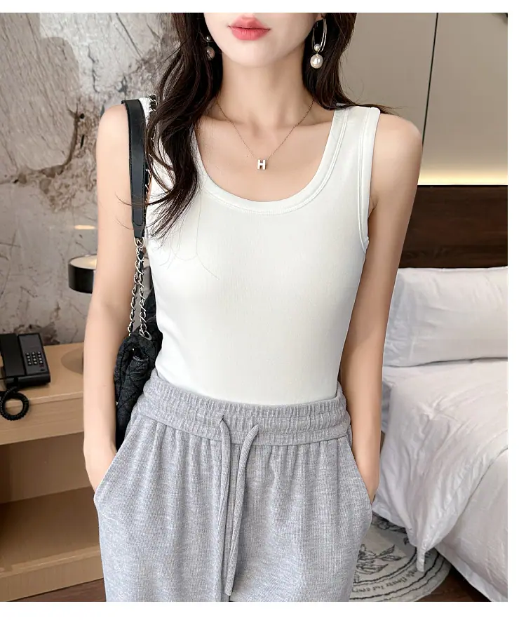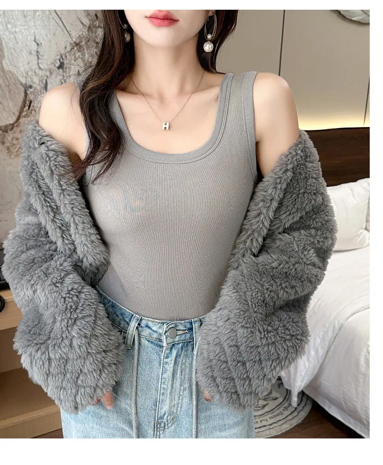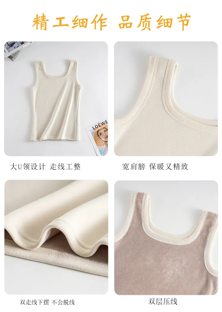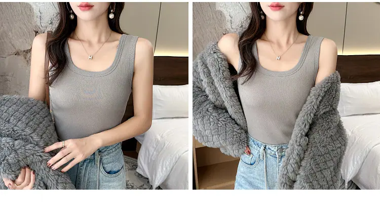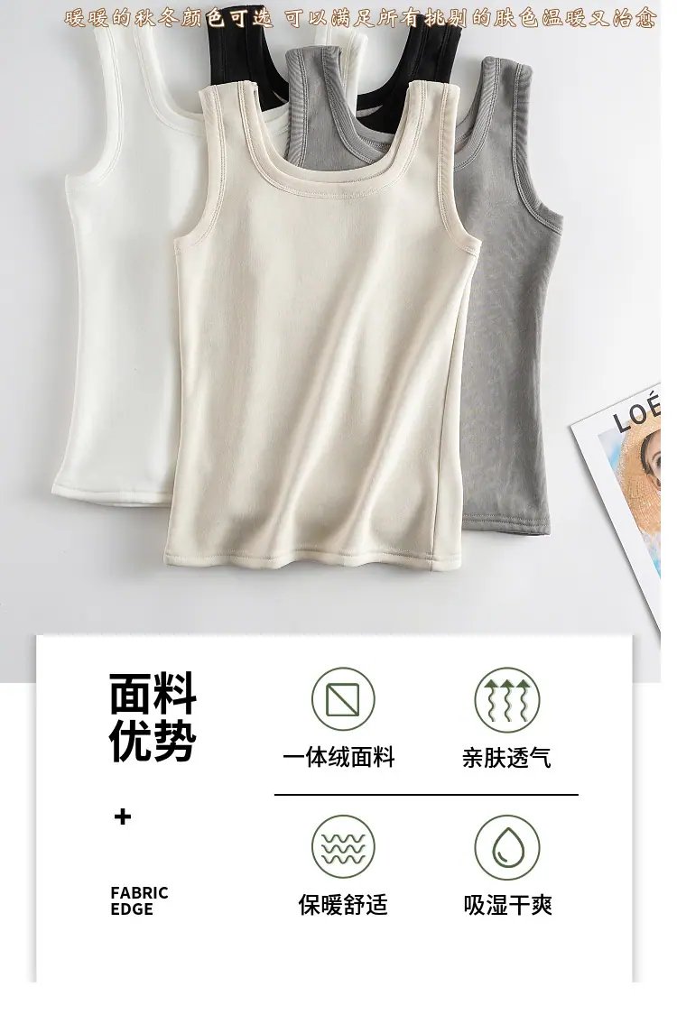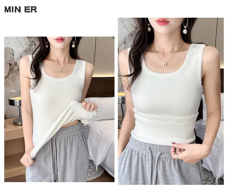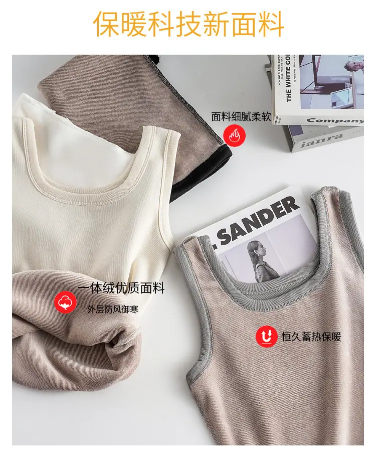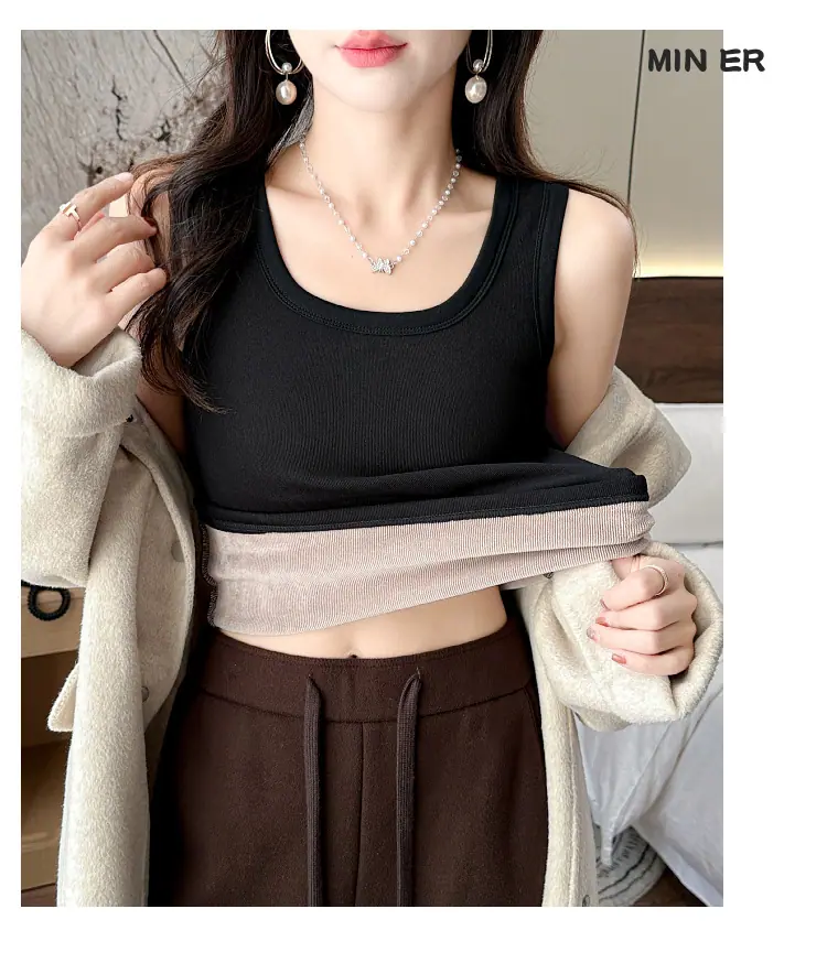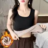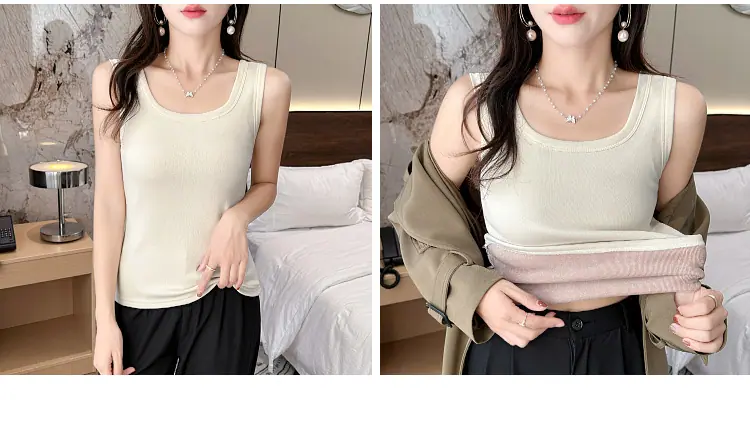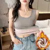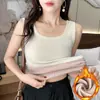 Chaleco cálido con forro polar para mujer, capa base gruesa para otoño e invierno, chaleco de cuello en U, prenda interior, top ajustado, capa base, prenda exterior