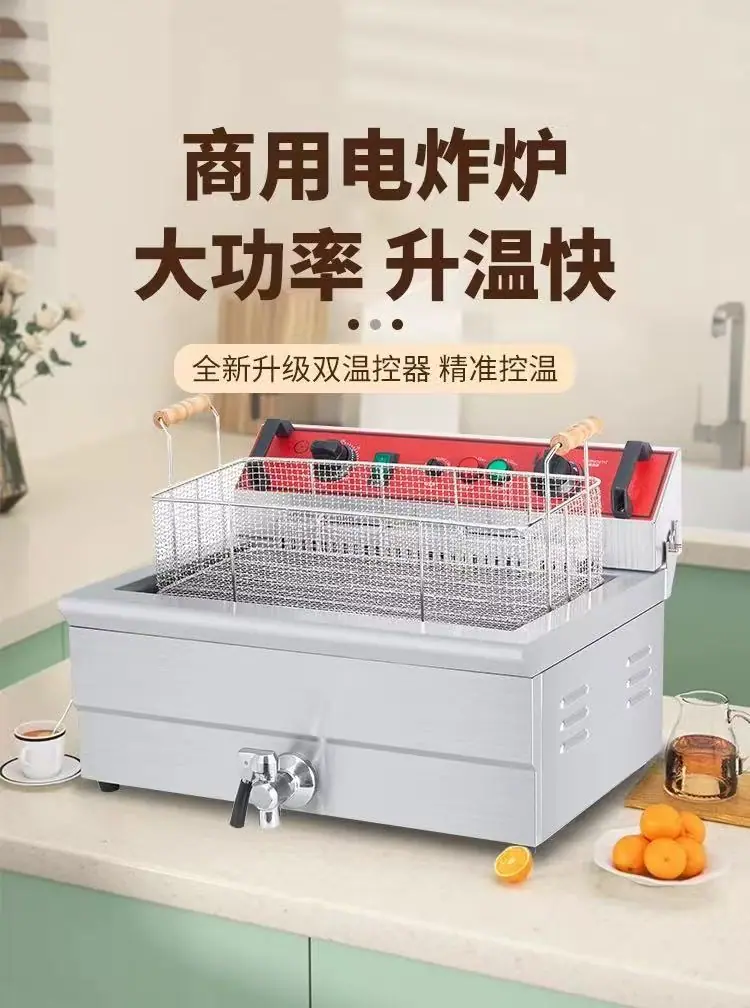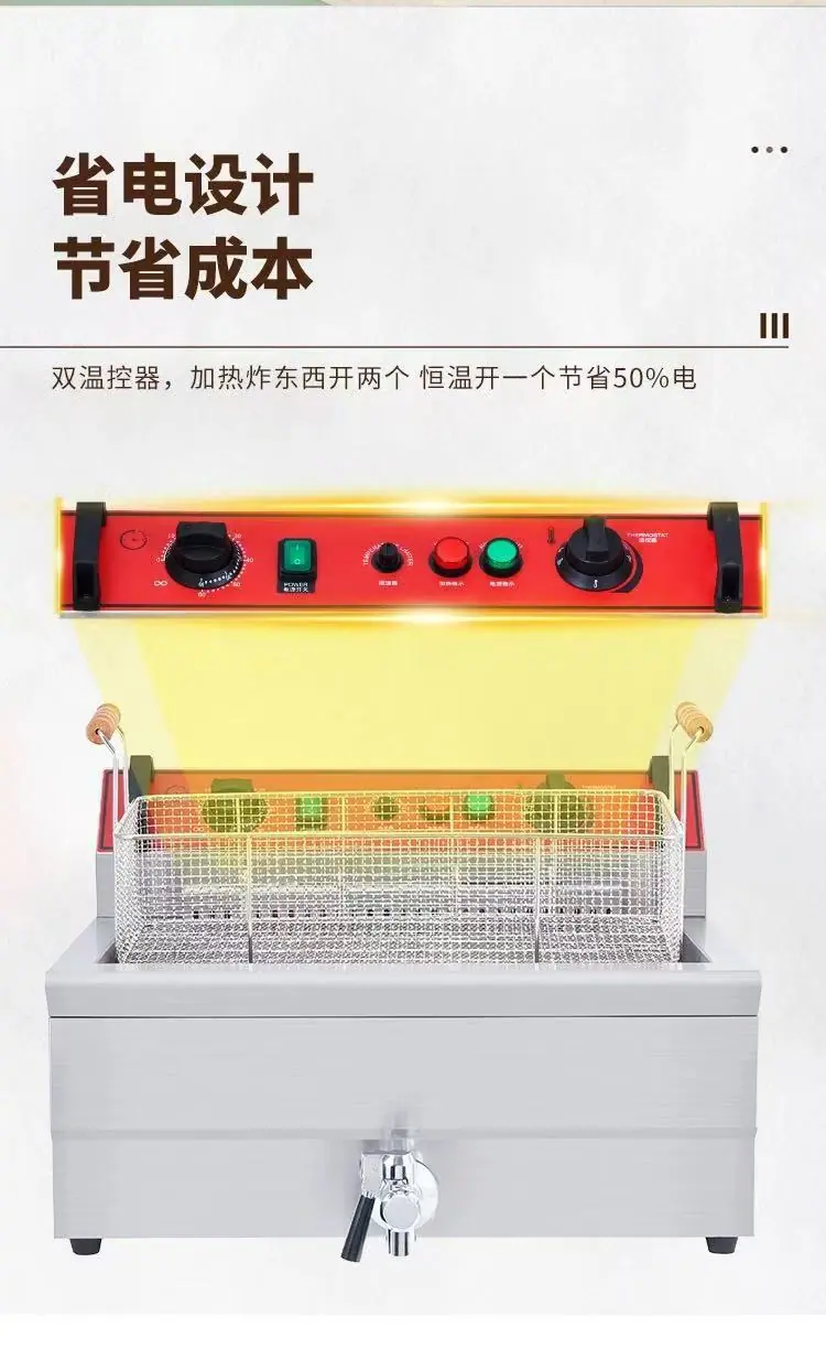 Freidora Comercial Freidora Eléctrica Temporizador Espesada Cilindro Simple y Doble Máquina Freidora Equipo Papas Fritas Pollo Frito Freidora Eléctrica