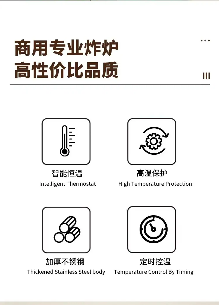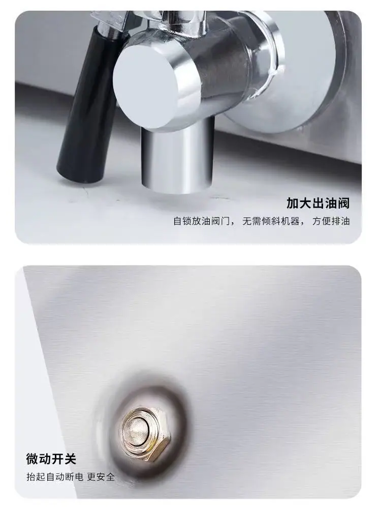 30l fryer (can be equipped with double frying baskets), 15l flip fryer, 17l flip fryer, 20l flip fryer, 20l di...