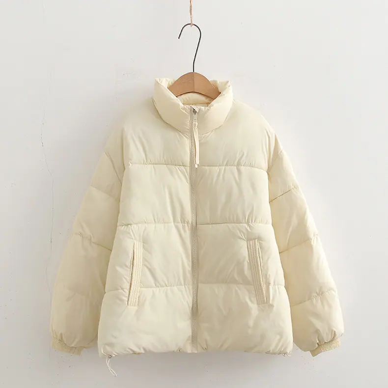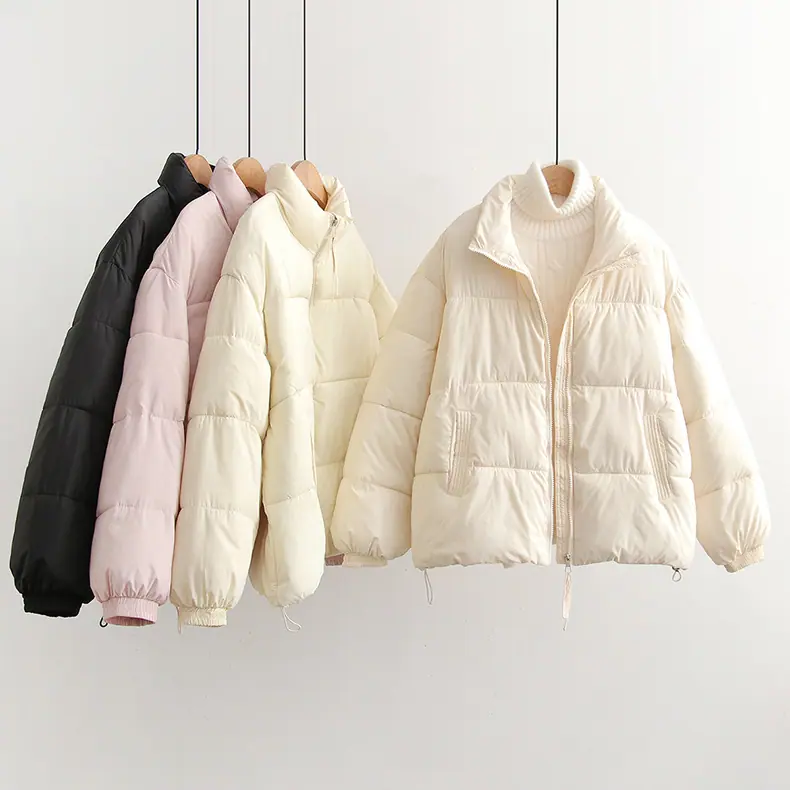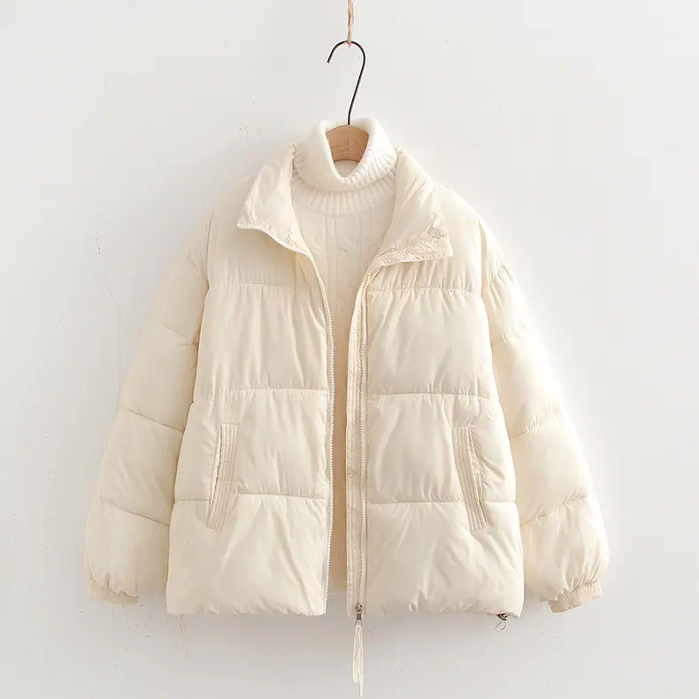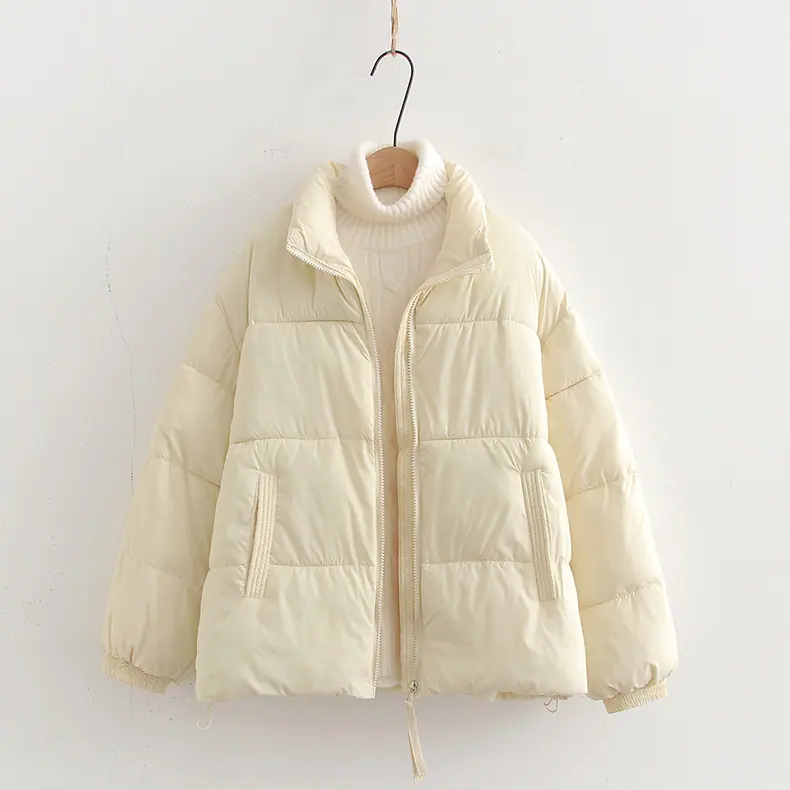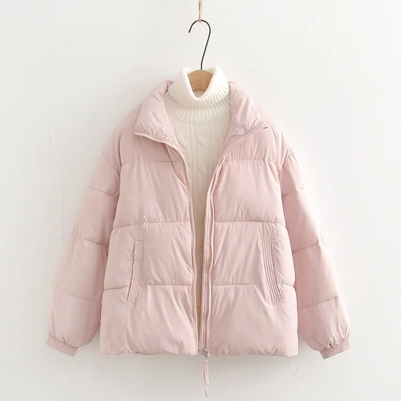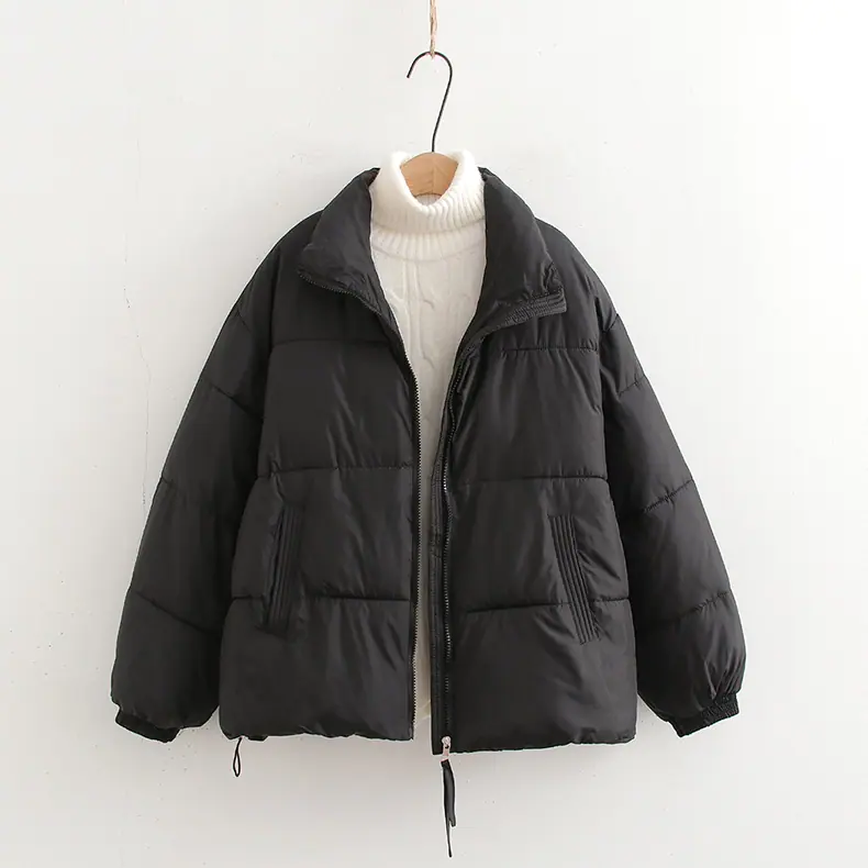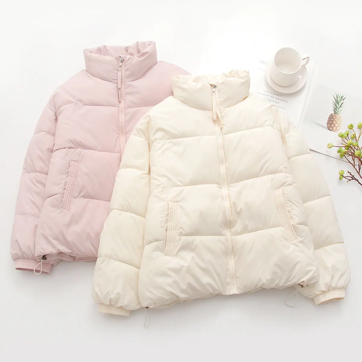 Abrigo corto acolchado de algodón estilo coreano para mujer, ropa de invierno, nuevo estilo, color sólido, holgado, combina con todo, cuello, ropa acolchada de algodón gruesa, moda femenina
