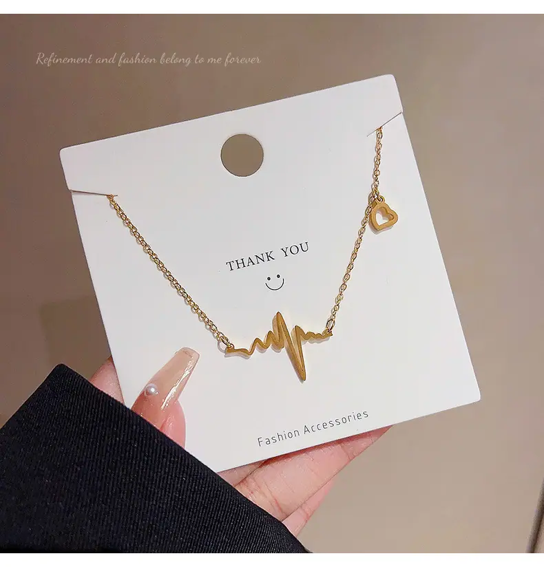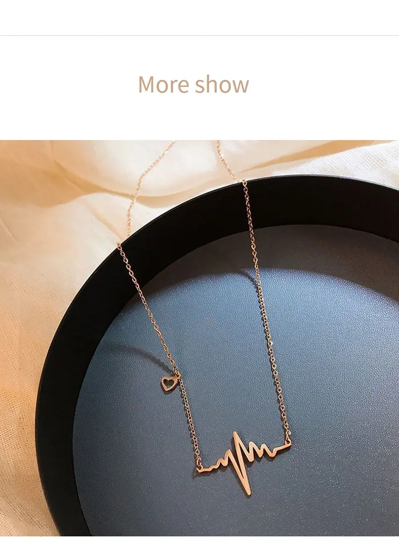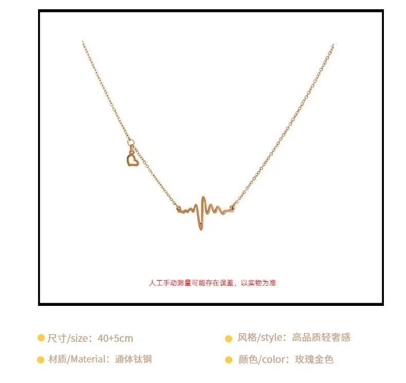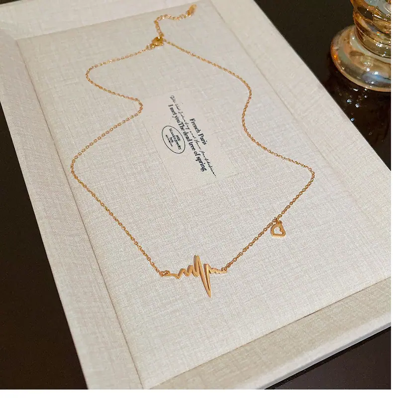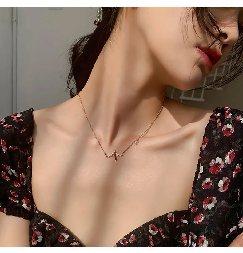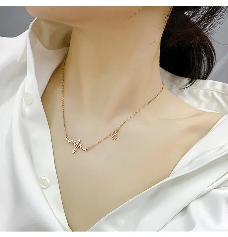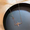 Collar de Corazón Electrocardiograma de Acero de Titanio de Cuerpo Completo para Mujer, Moda que No se Desvanece, Lujo Ligero Versátil, Cadena para Clavícula, Joyería Chapada al Vacío