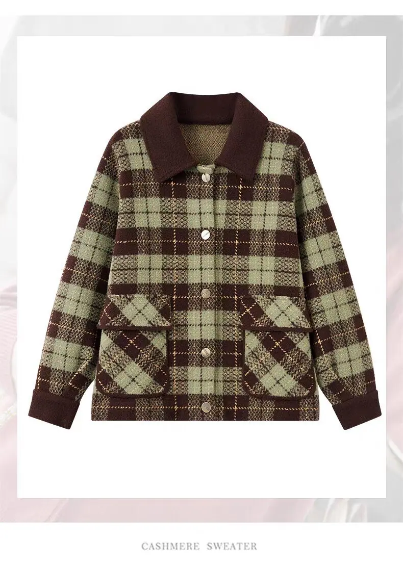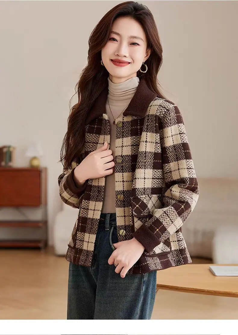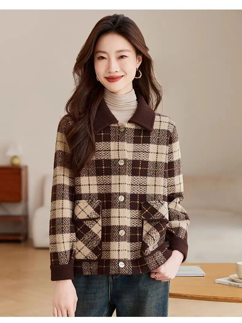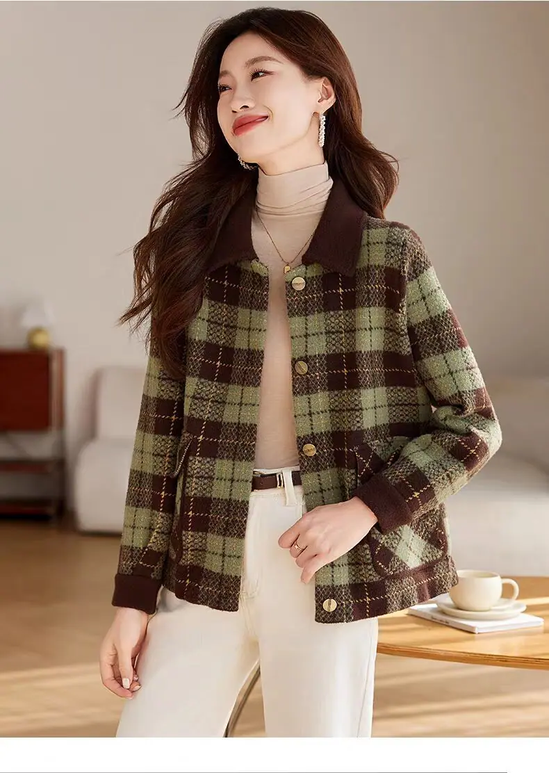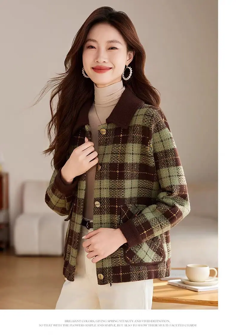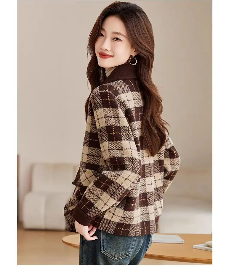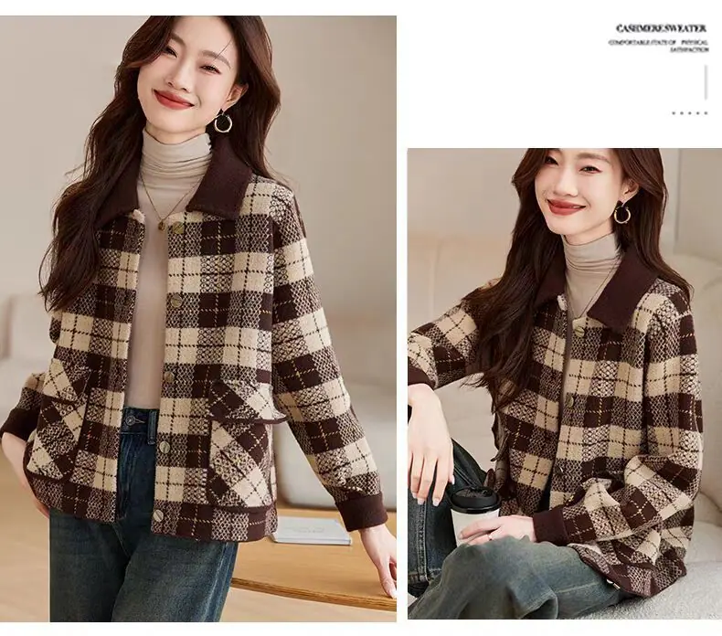 Abrigo cárdigan de punto tweed a cuadros estilo Chanel para mujer otoño invierno 2025 nuevo versátil cuello cuadrado corto cálido top marea